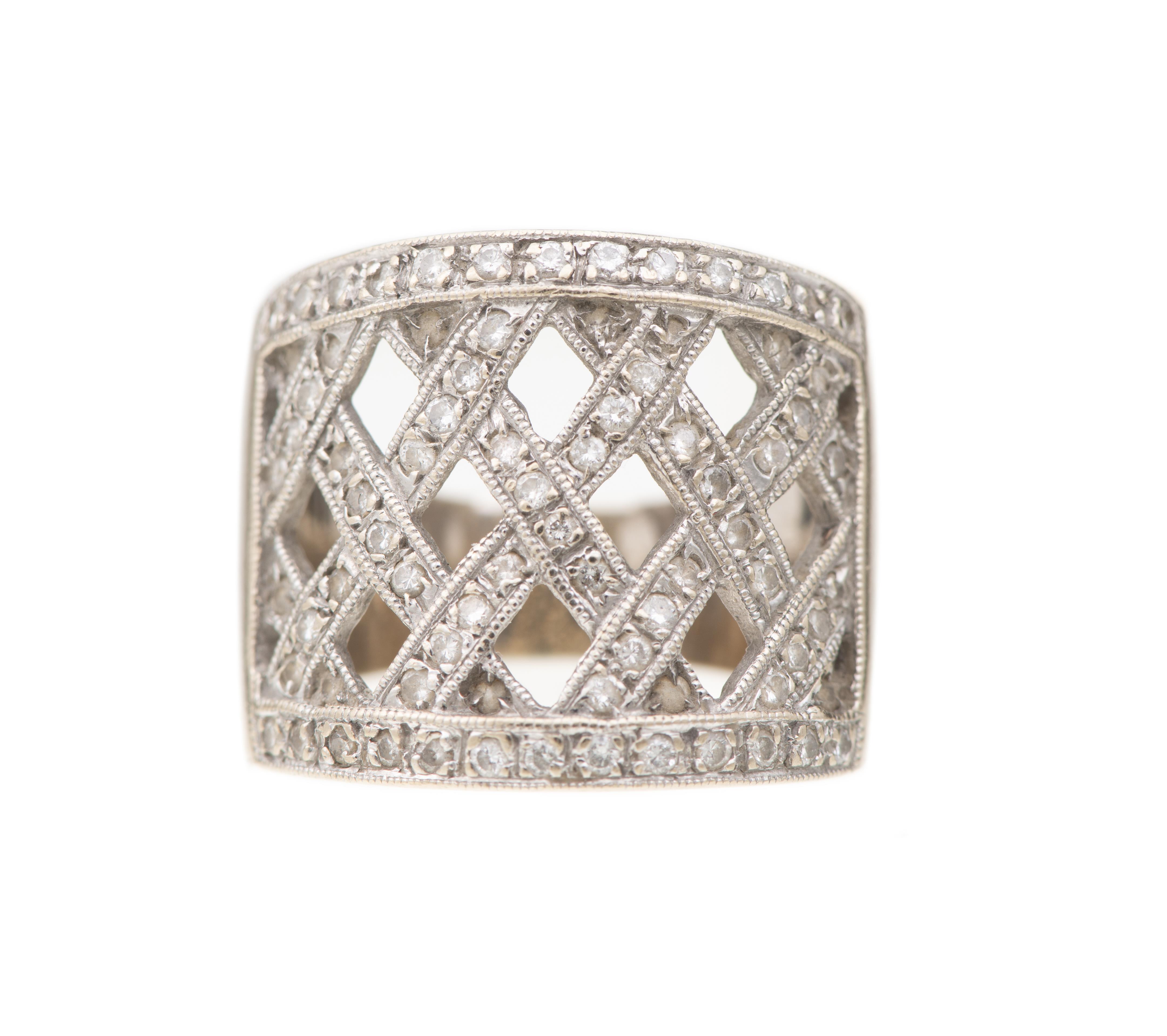 Bague en or gris .750 avec un pavage de 58 diamants de taille brillant en tressage ajouré pour 0.58 ct.