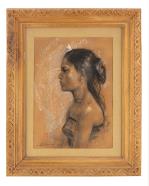 Fong Huang (1936-2004), "Portrait de profil". Pastel et crayon sur papier sbg.