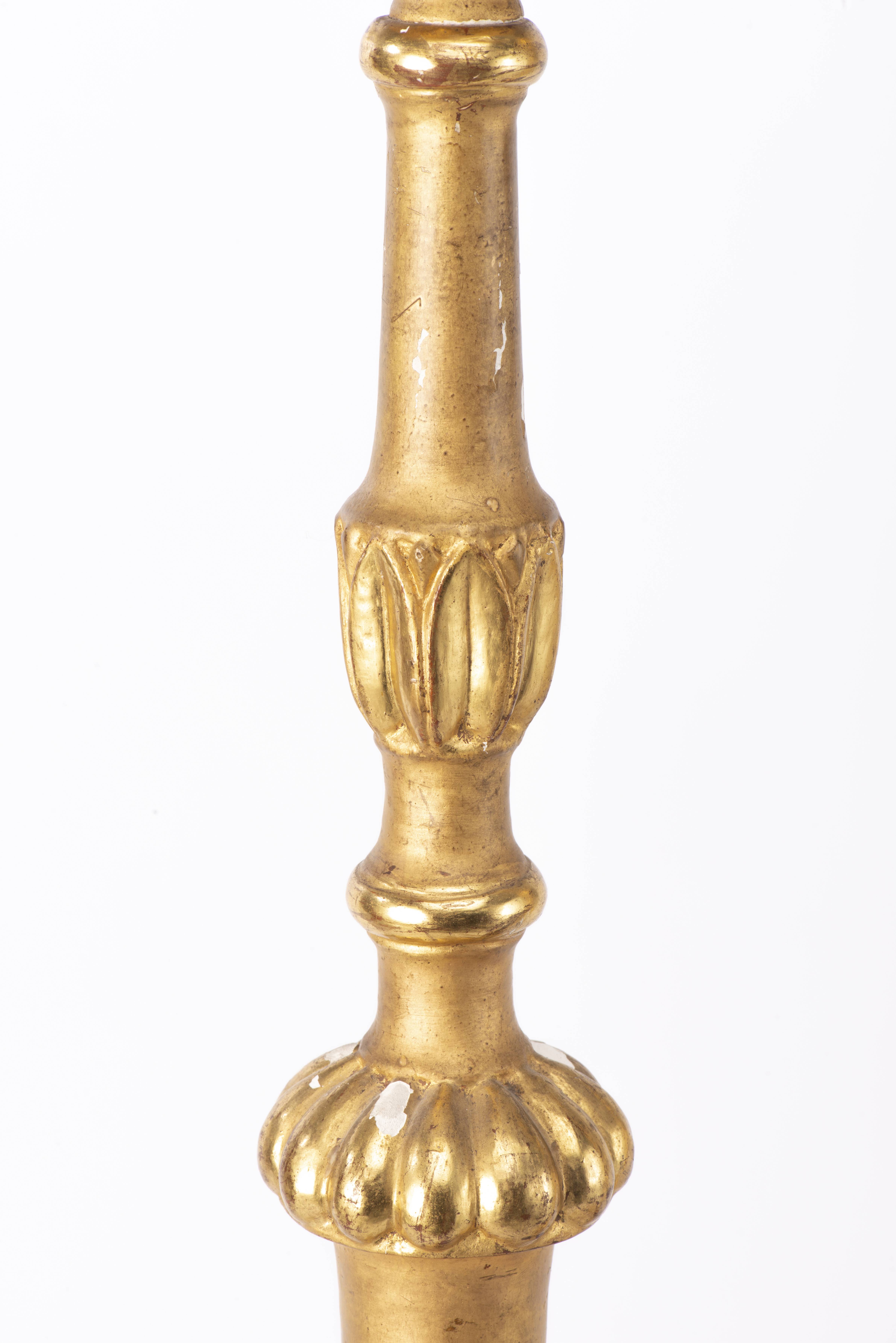 Paire de bougeoirs d'église en bois doré. Italie XIXe