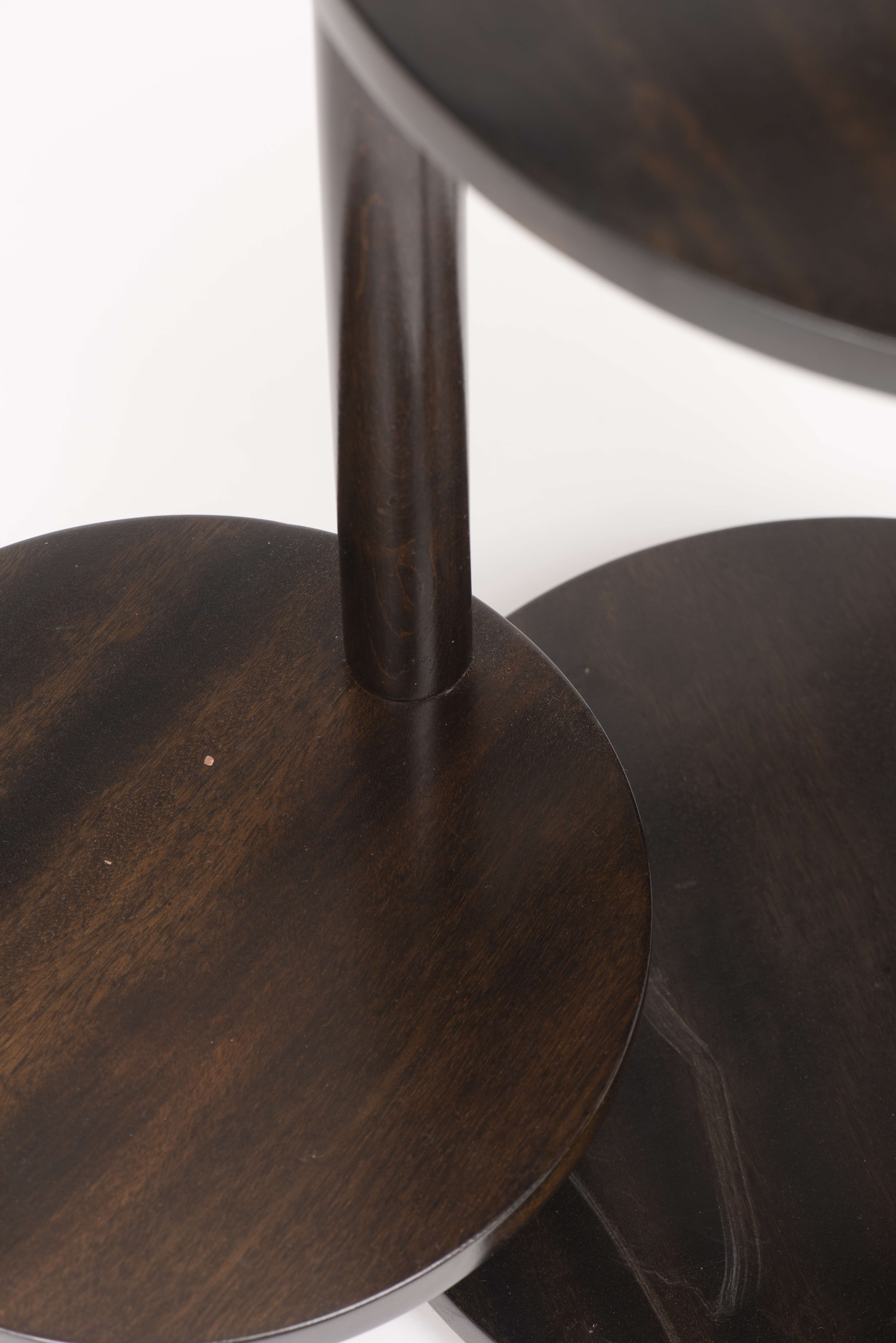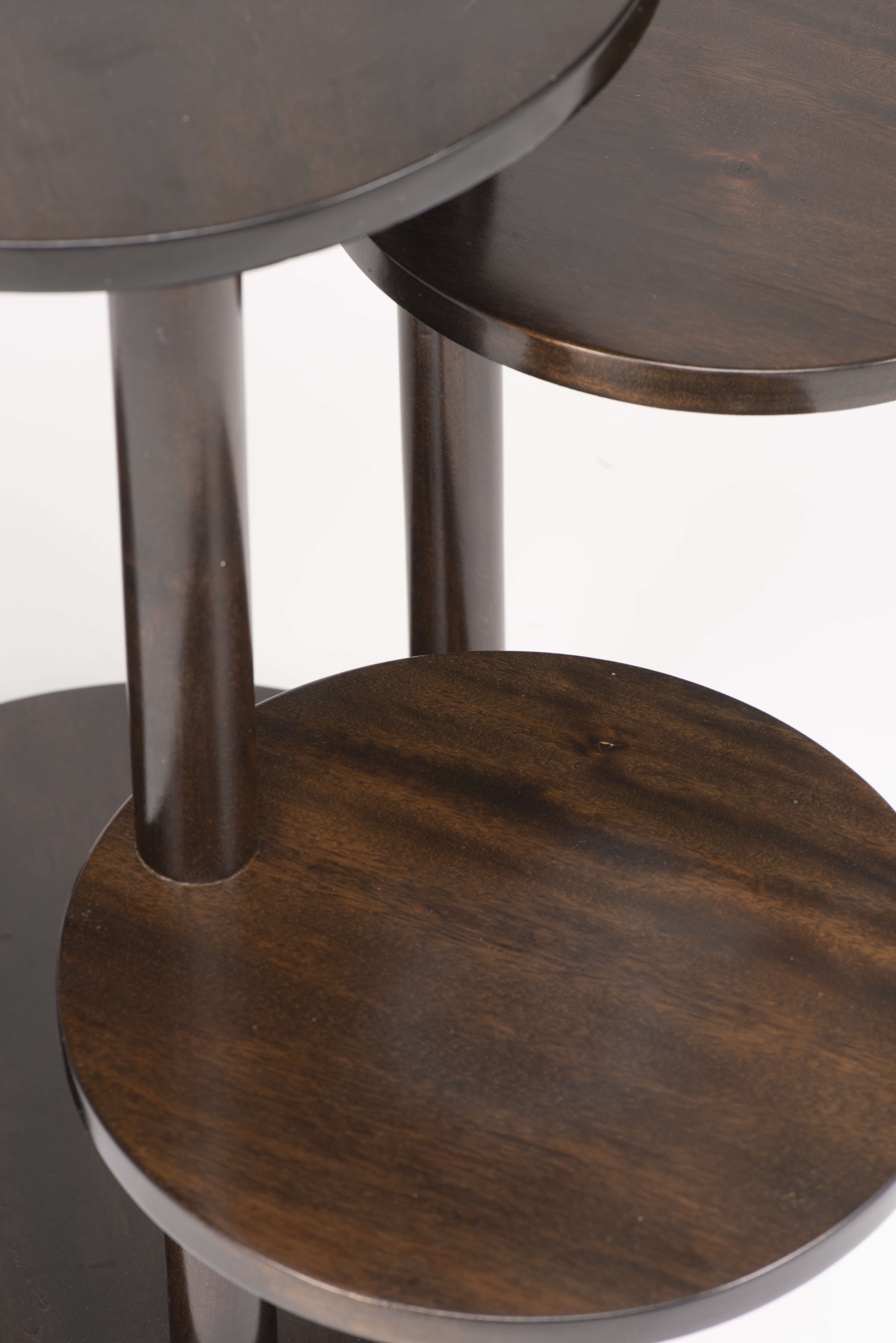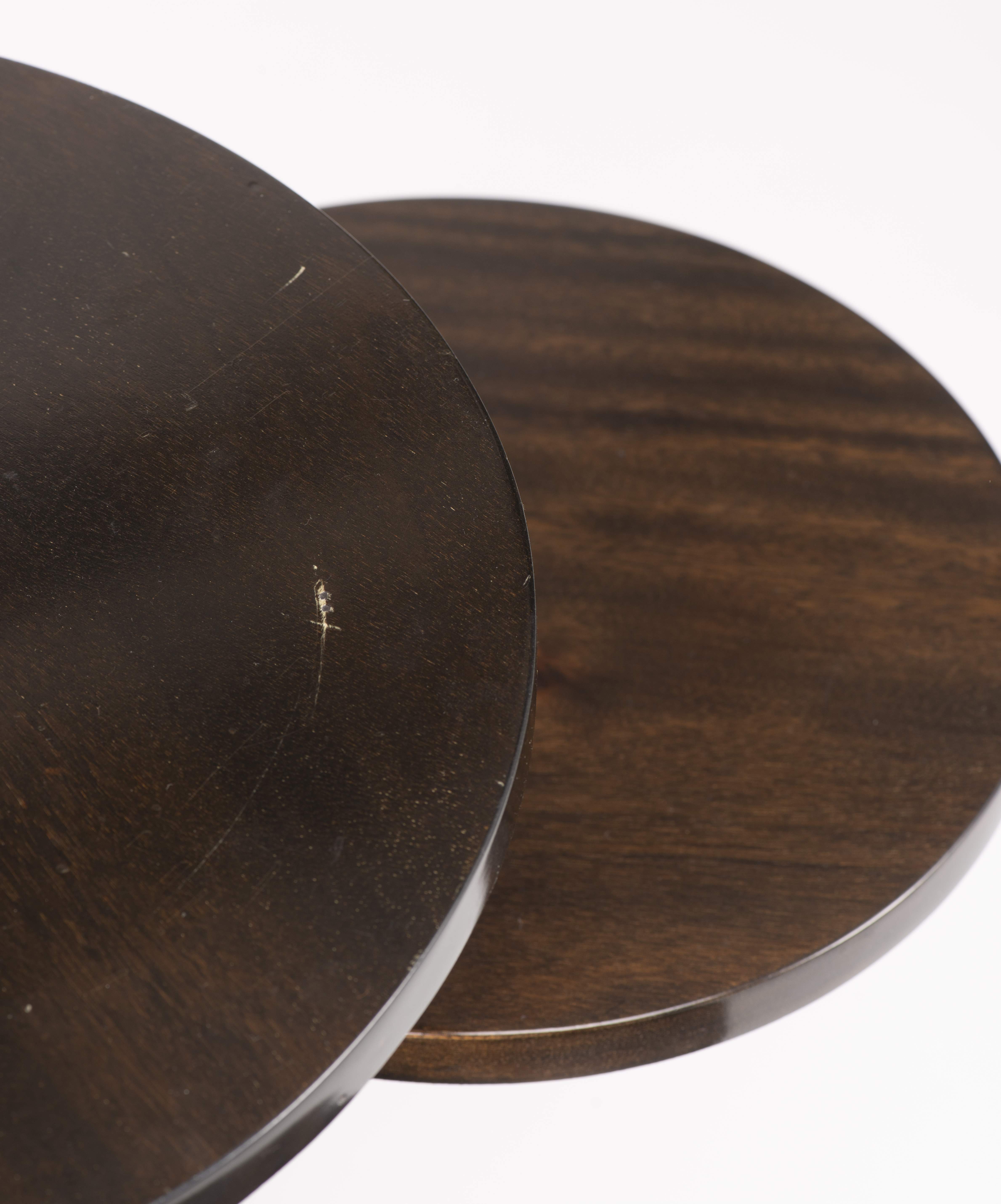 Sellette circulaire en bois laqué Art déco à 3 pieds et plateaux mobiles.
