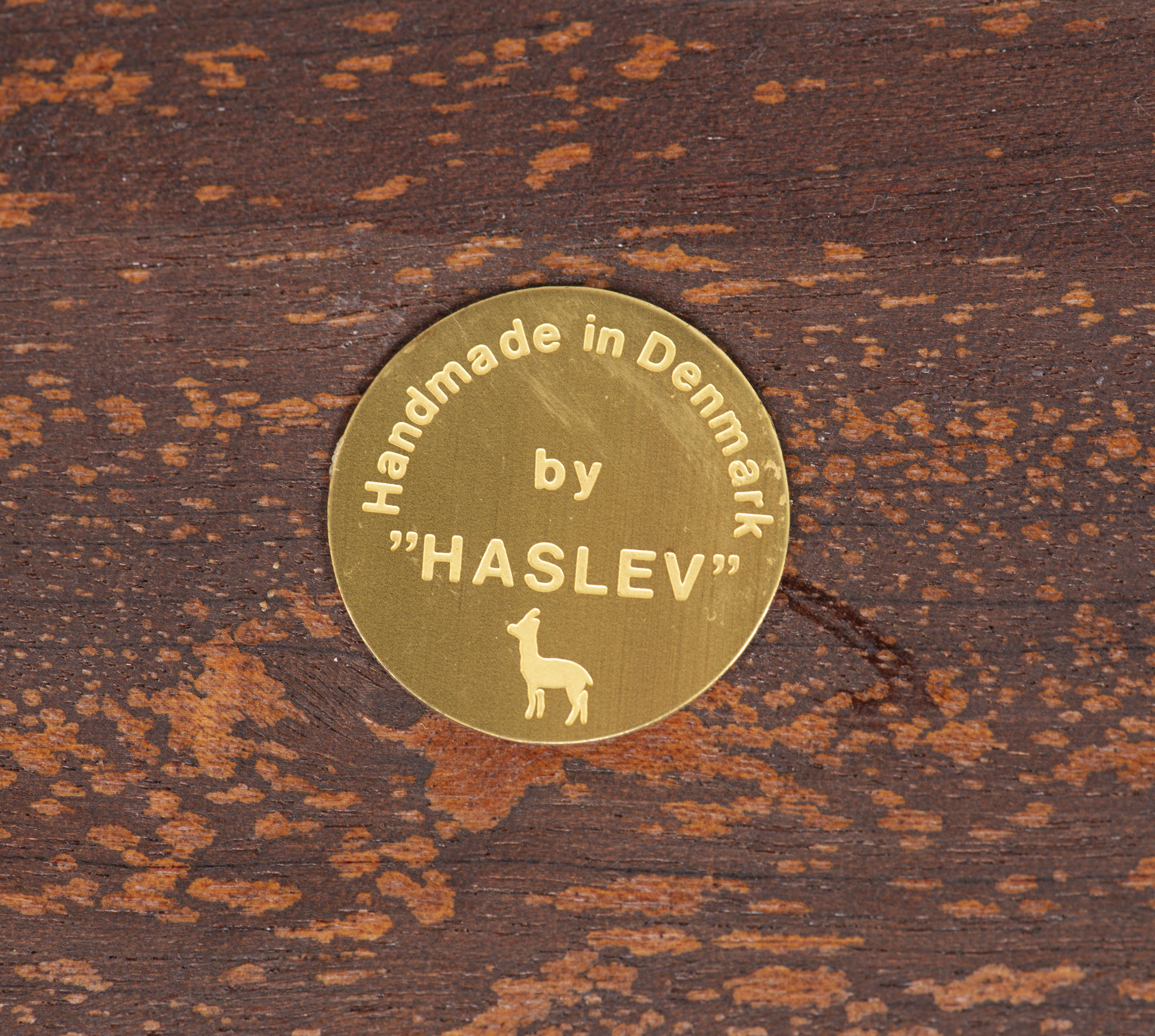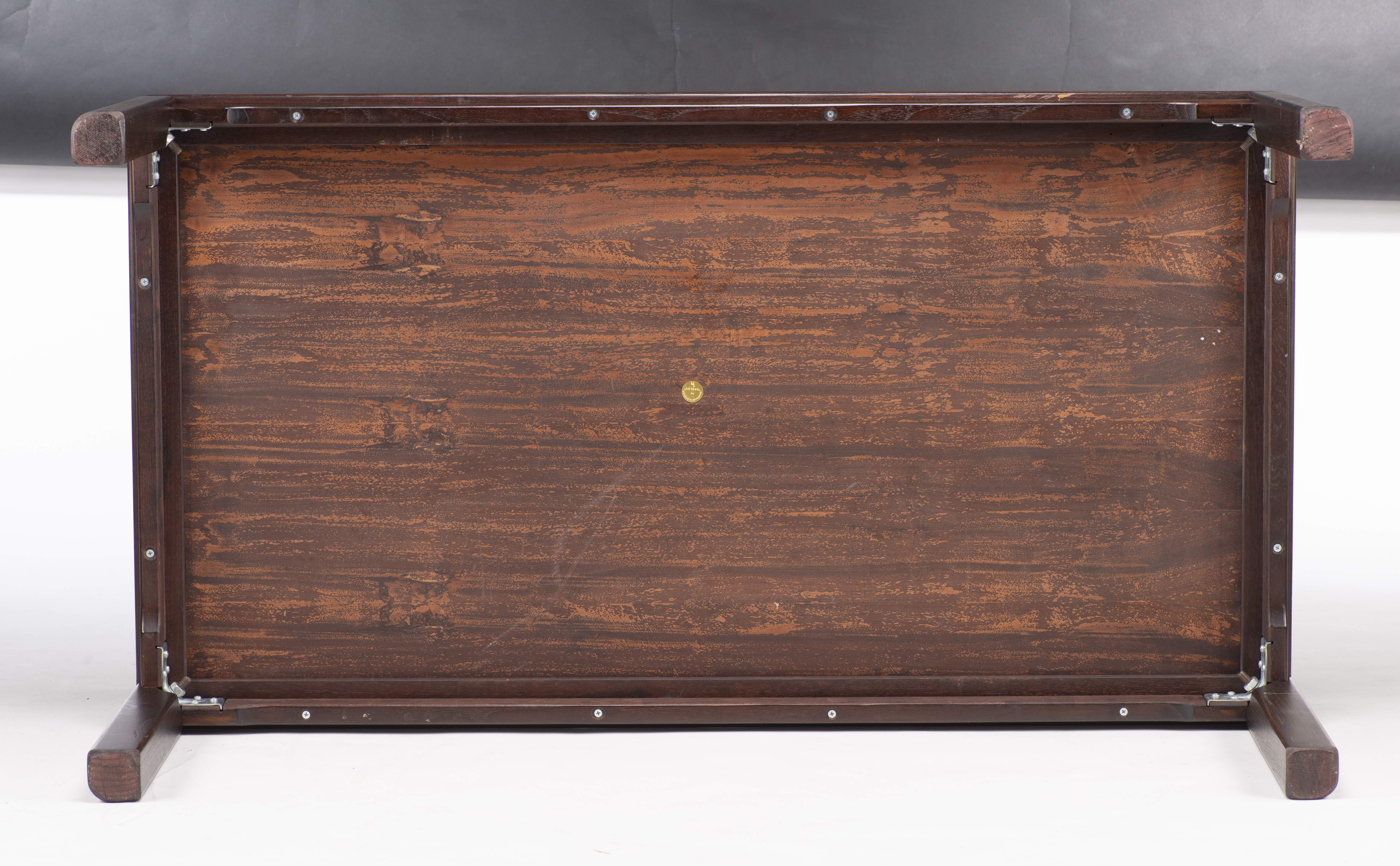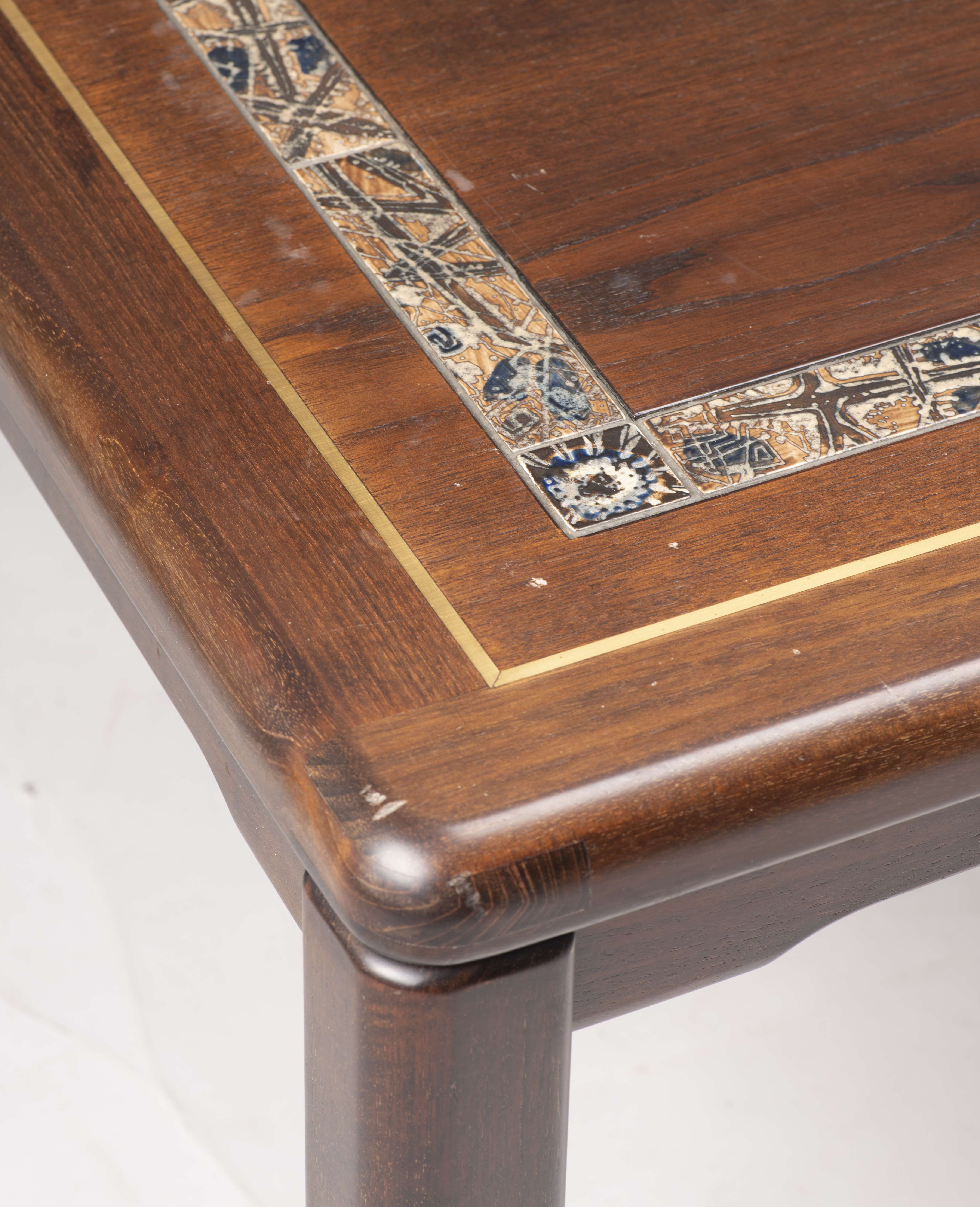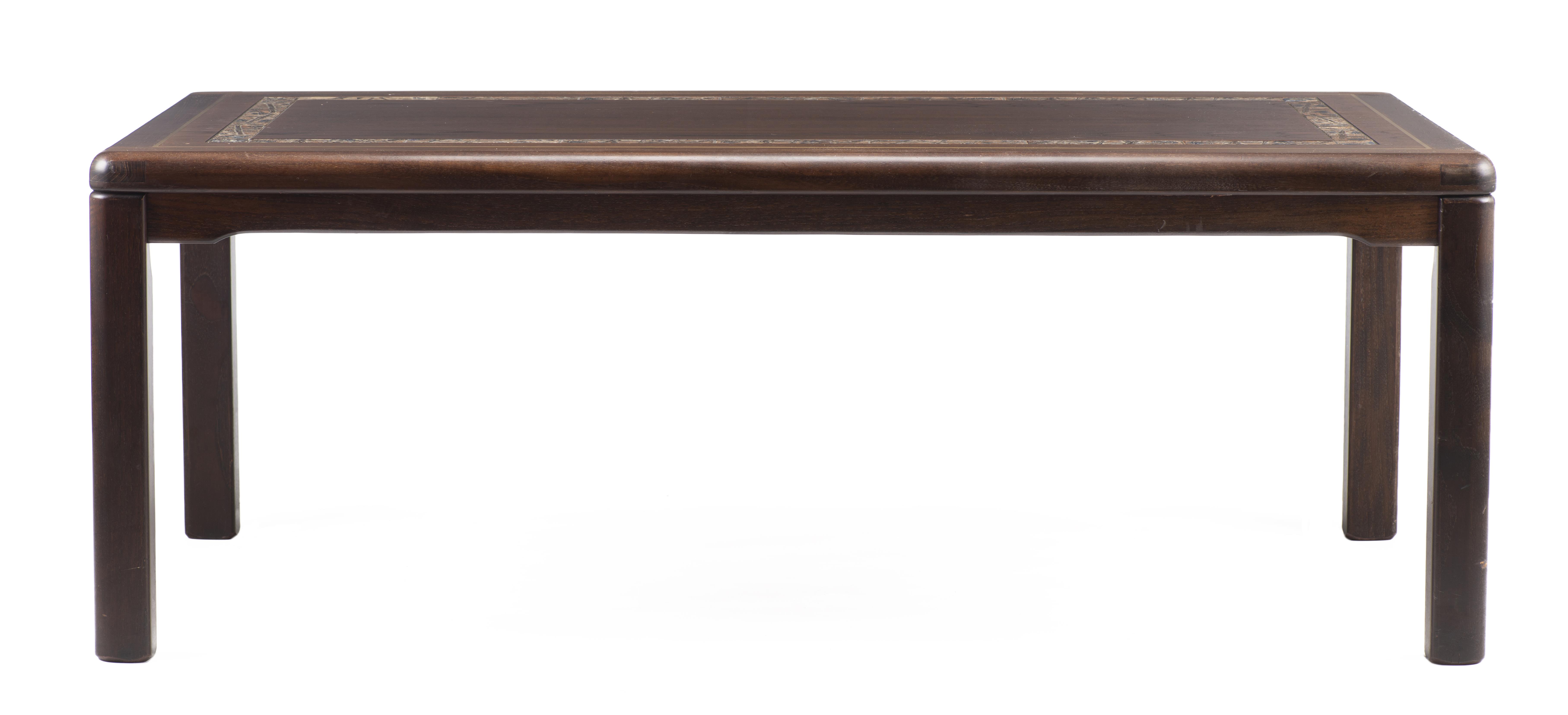 Table basse rectangulaire avec frise céramique par Haslev (Danemark) (Haslev Møbelsnedkeri), pastille incrustée sous le plateau de la table, vers 1970.