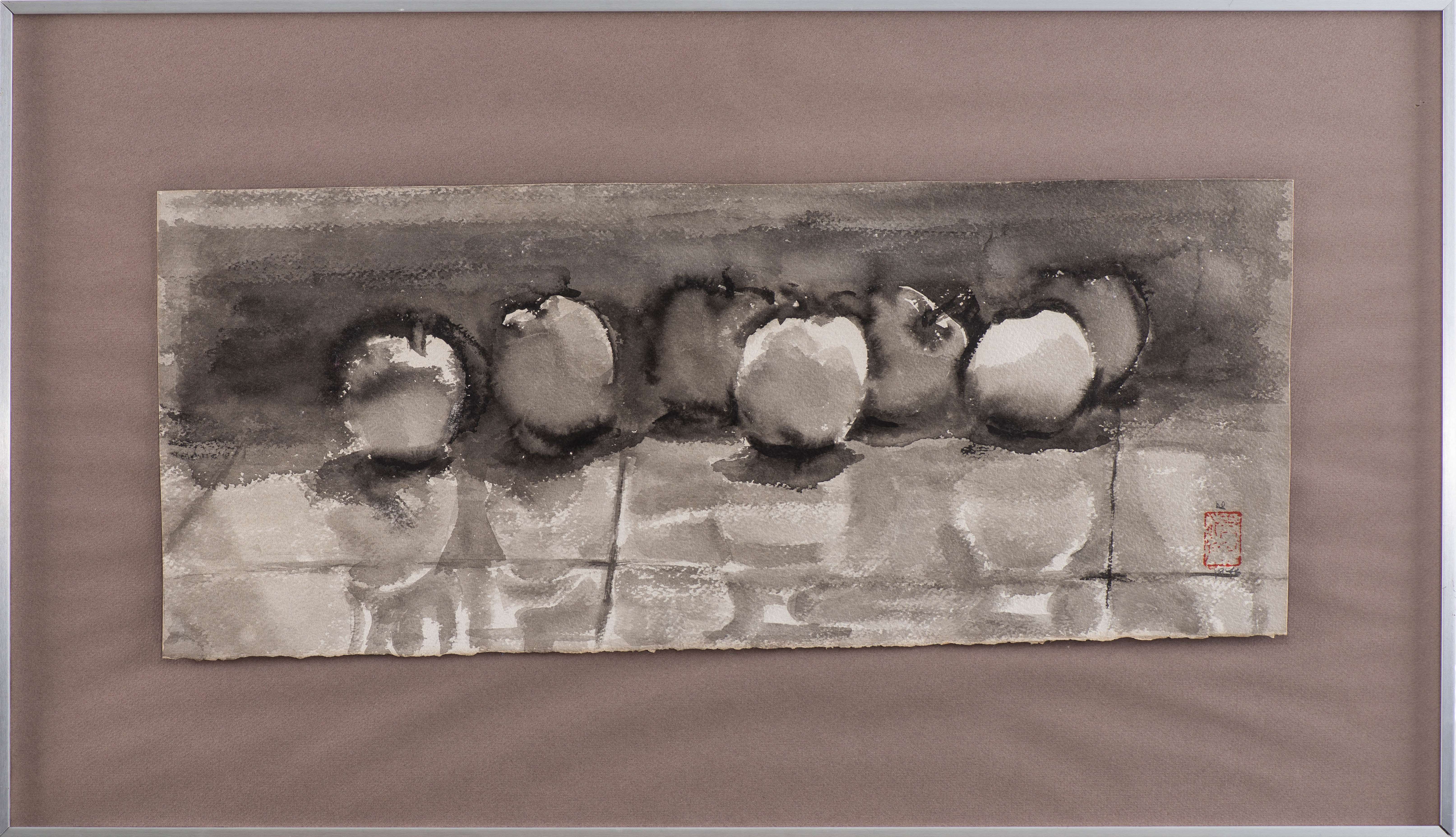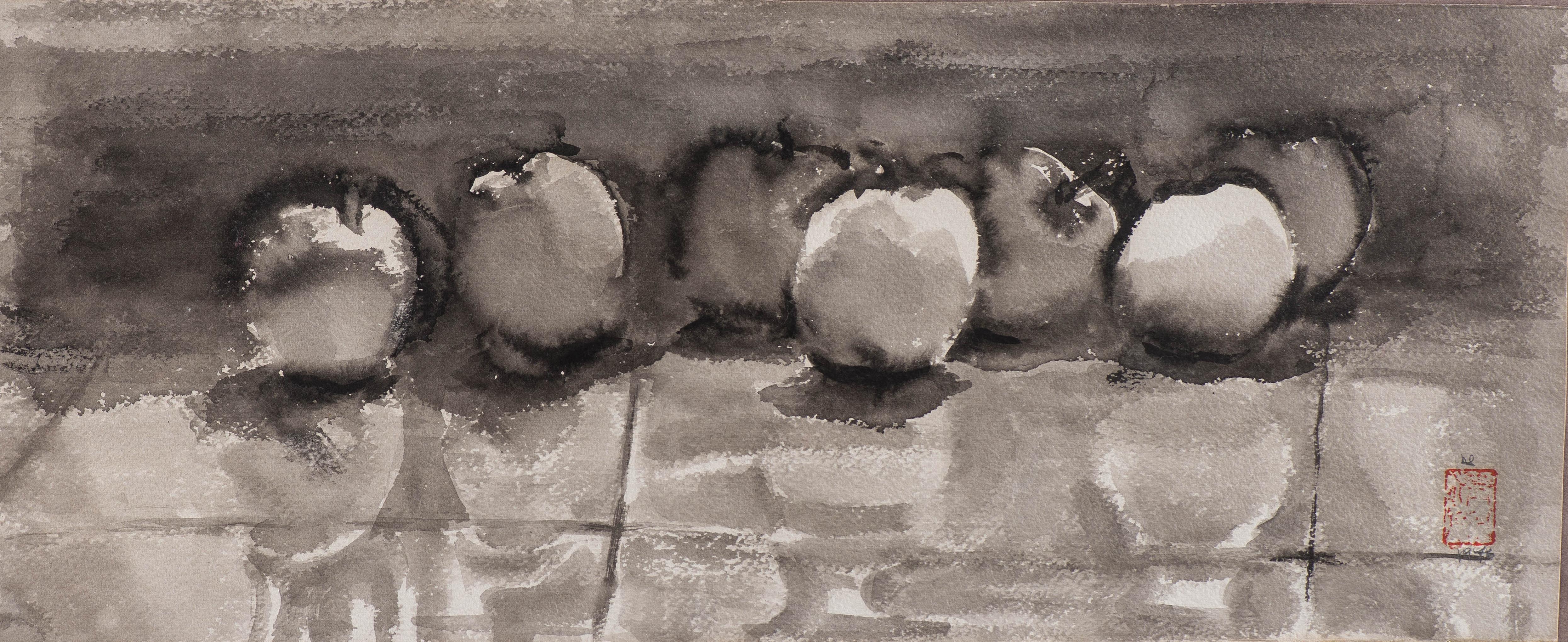Anonyme, "Pommes" Gouache sur papier, signé et daté 1976 bd