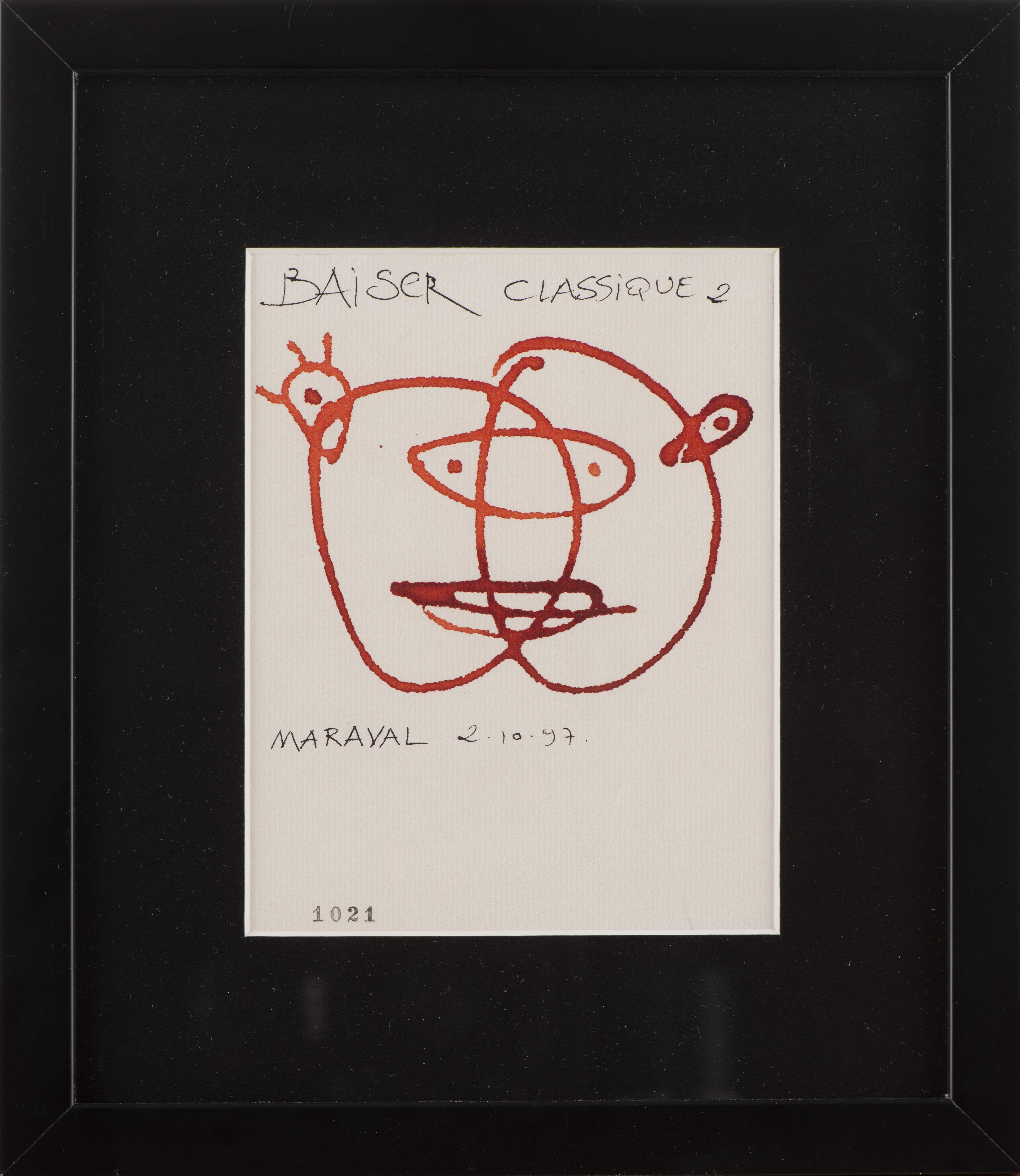 Pierre MARAVAL(1950), "Baiser classique 2", encre sur papier, sbg, numéroté et daté du 2.10.97.