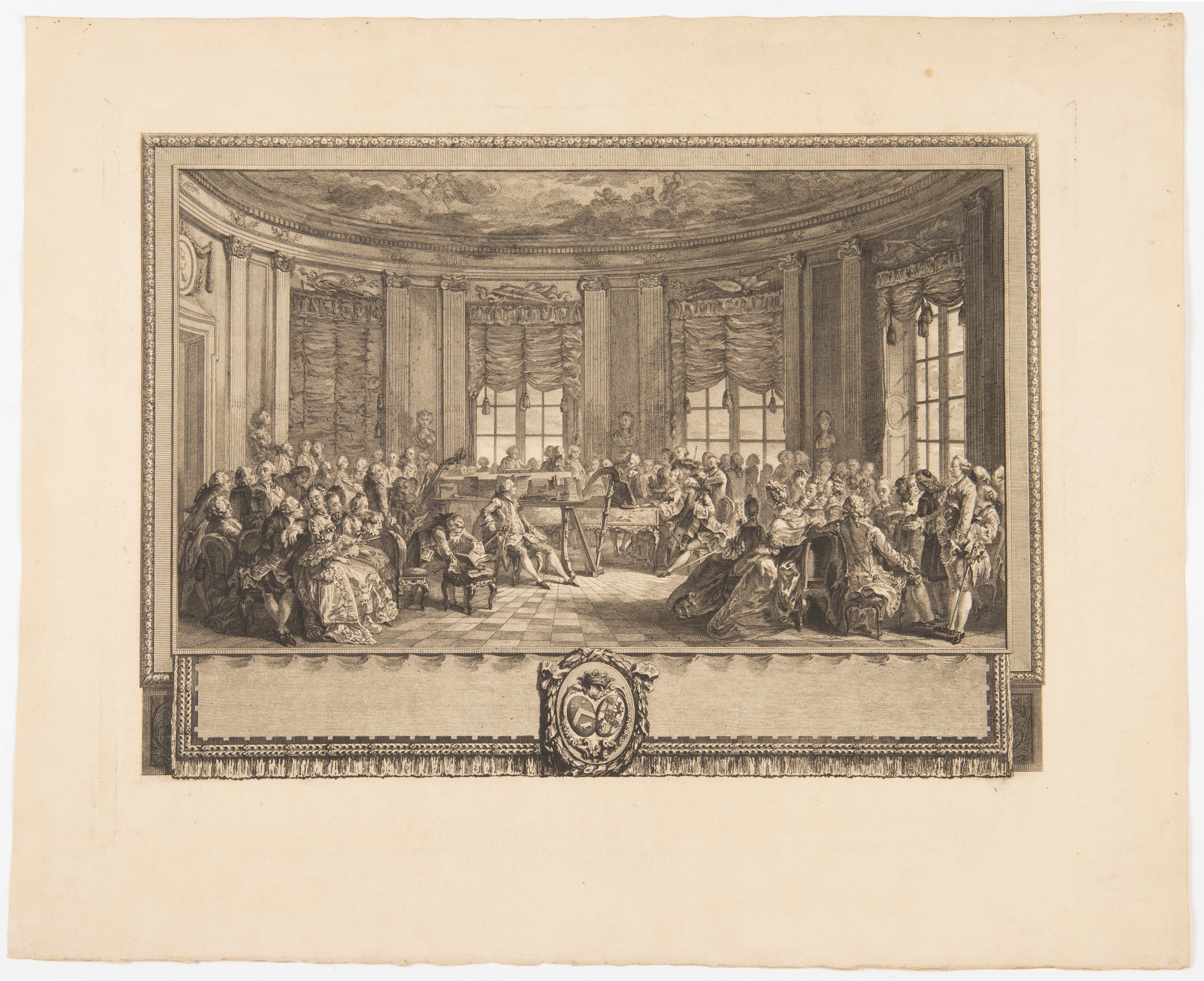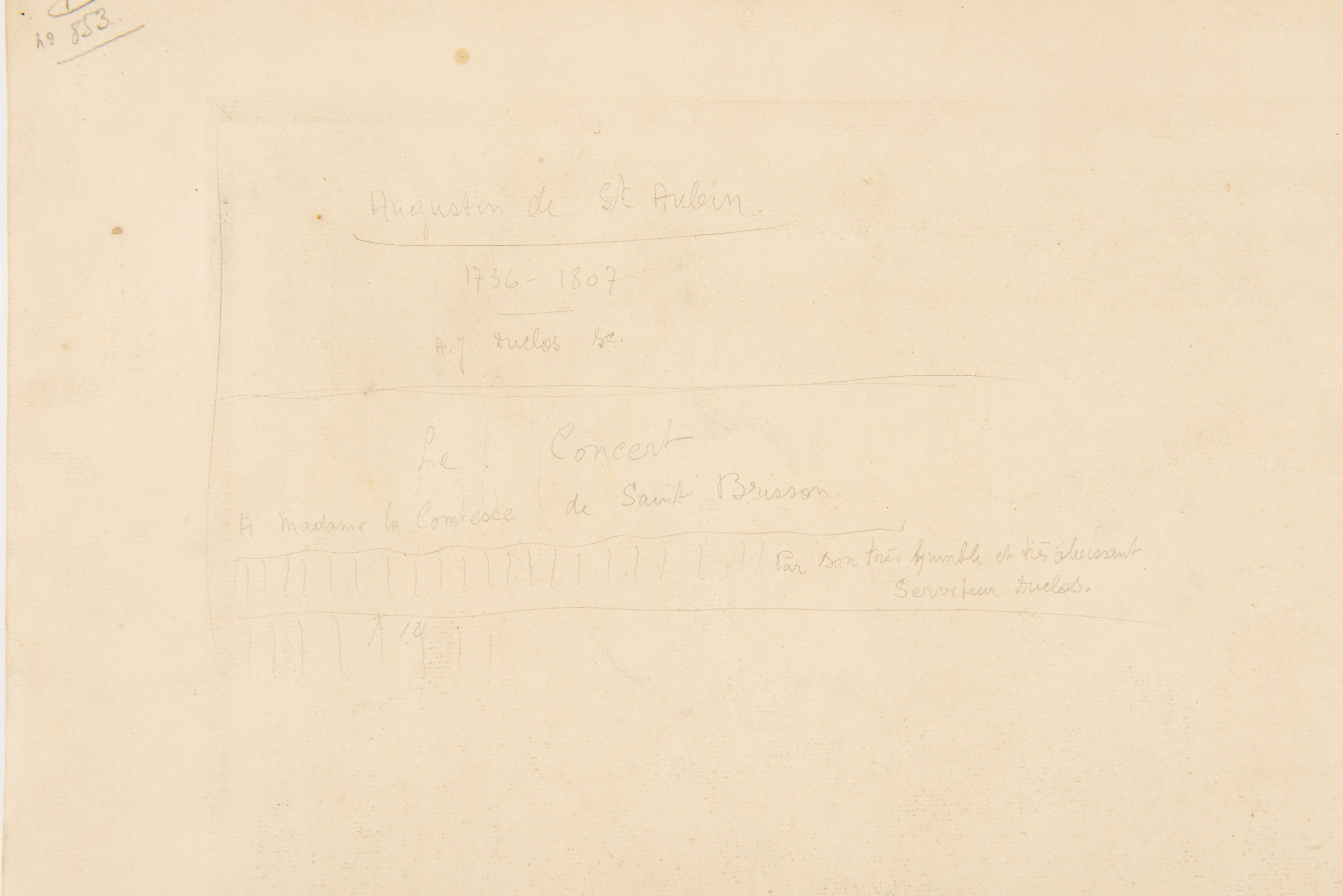 Augustin de SAINT-AUBIN, graveur du roi, d'après. Paire de gravures en noir tirées par L. PROVOST, "Le concert", dédié à Madame la comtesse de Saint-Brisson & "Le bal paré", dédié à Monsieur de Villemorien fils .