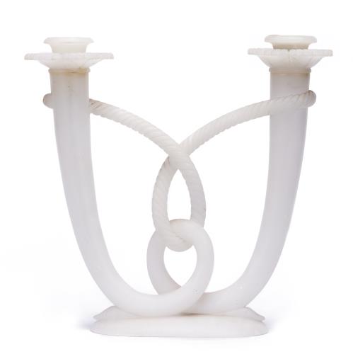- flacon en cristal à décor à l'or à lèvre mouvementée avec bouchon taillé en diamant, H. 17 cm