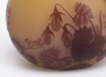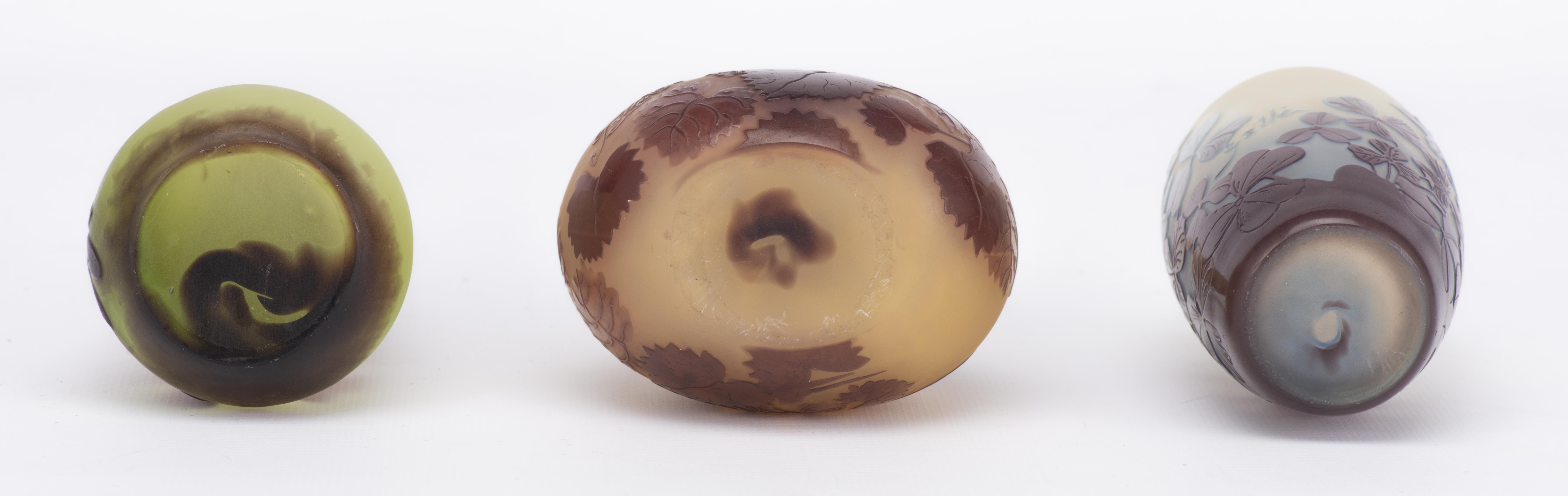 Emile GALLE (1846-1904), trois petits vases en verre multicouche à décor gravé à l'acide, signés "Gallé" sur la panse :