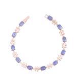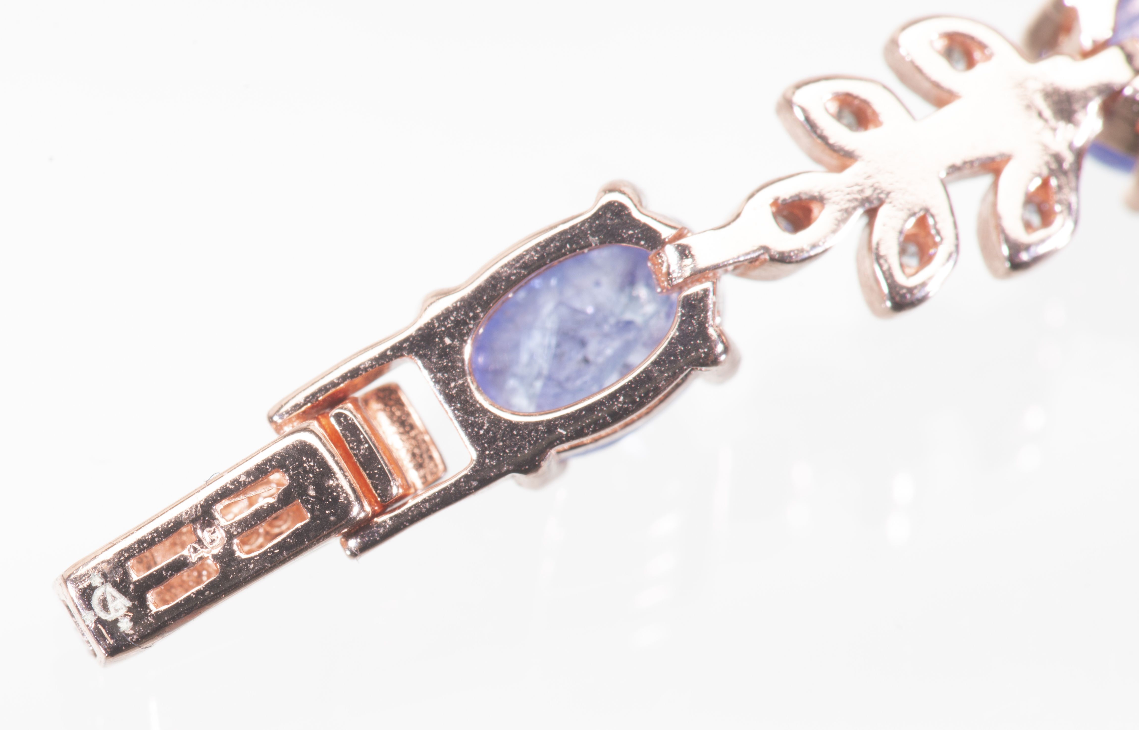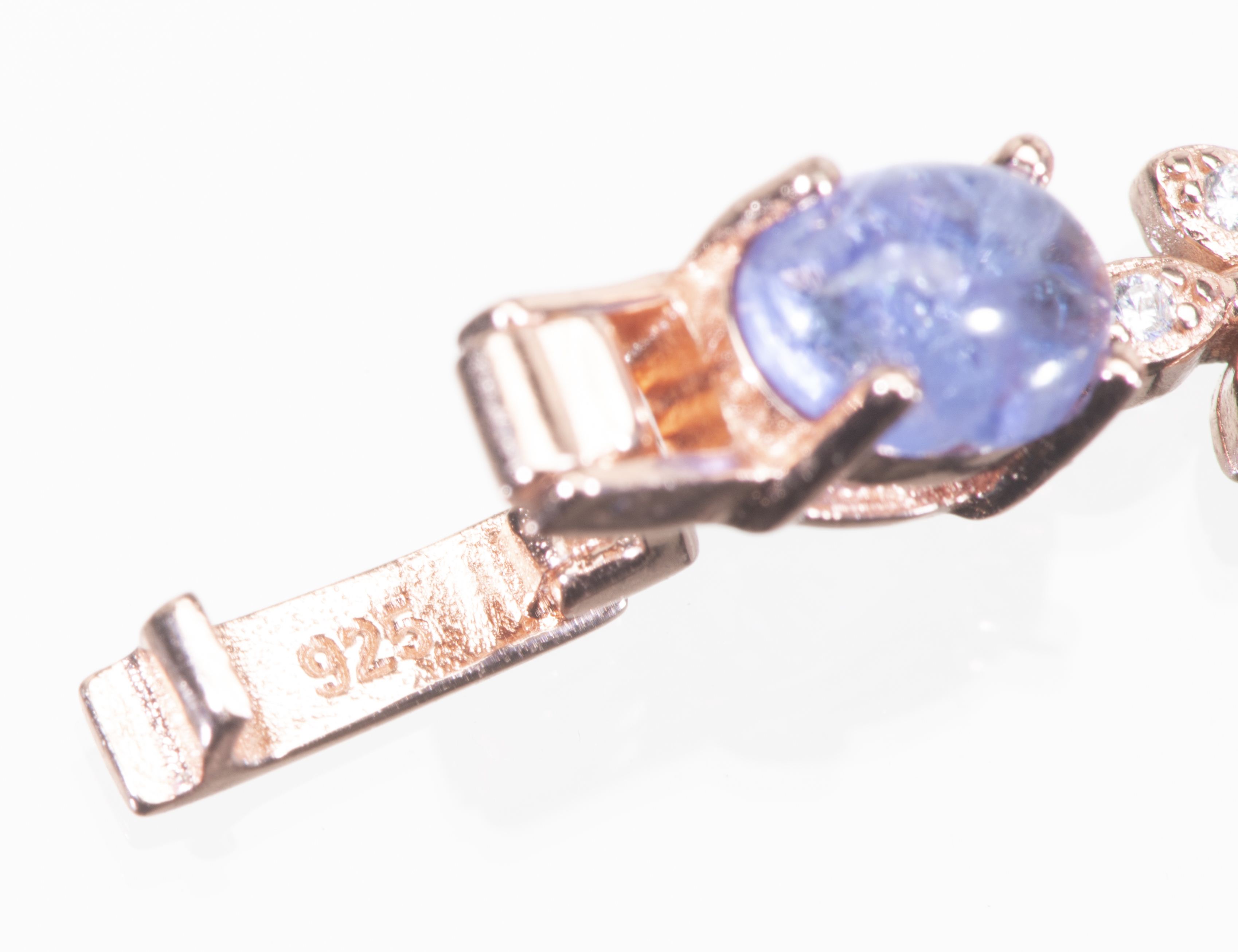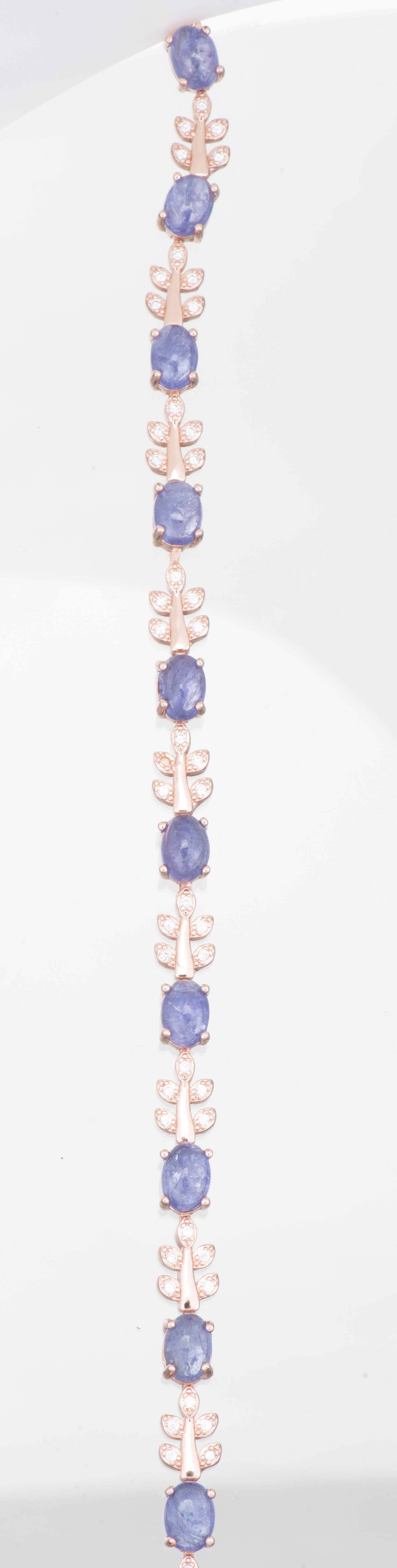 *Bracelet en argent vermeil rose de 11 tanzanites cabochon pour 5 cts et des zircones cubiques pour les feuilles.