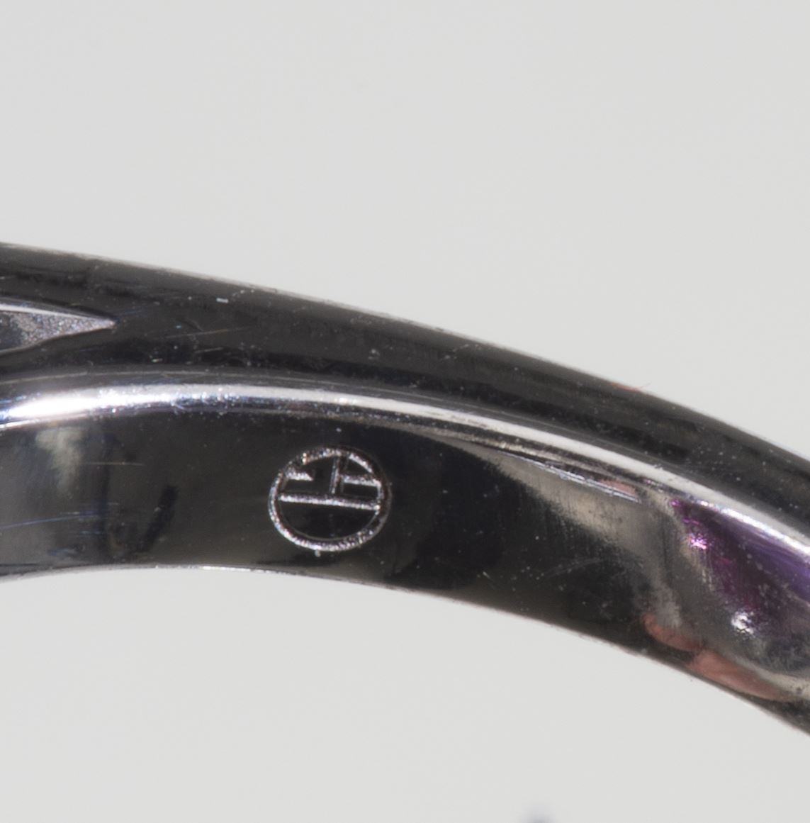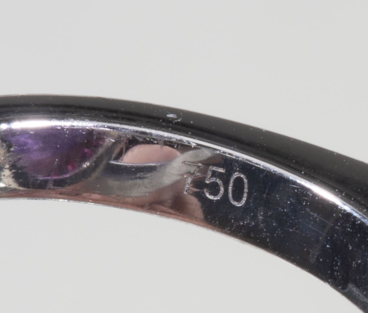 Bague, or gris et améthyste cabochon