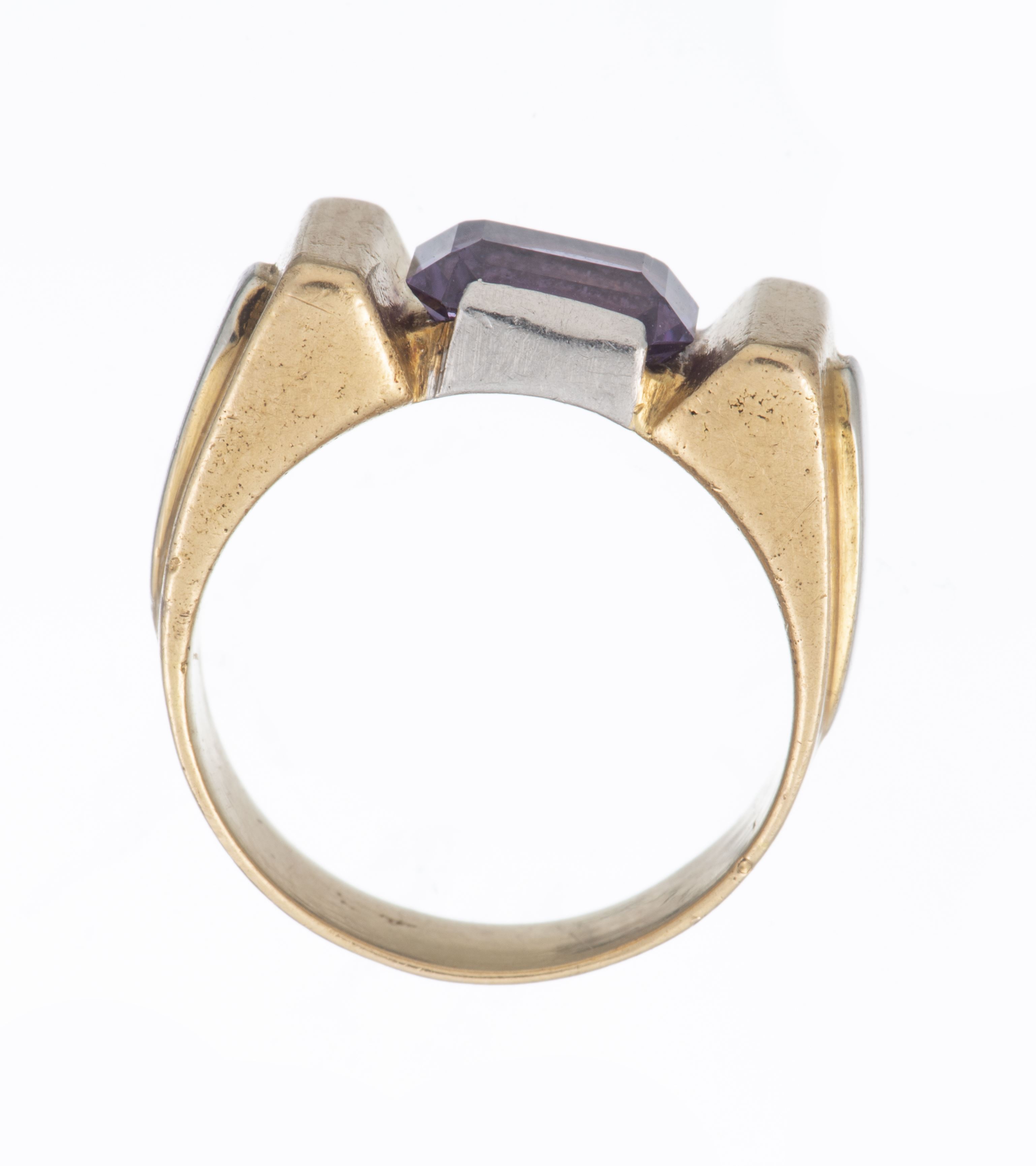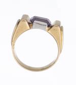Bague bicolore en or jaune et or gris .750 sertie d’une améthyste de taille émeraude de env. 1 ct.