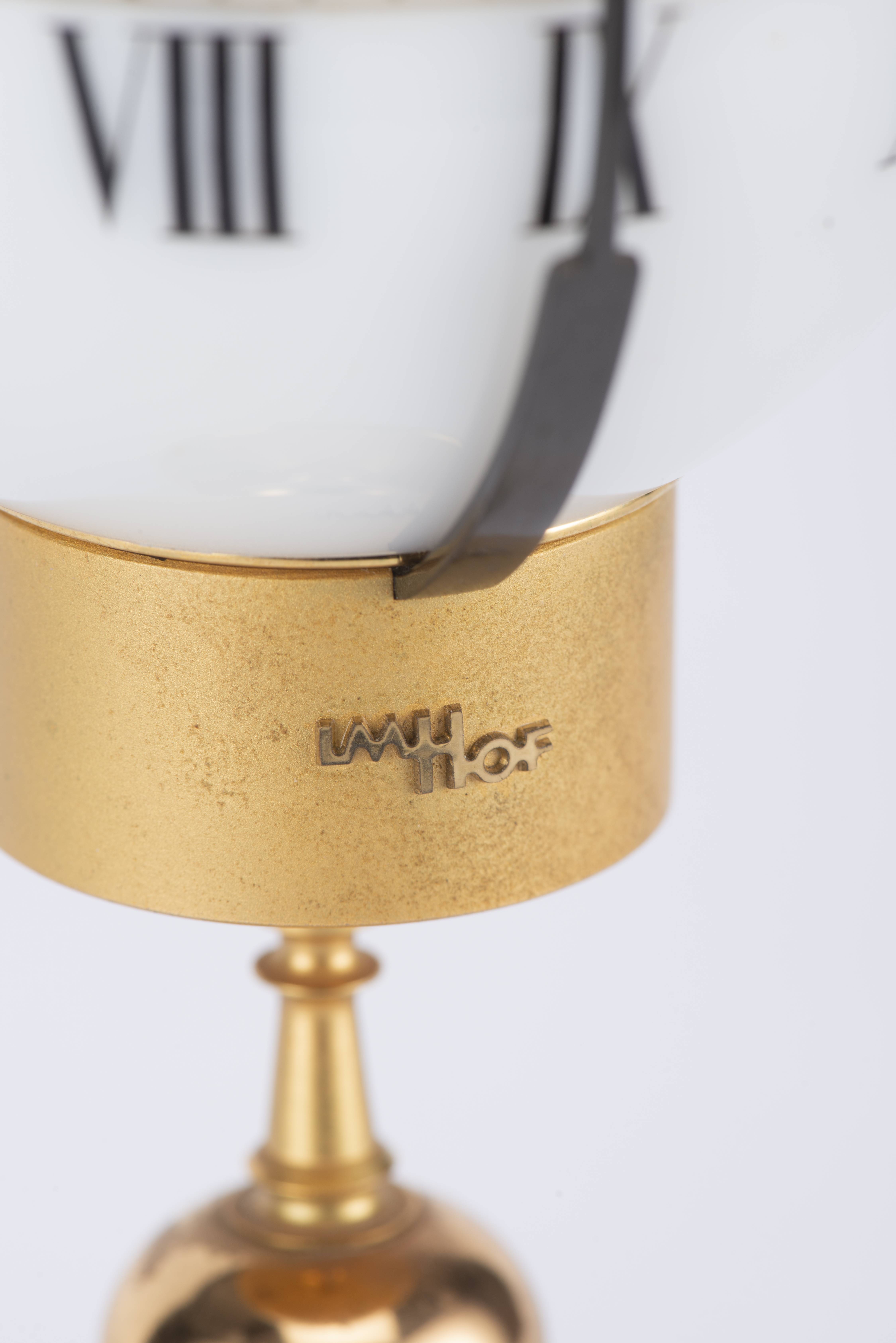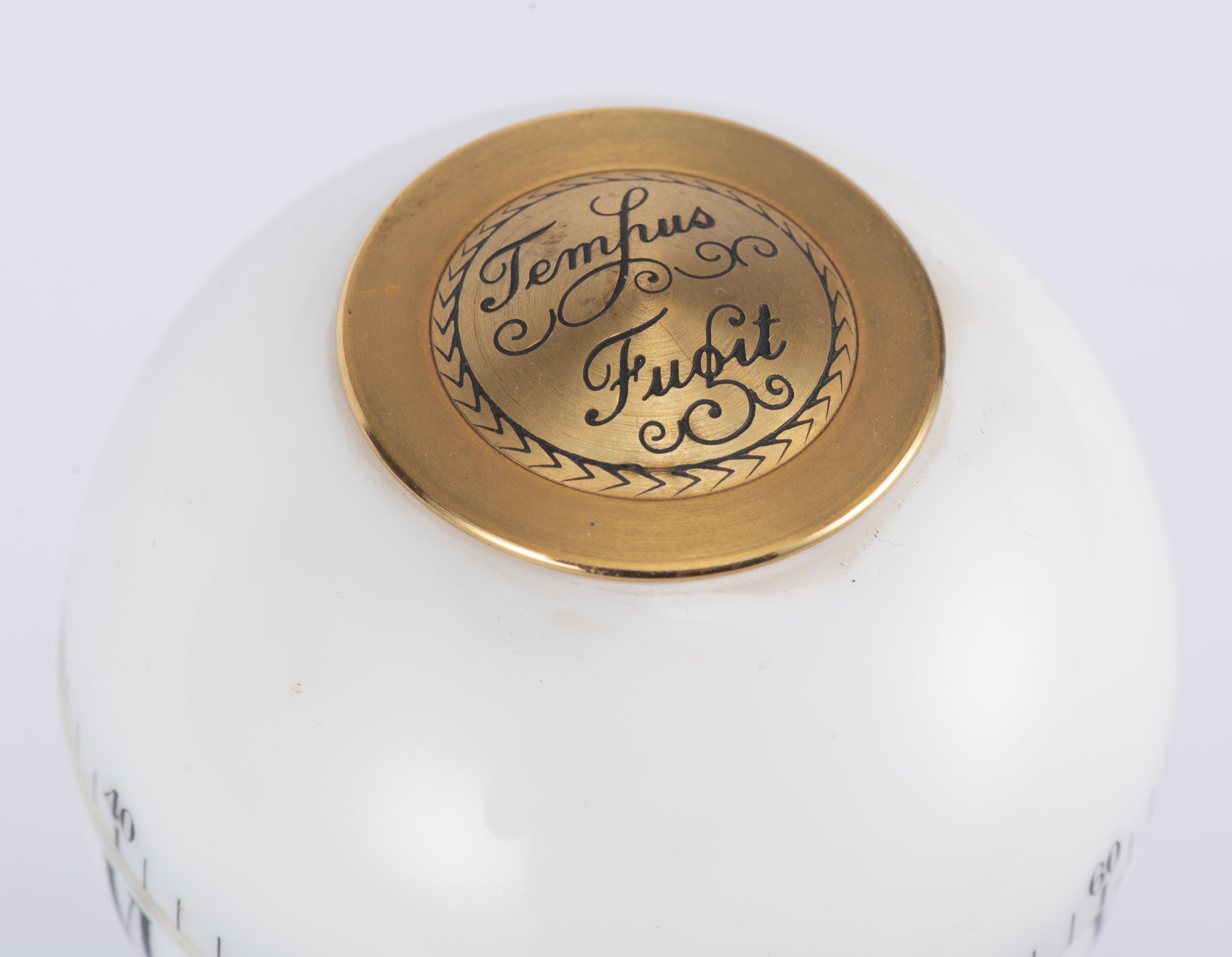 Imhof Tempus Fugit, horloge-globe de table. Inscription sur la partie supérieure du piédouche : "IMHOF - SWISS 75/845 - 8 DAYS".