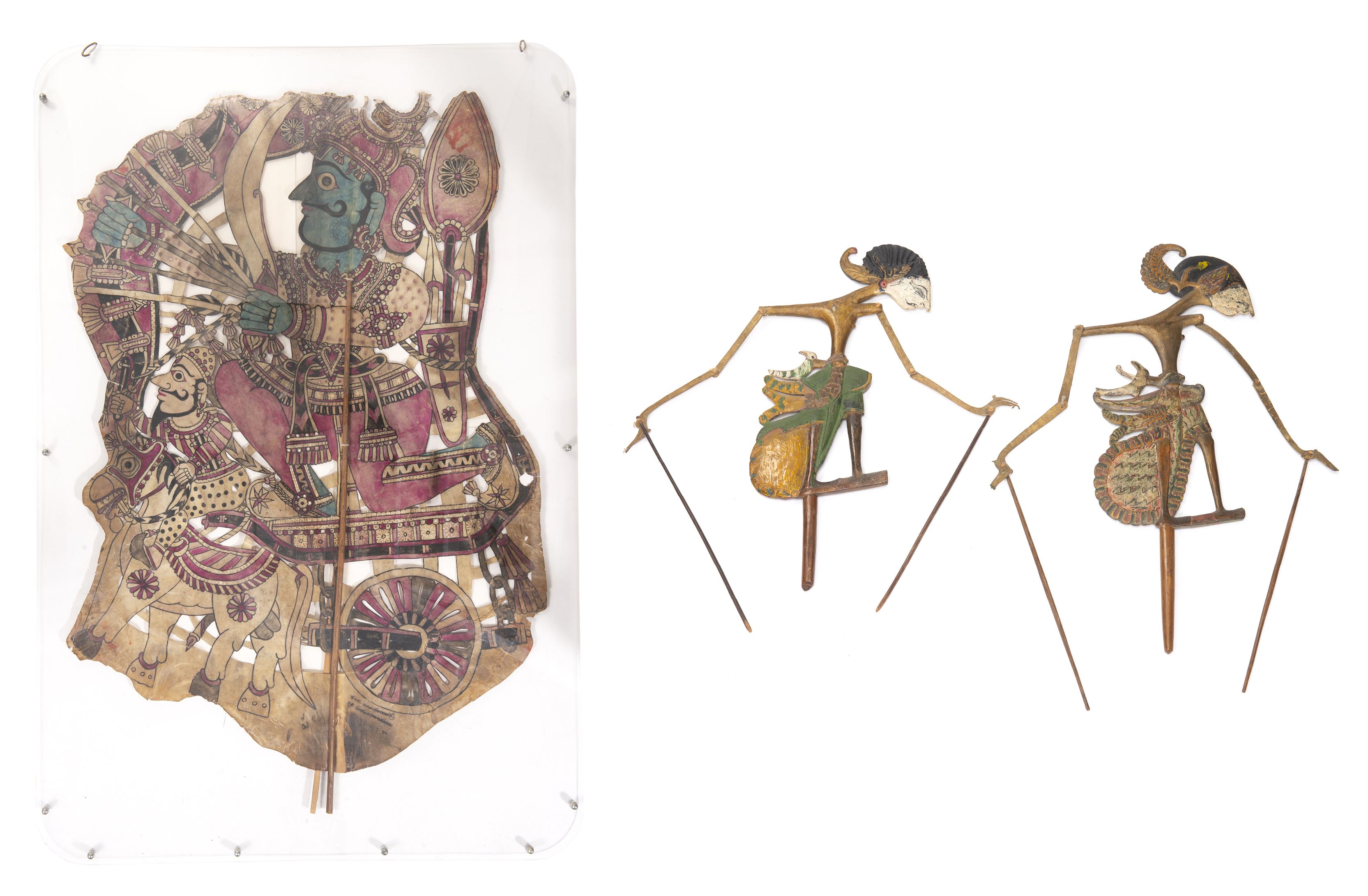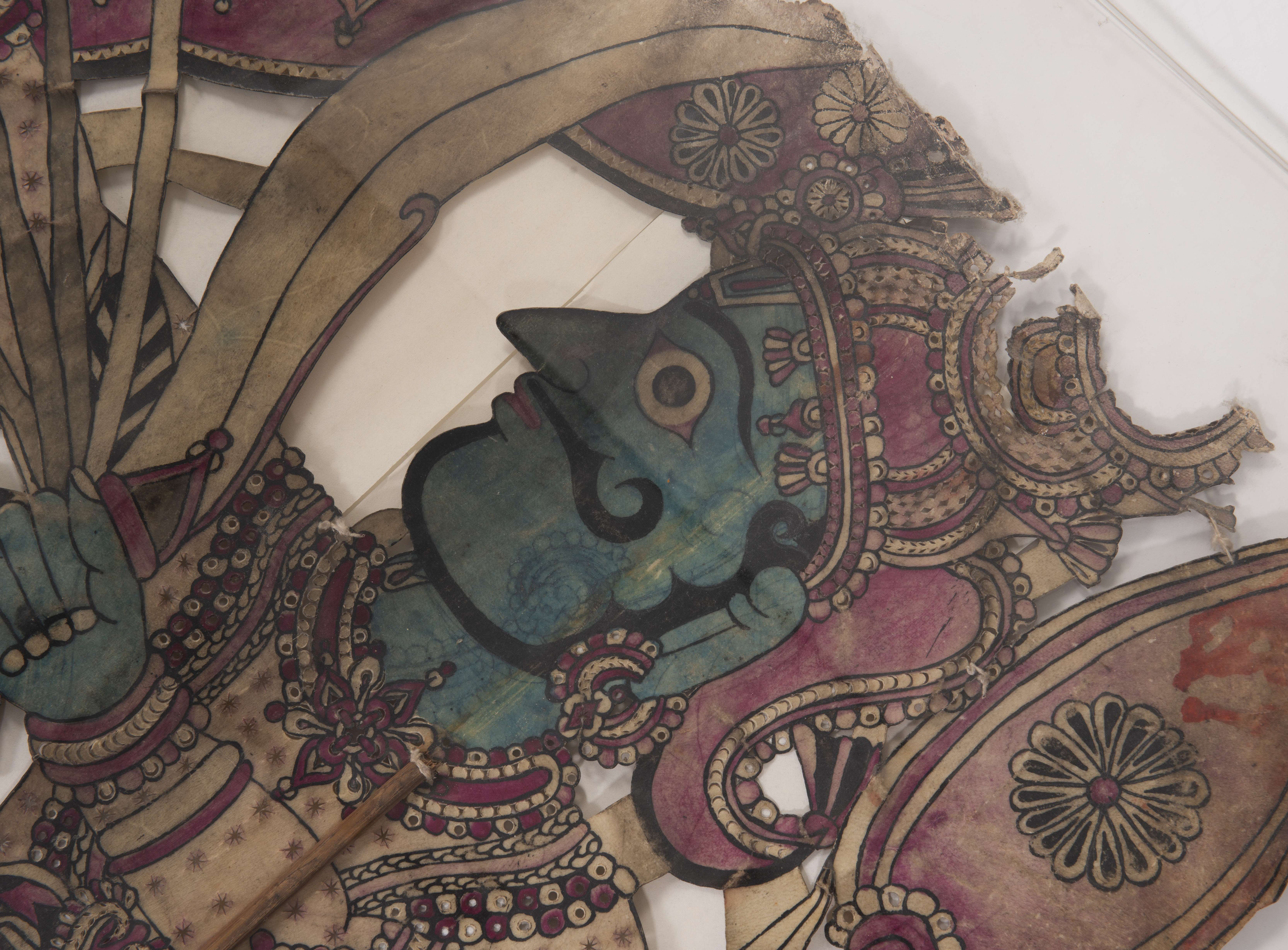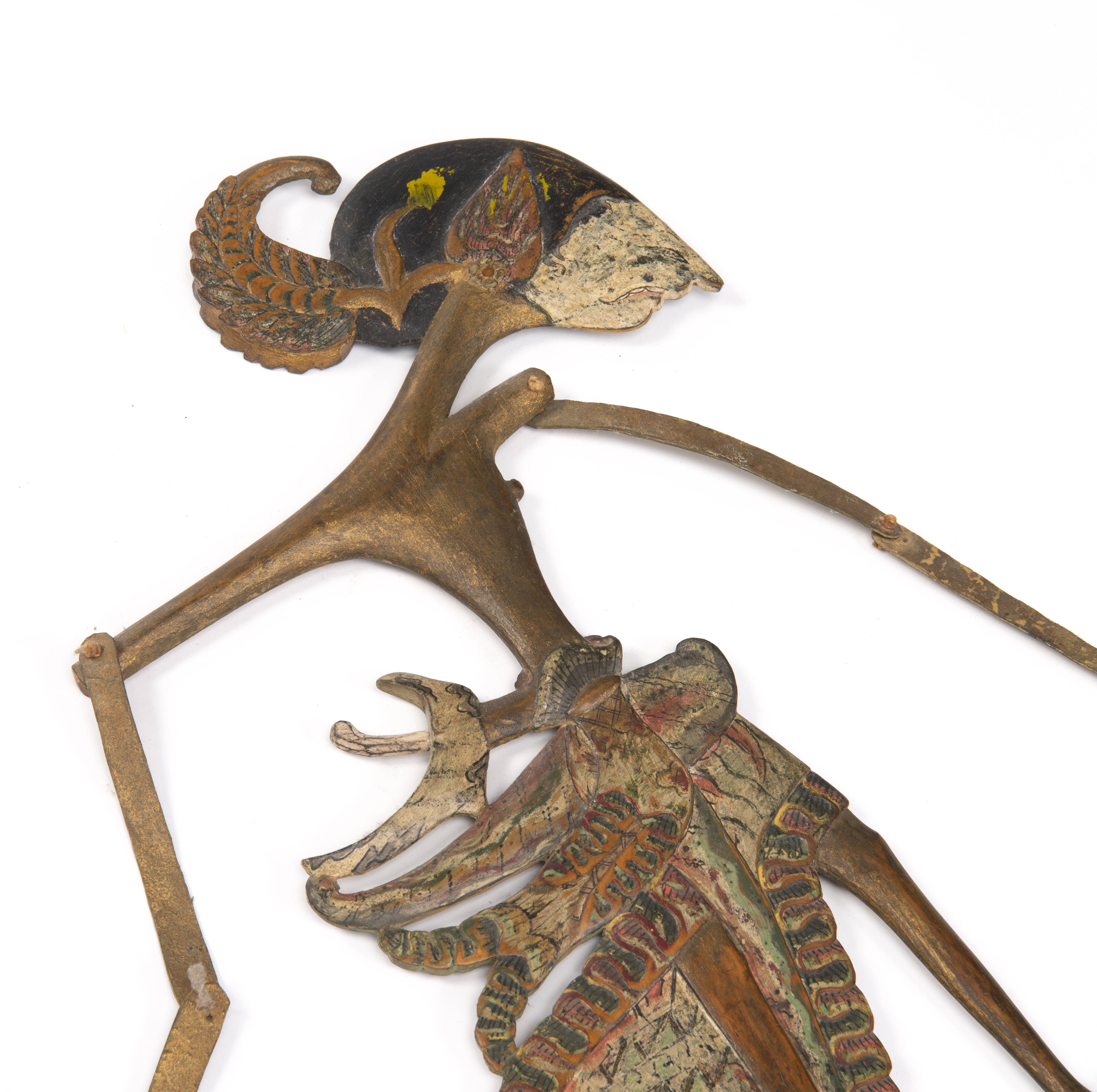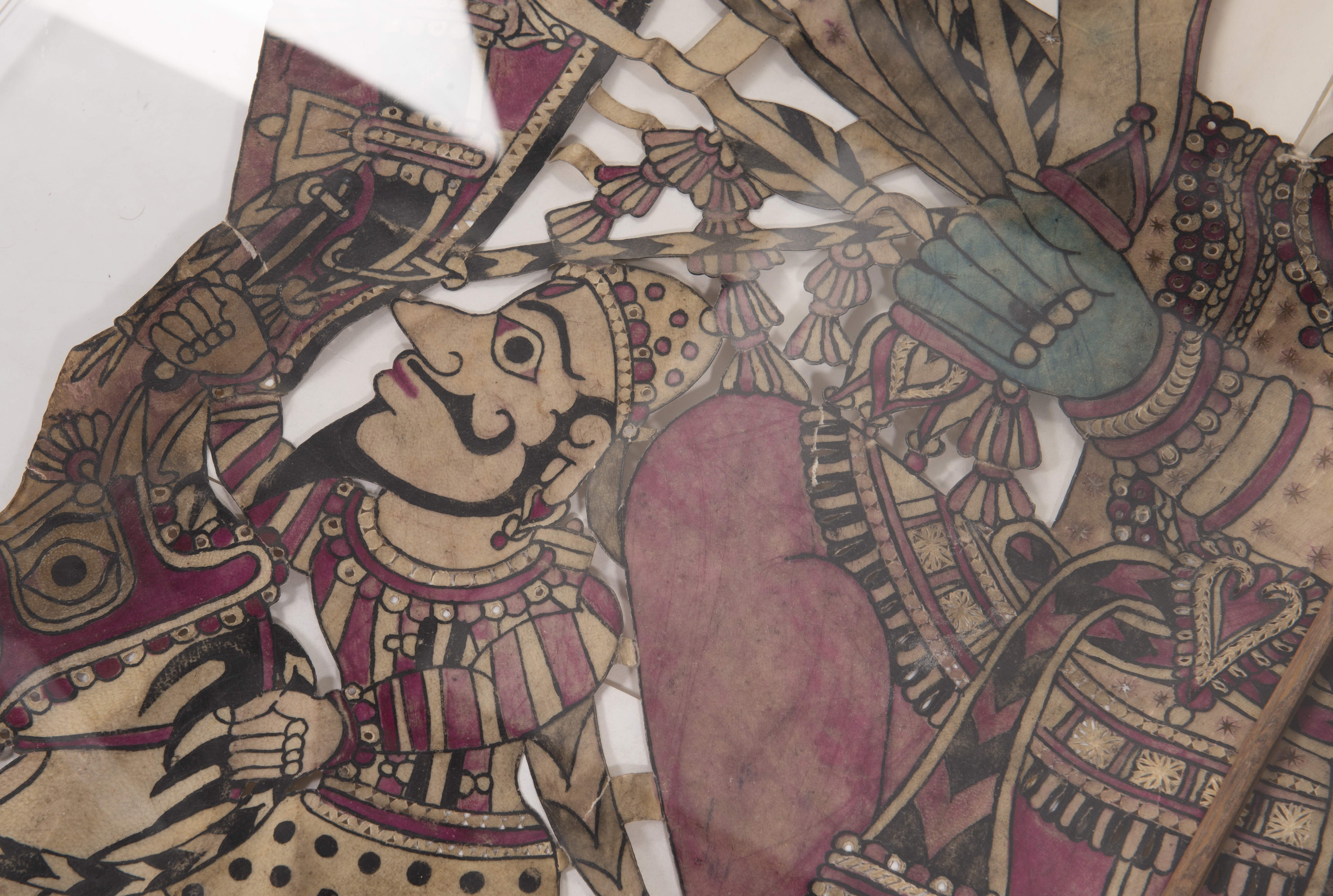 Marionnettes Wayan Kulit or Shadow Puppet from Java, Indonesia en bois et parchemin