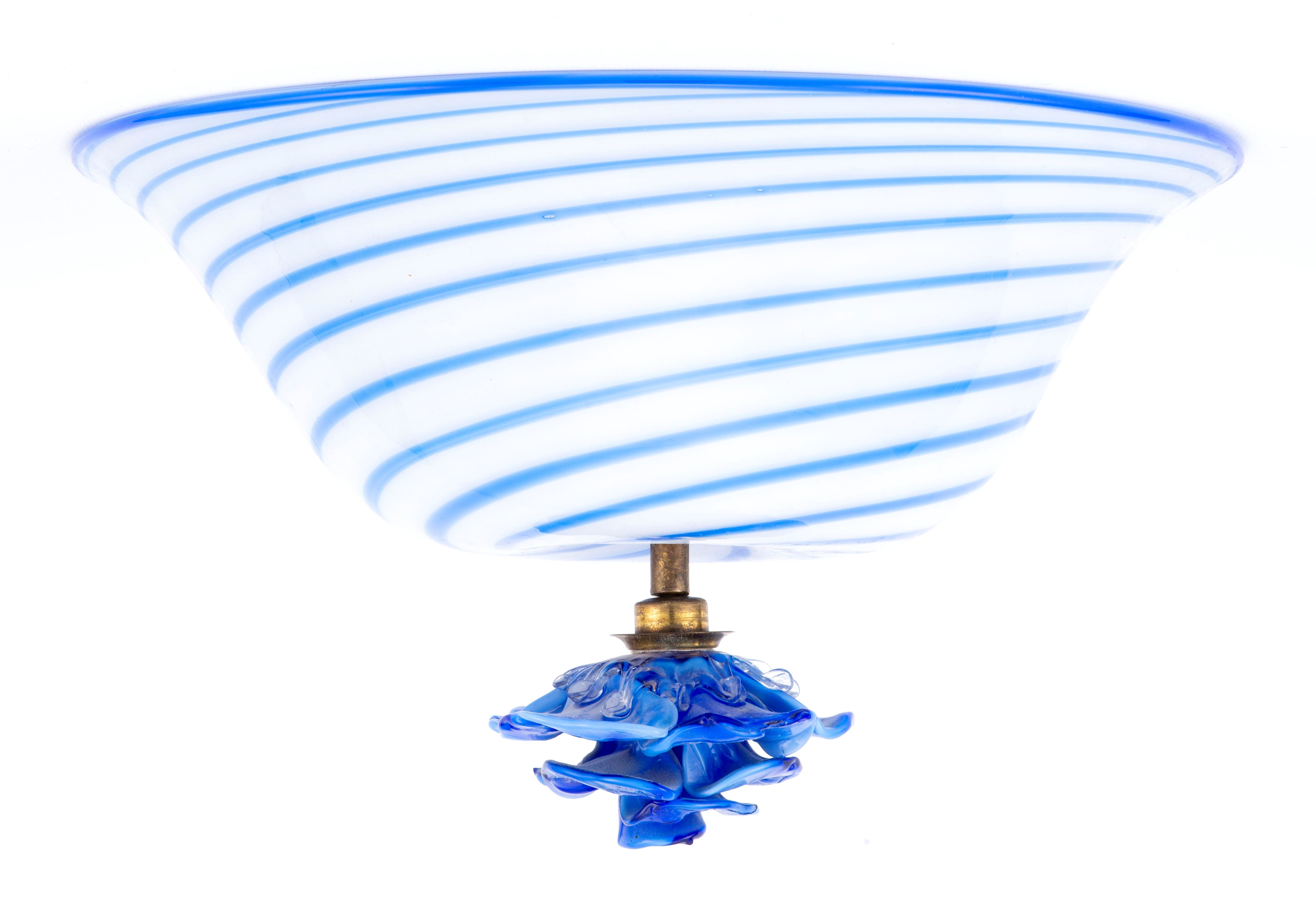 Plafonnier de Murano à vasque en verre bicolore bleu et blanc