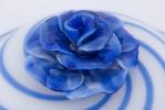 Plafonnier de Murano à deux feux, vasque en verre bicolore bleu et blanc, ornée d'une rose en verre bleu.