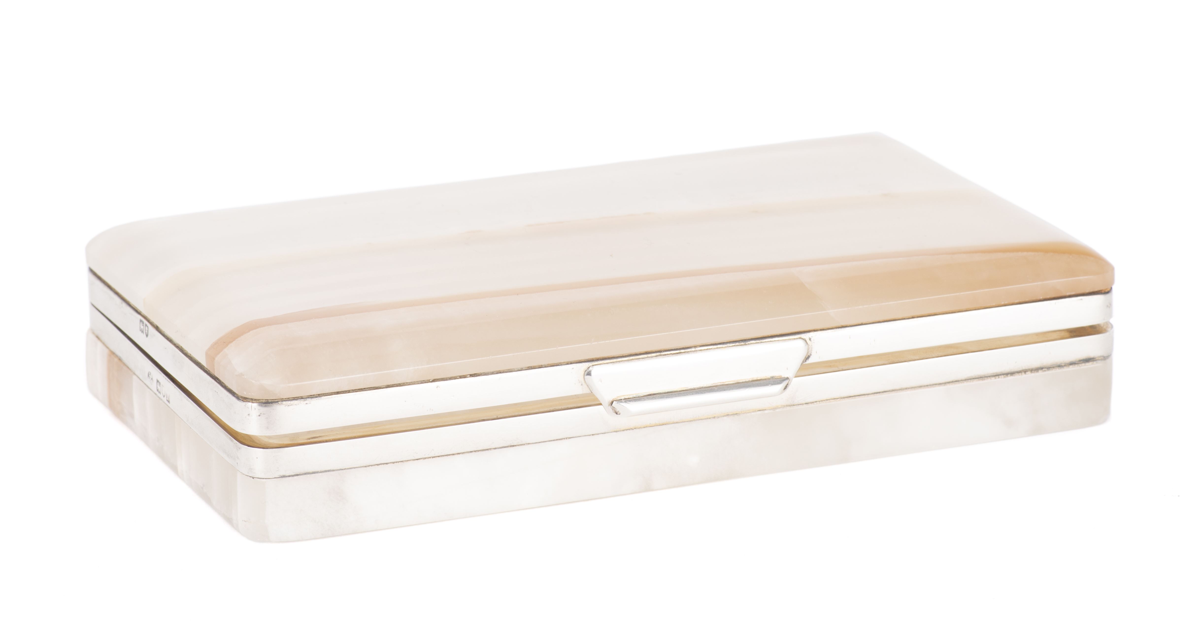 Boîte porte-plume en agate et argent sterling