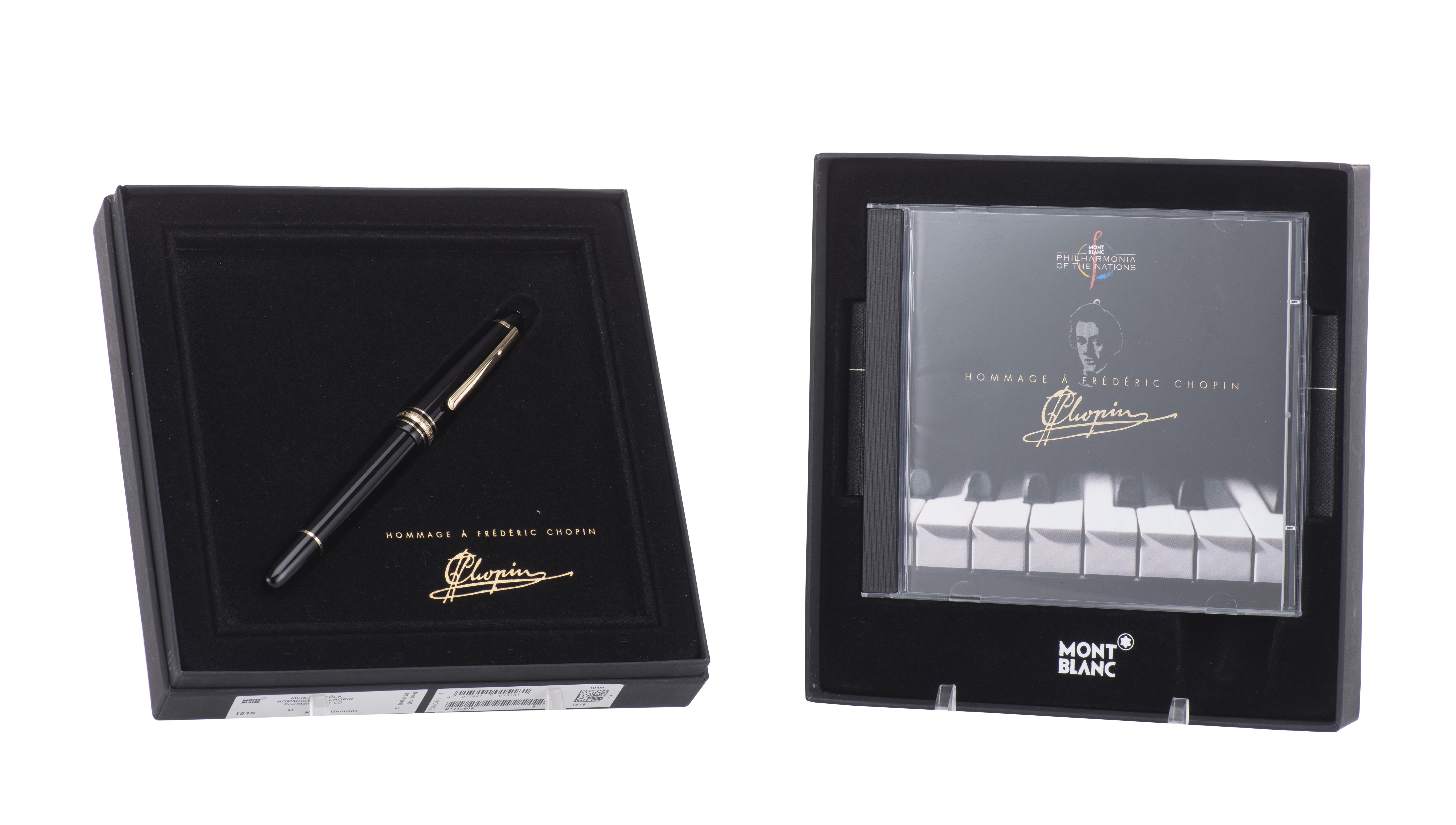 Coffret Montblanc : "Hommage à Frédéric Chopin" contenant un stylo-plume Montblanc Meisterstück PIX, avec bec M en or .585 4810 et un CD.