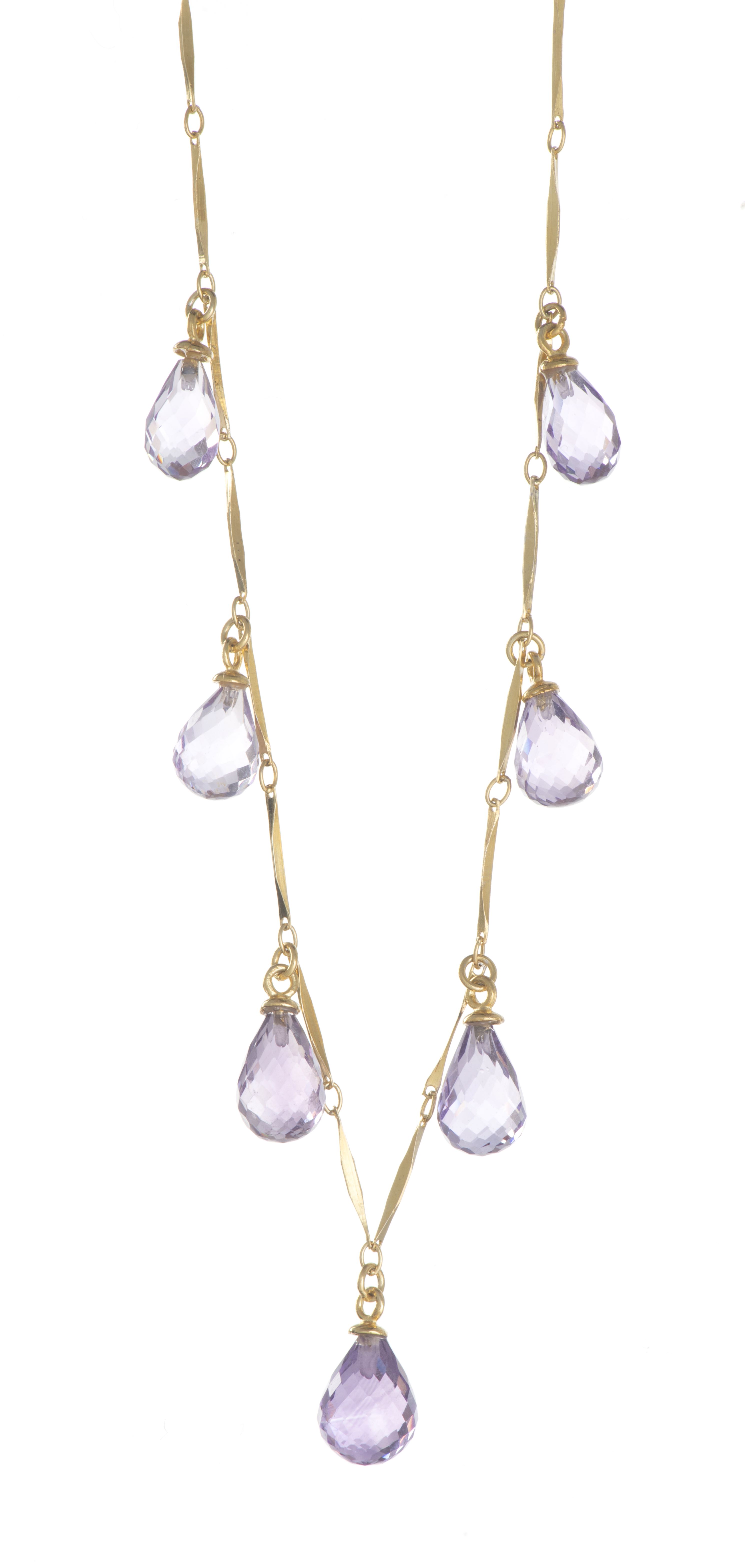 *Collier tour de cou en argent vermeil .925 et 7 gouttes d'améthyste en pendant pour un total de 20 cts.