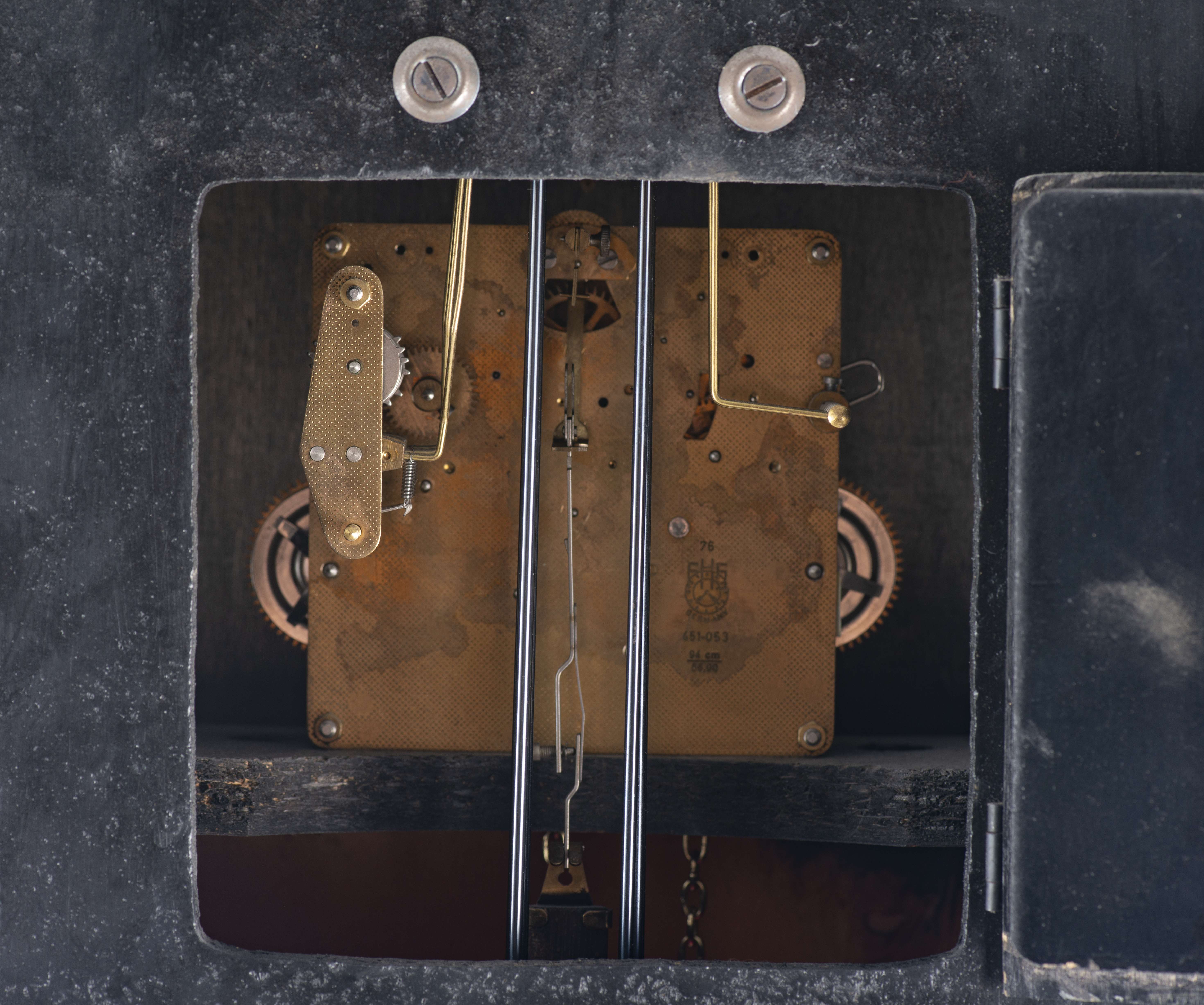 Pendule de parquet de style boule, cadran inscrit "Tempus fugit" mvt FHS allemand du XXe.