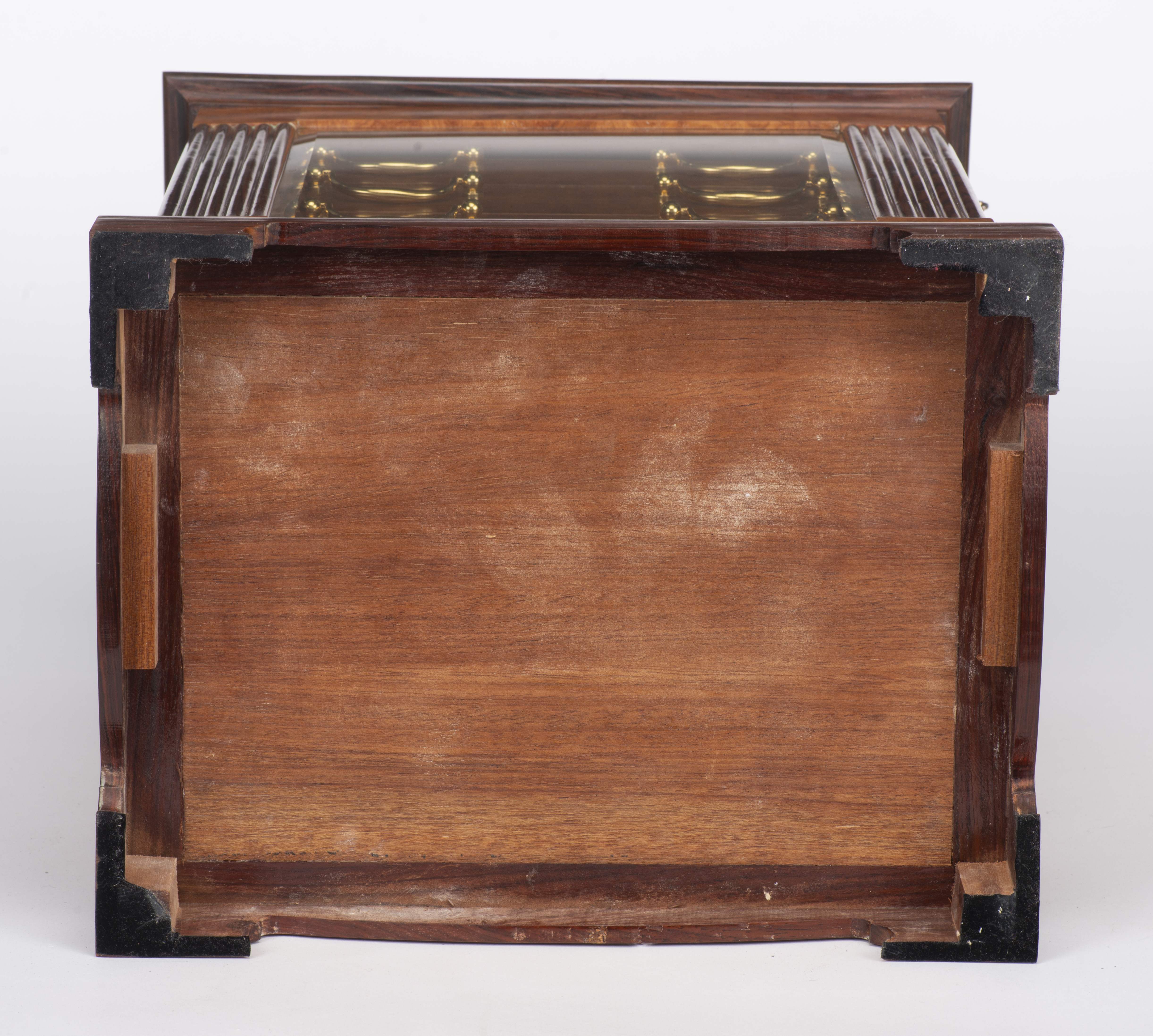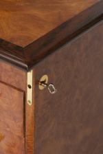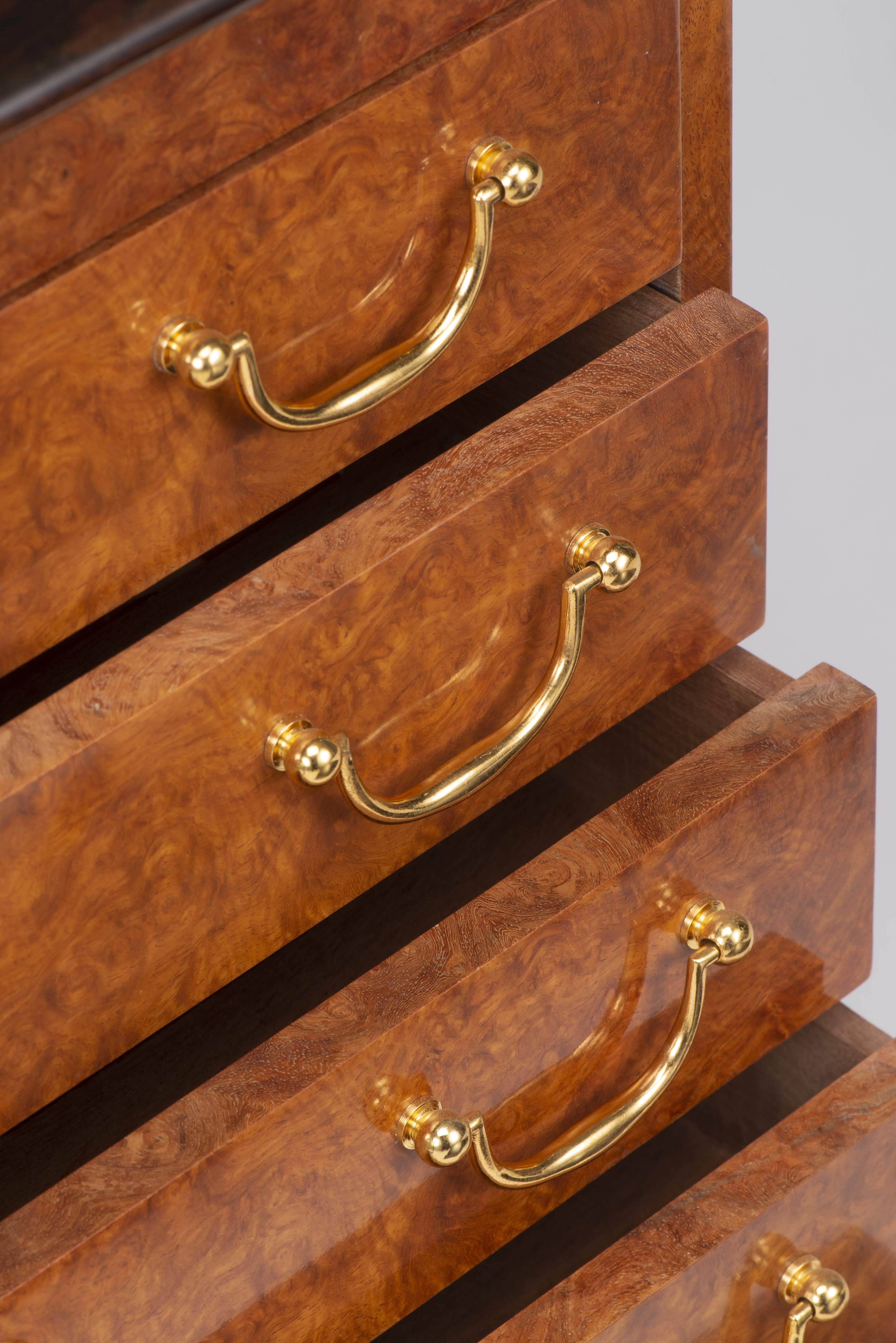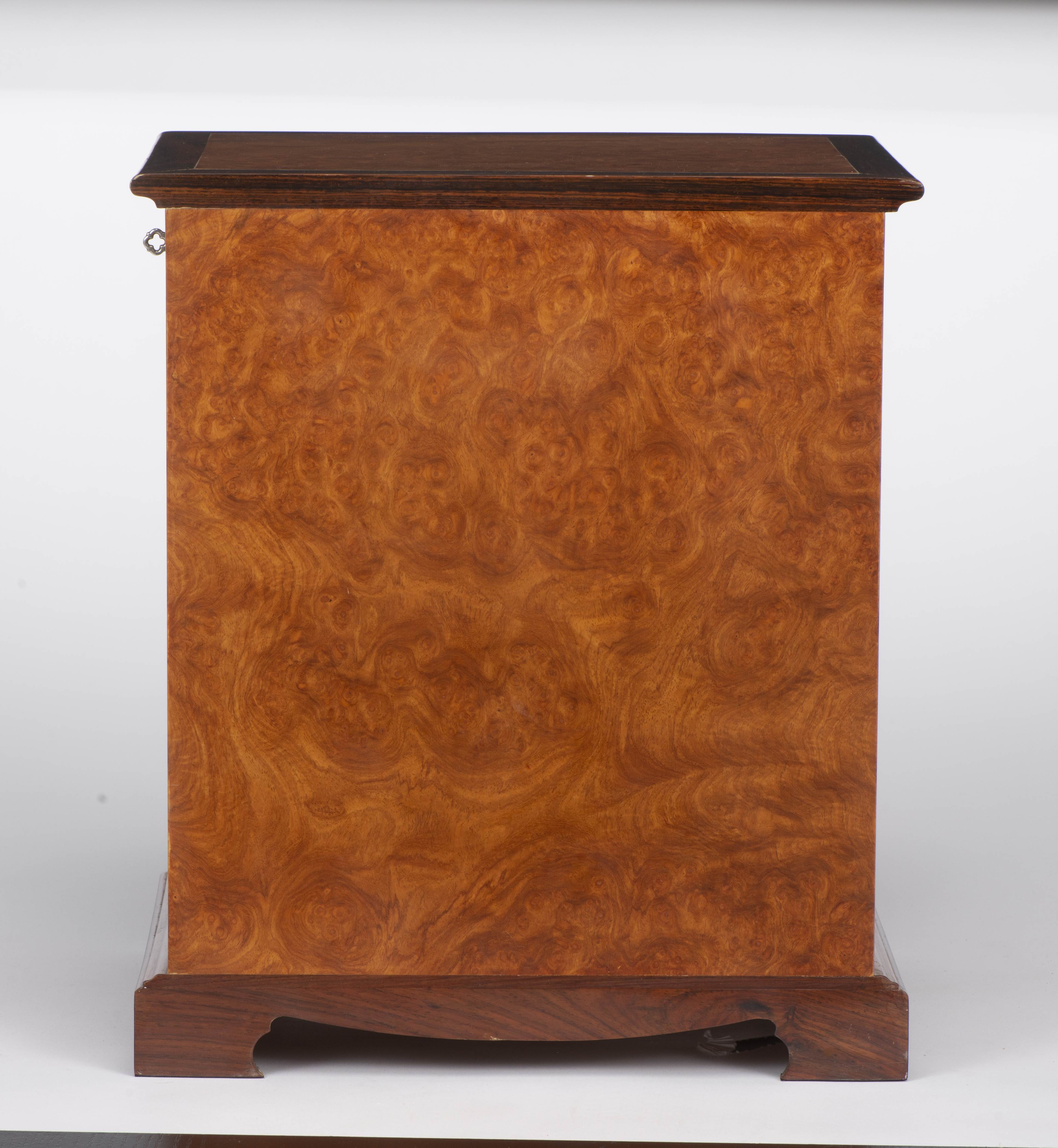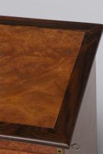 Boîte à accessoires en loupe et palissandre à 4 tiroirs.