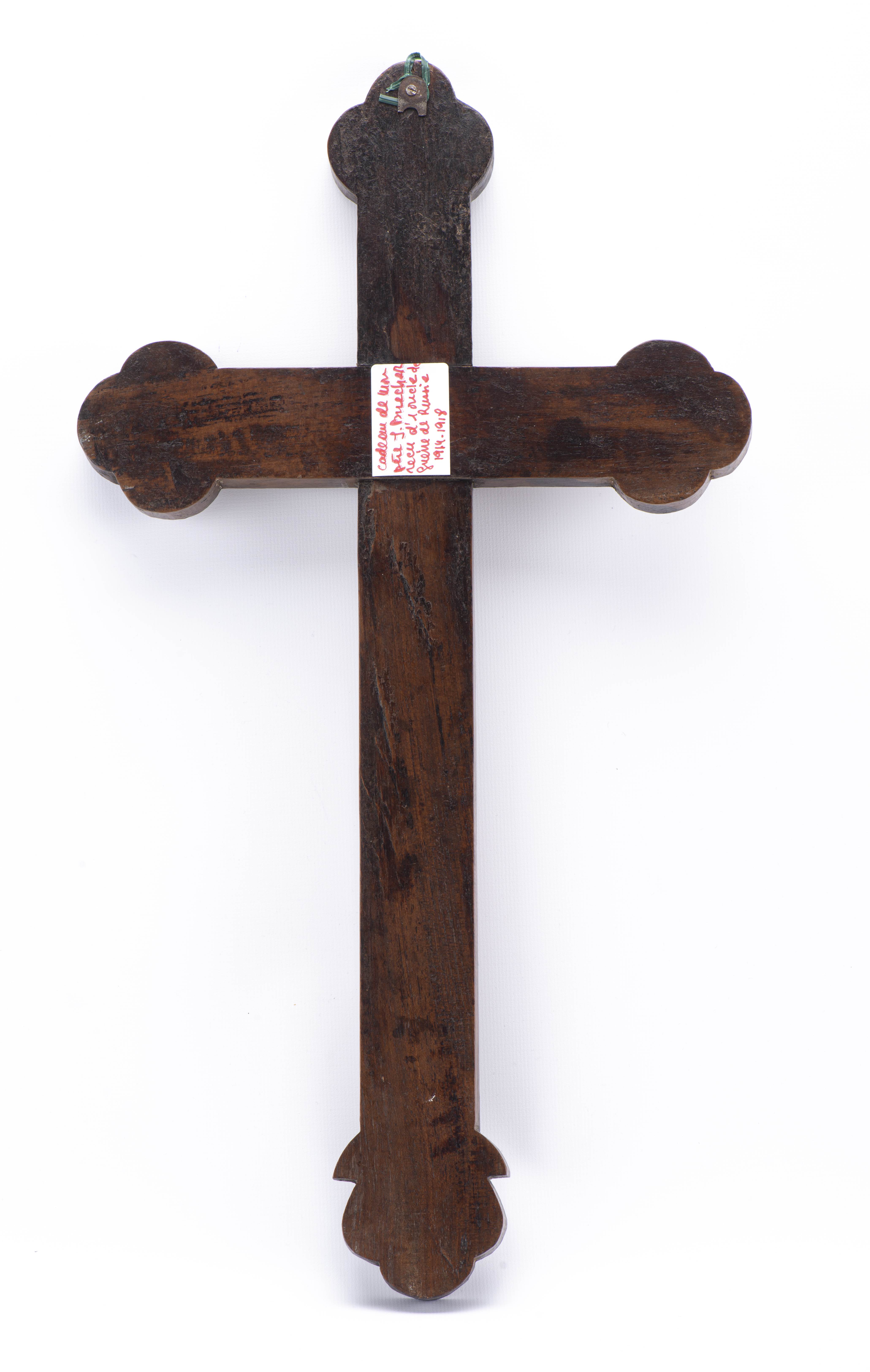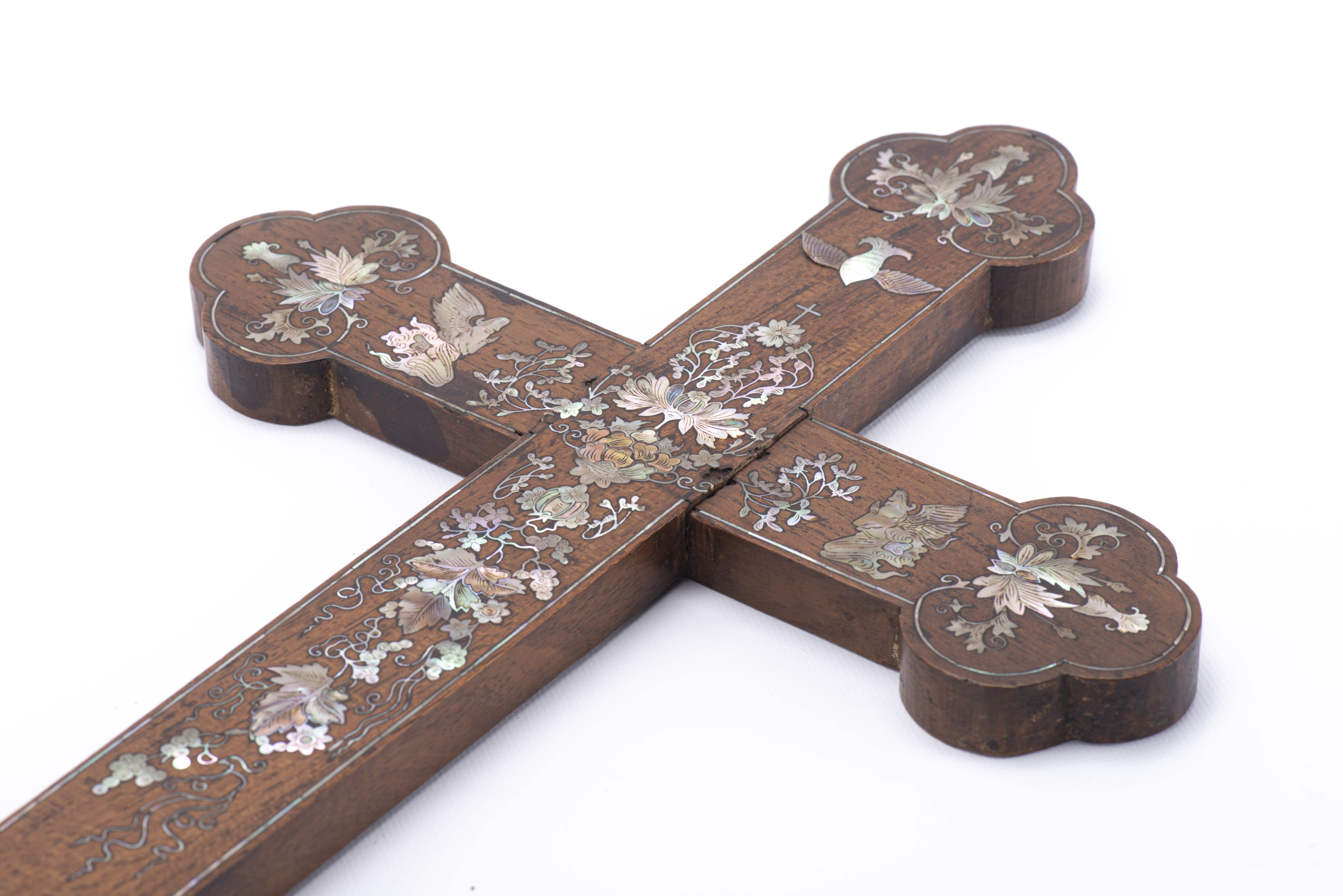 Croix apostolique en bois de rose avec incrustations de nacre noire d'Indochine, Tonkin, Nam Dinh, XIXe siècle .