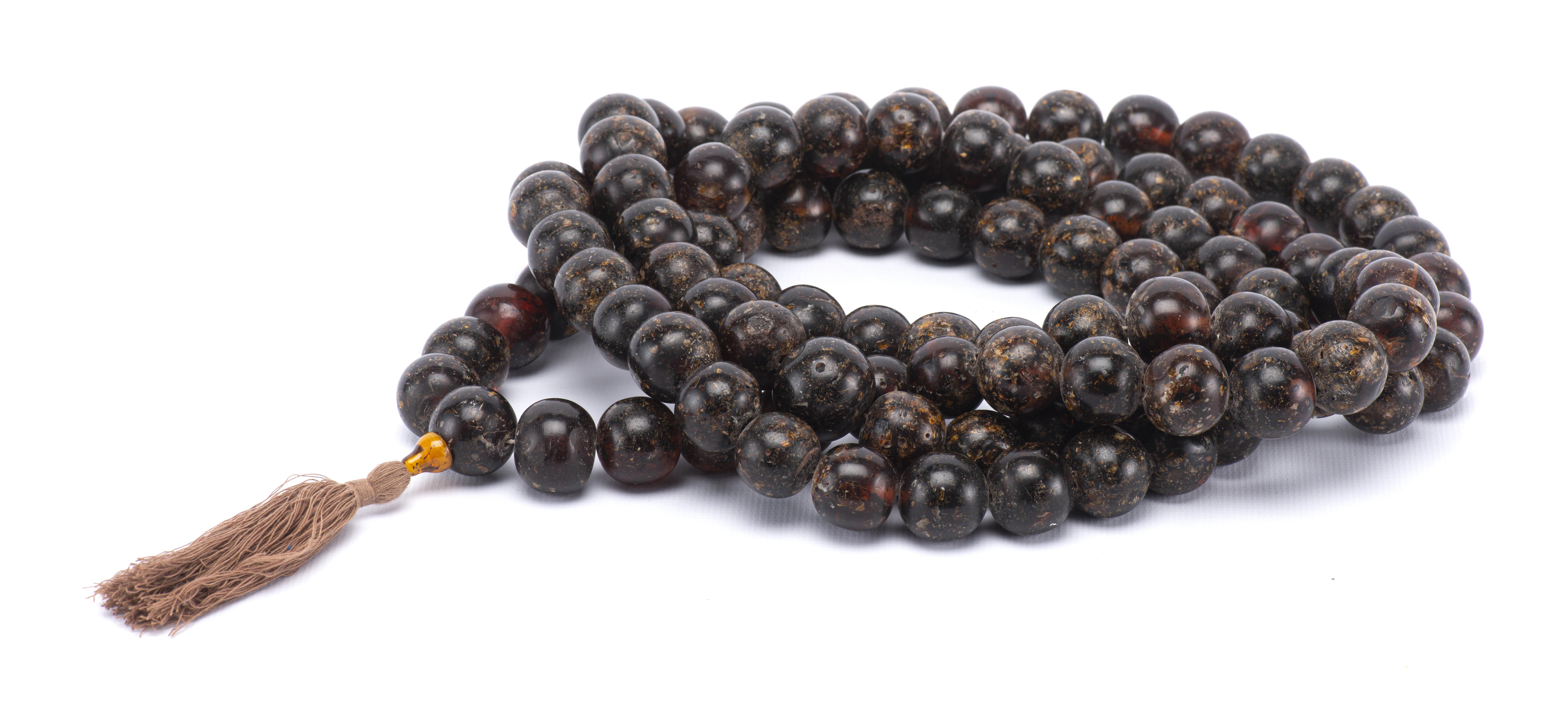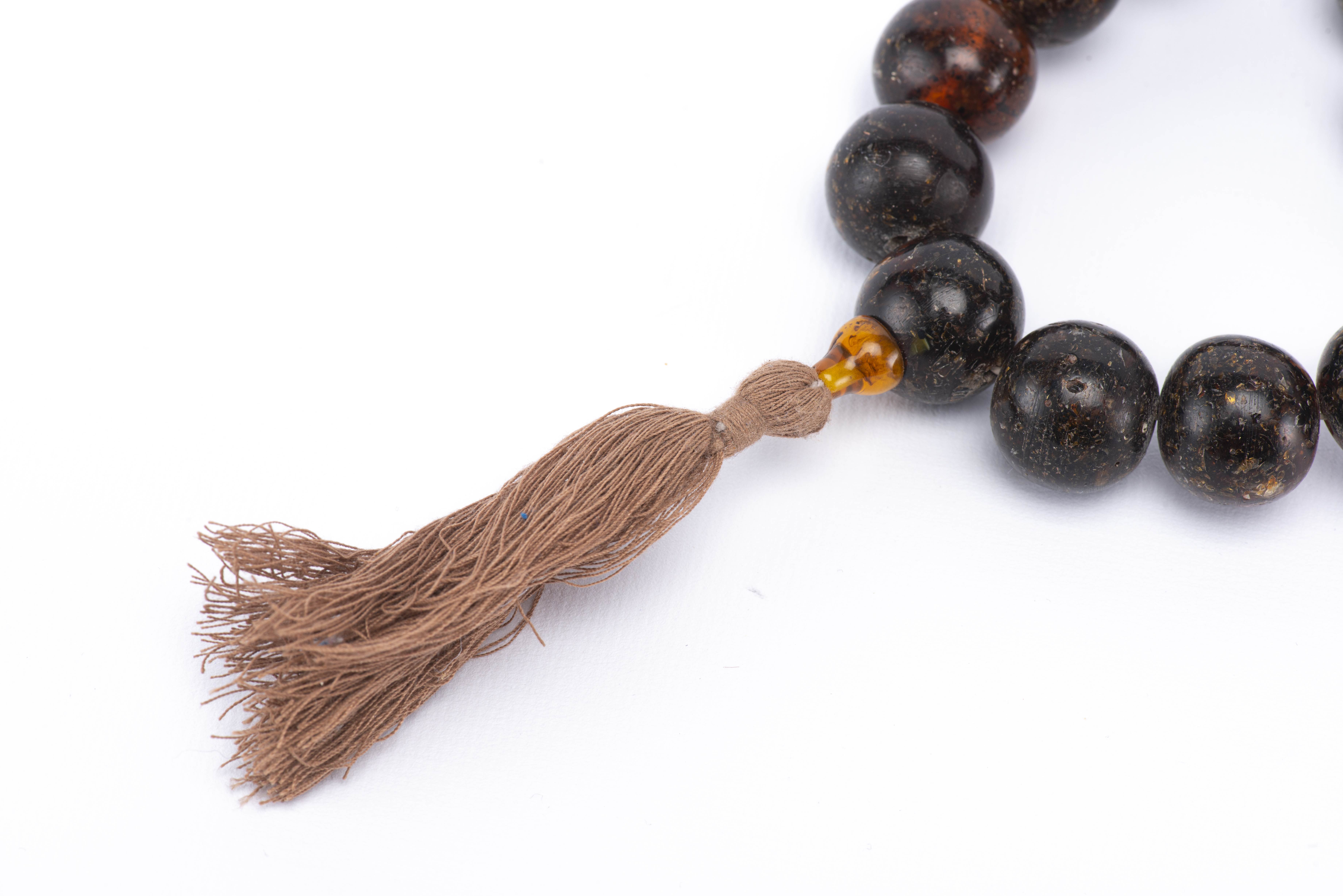 Sautoir bouddhiste de boules d'ambre, Tibet ou Népal