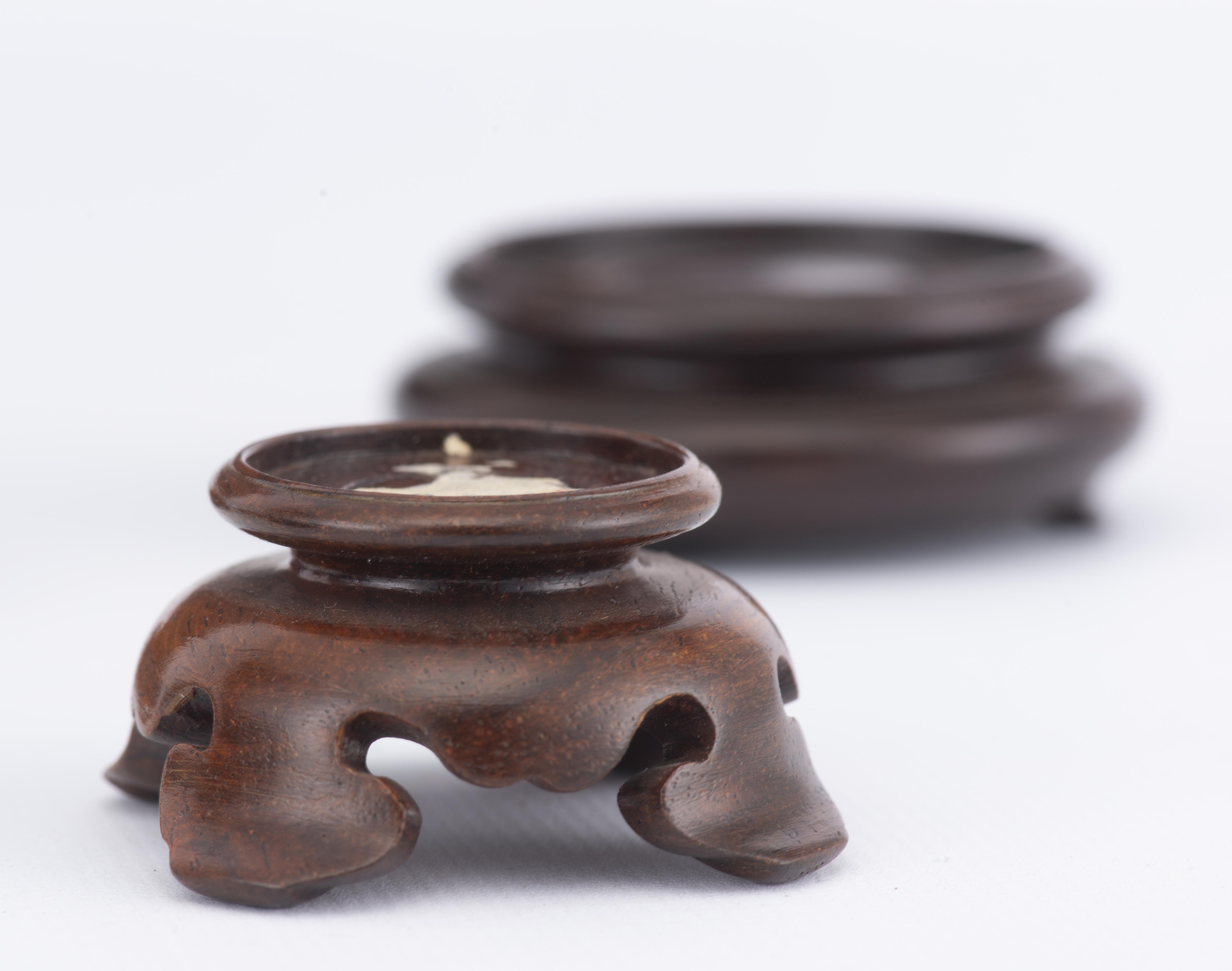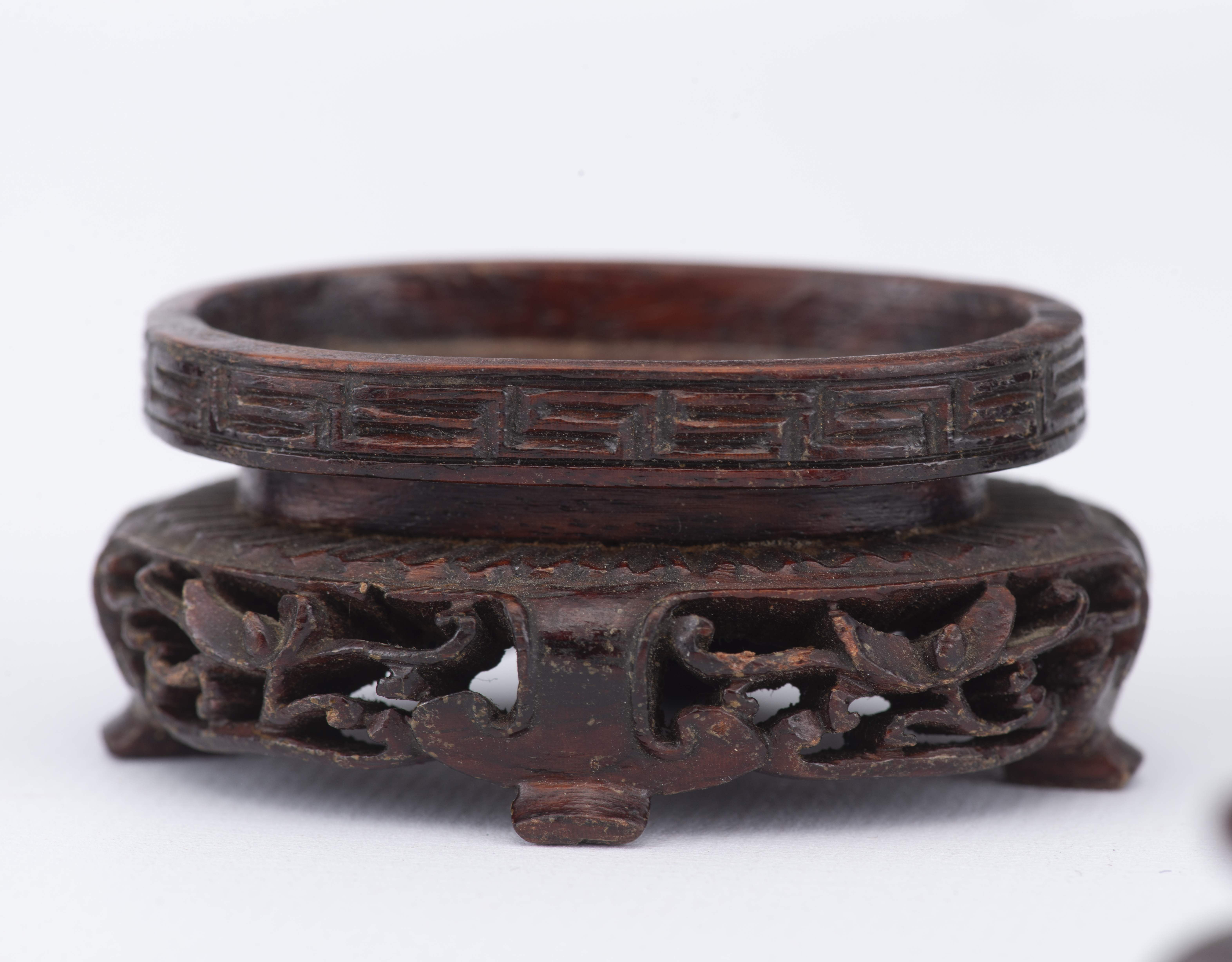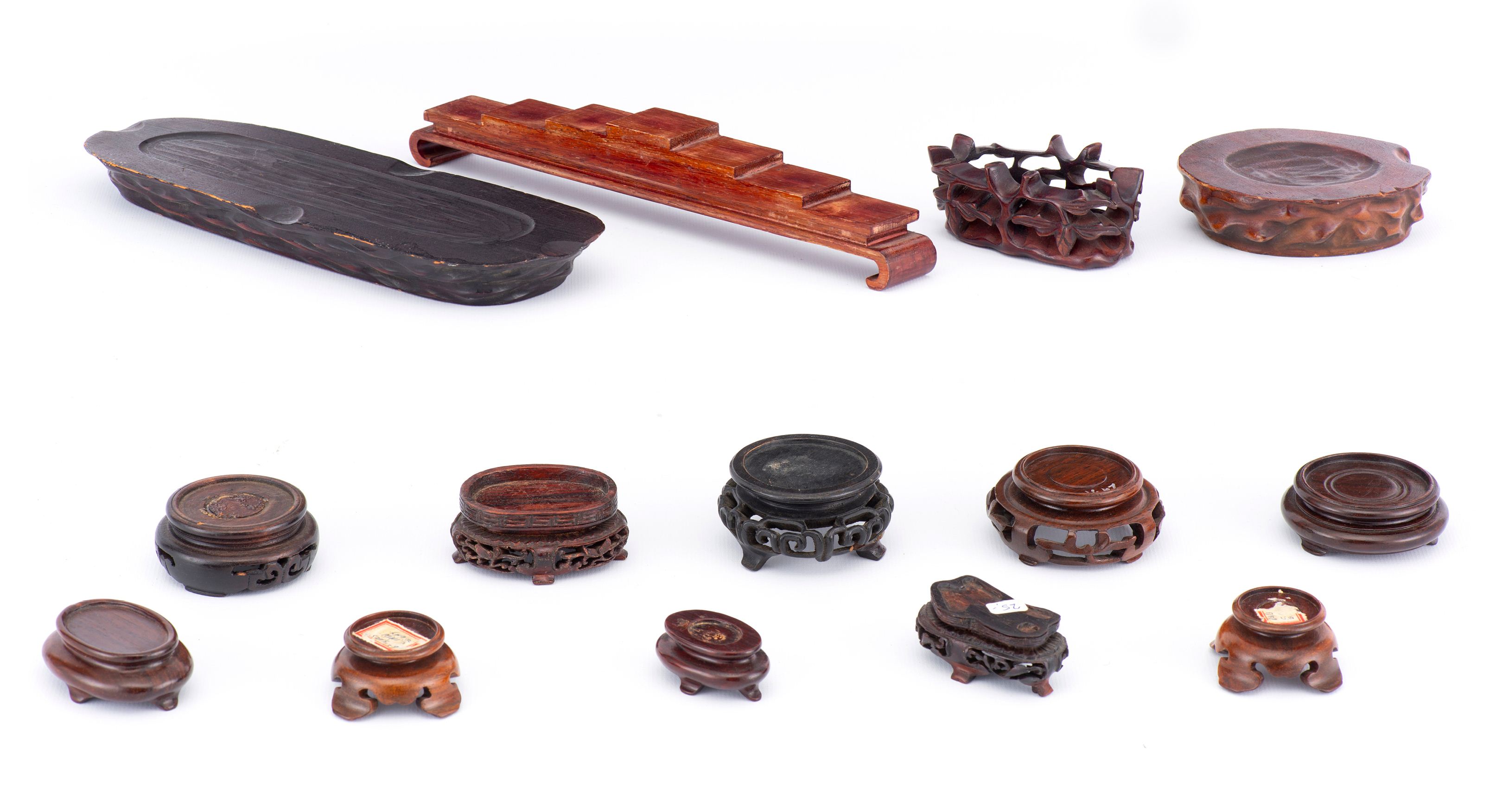 Quatorze socles en bois de Chine de divers diamètres et diverses grandeurs :