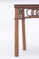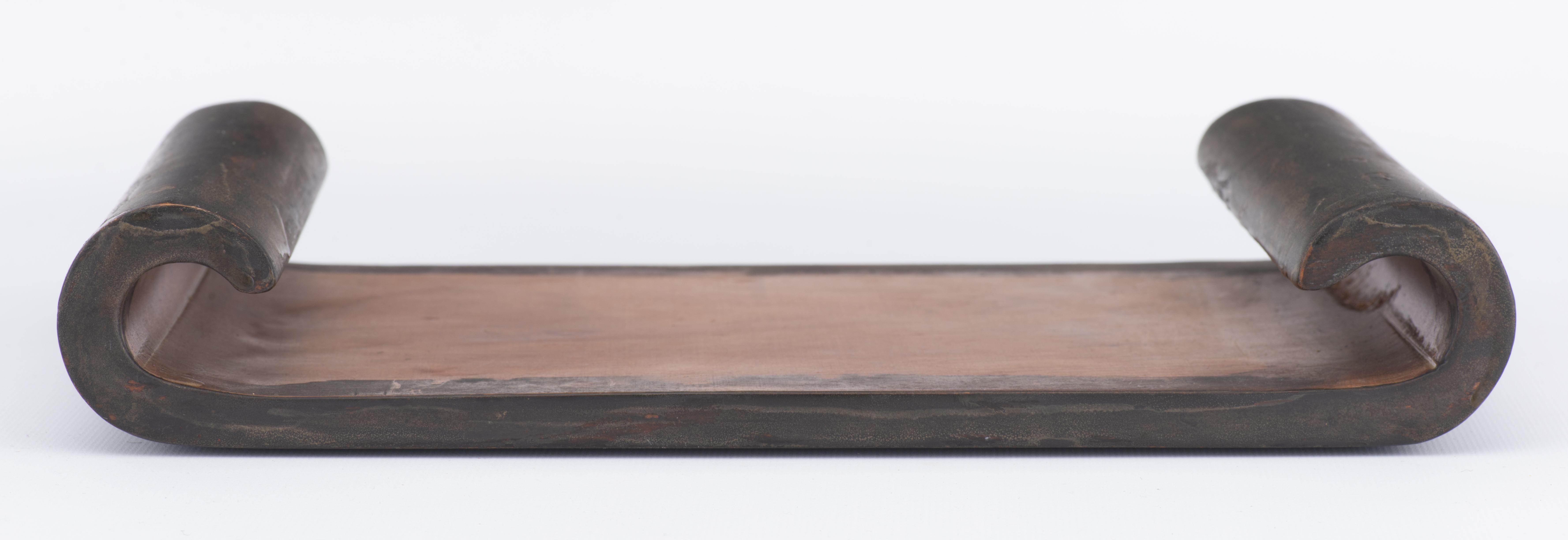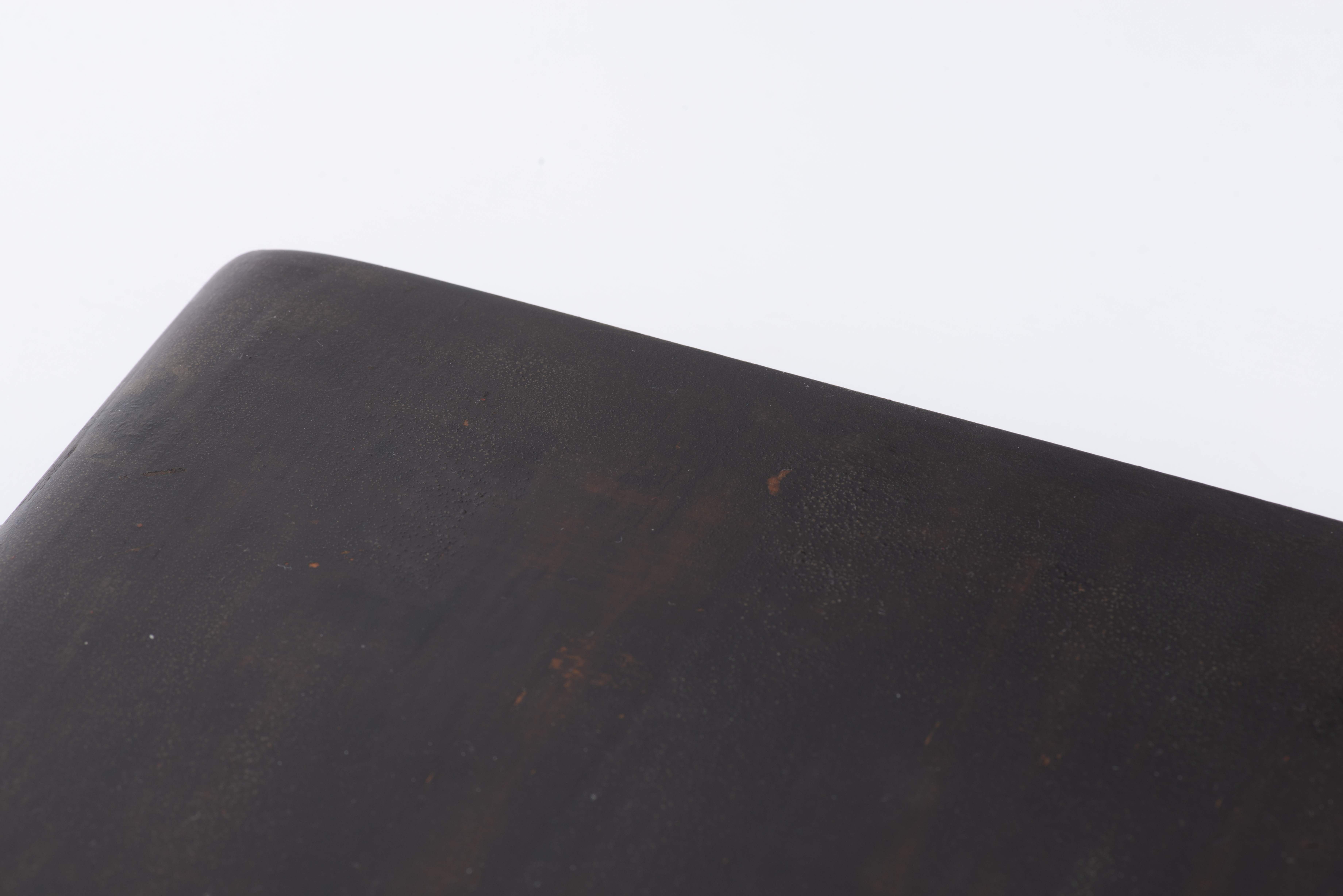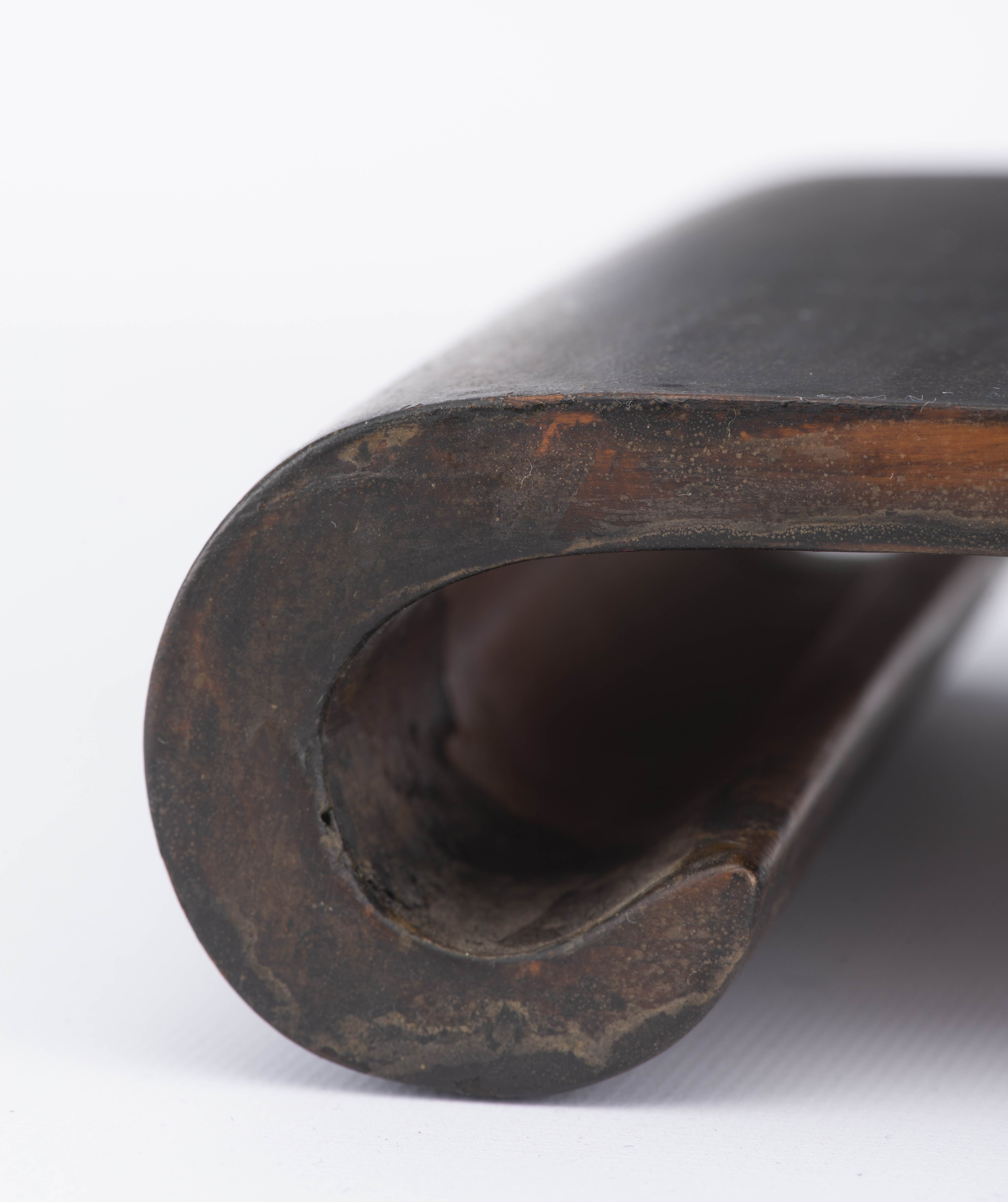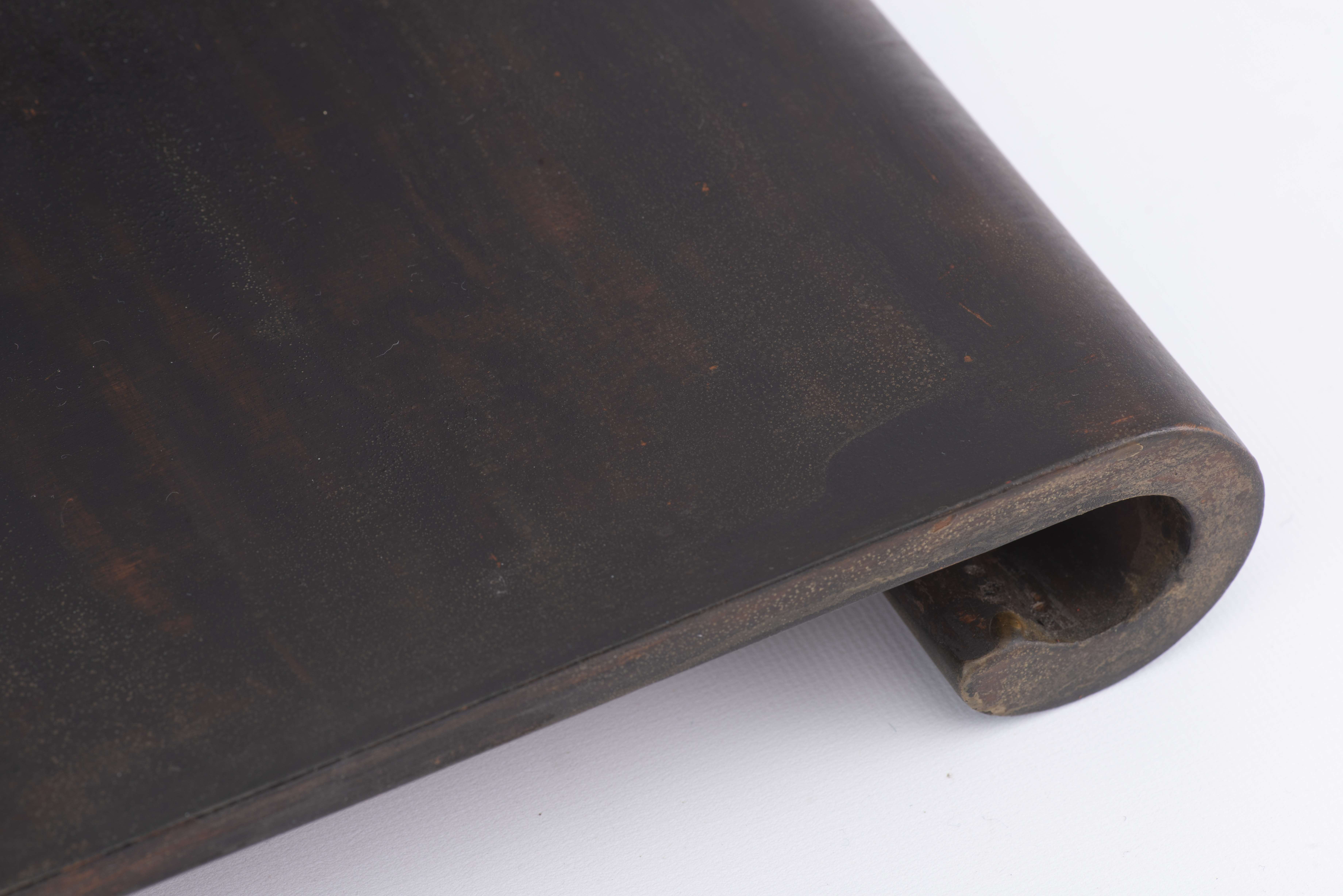 - 1 porte-plat en bois de fer noirci avec incrustations d'ivoire