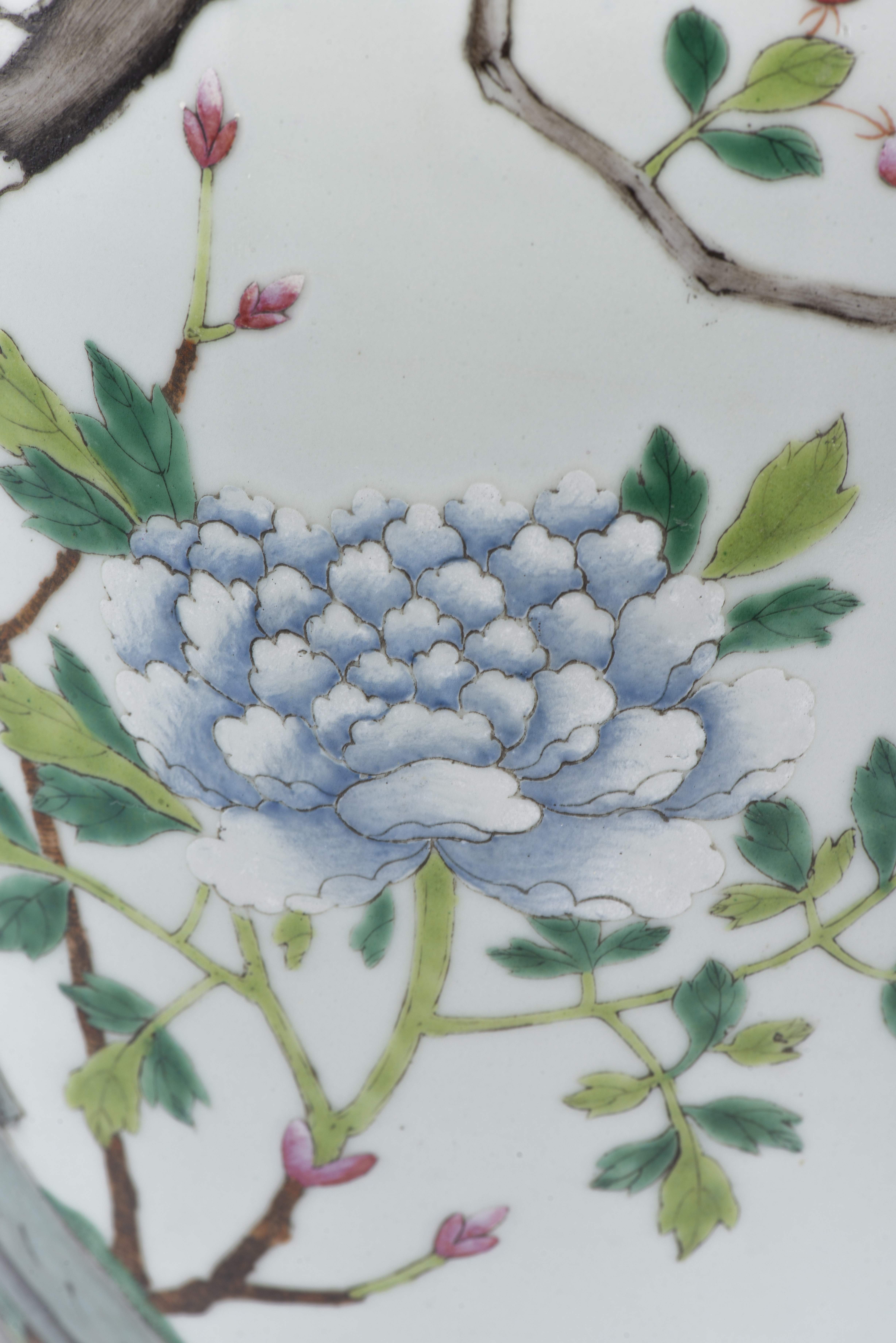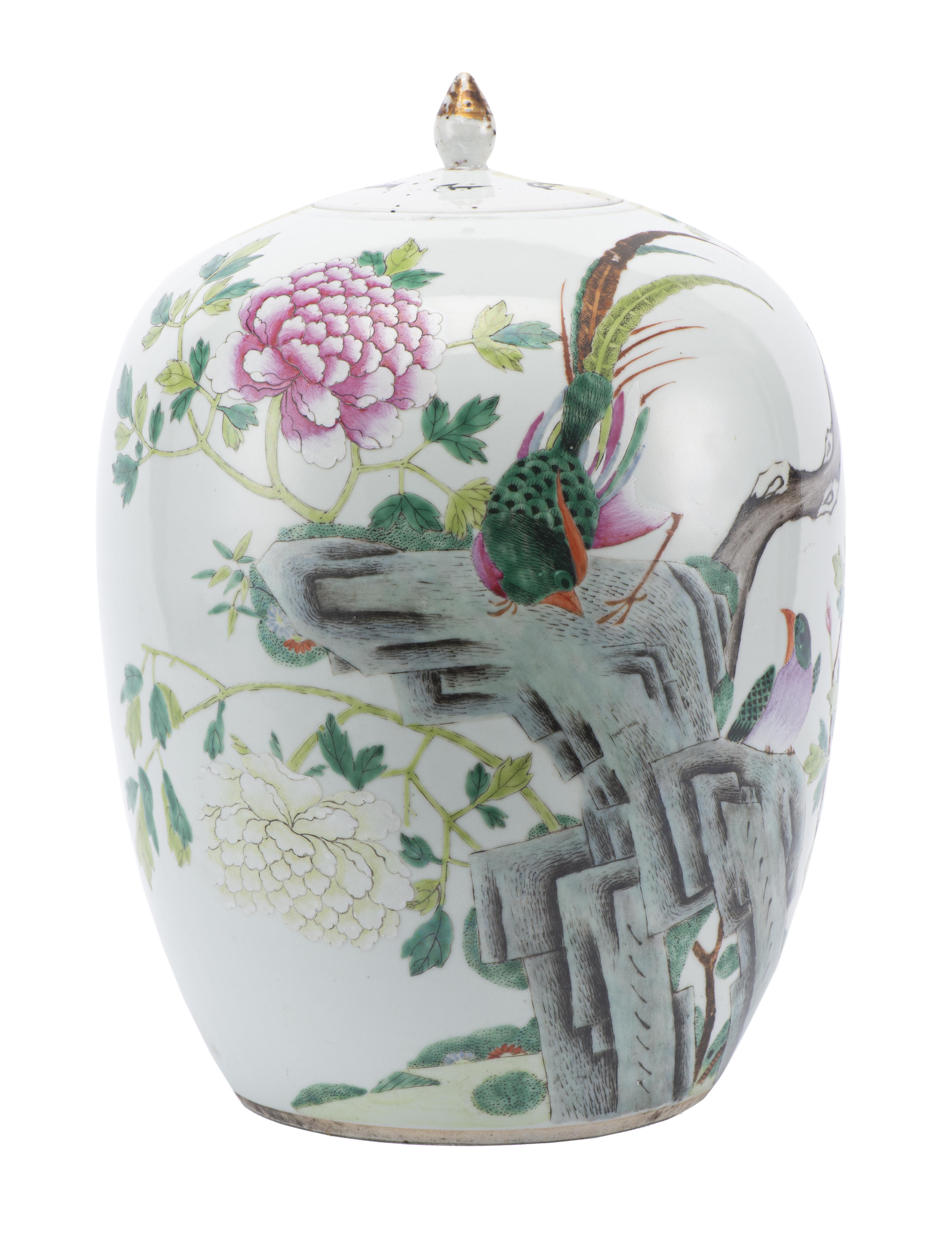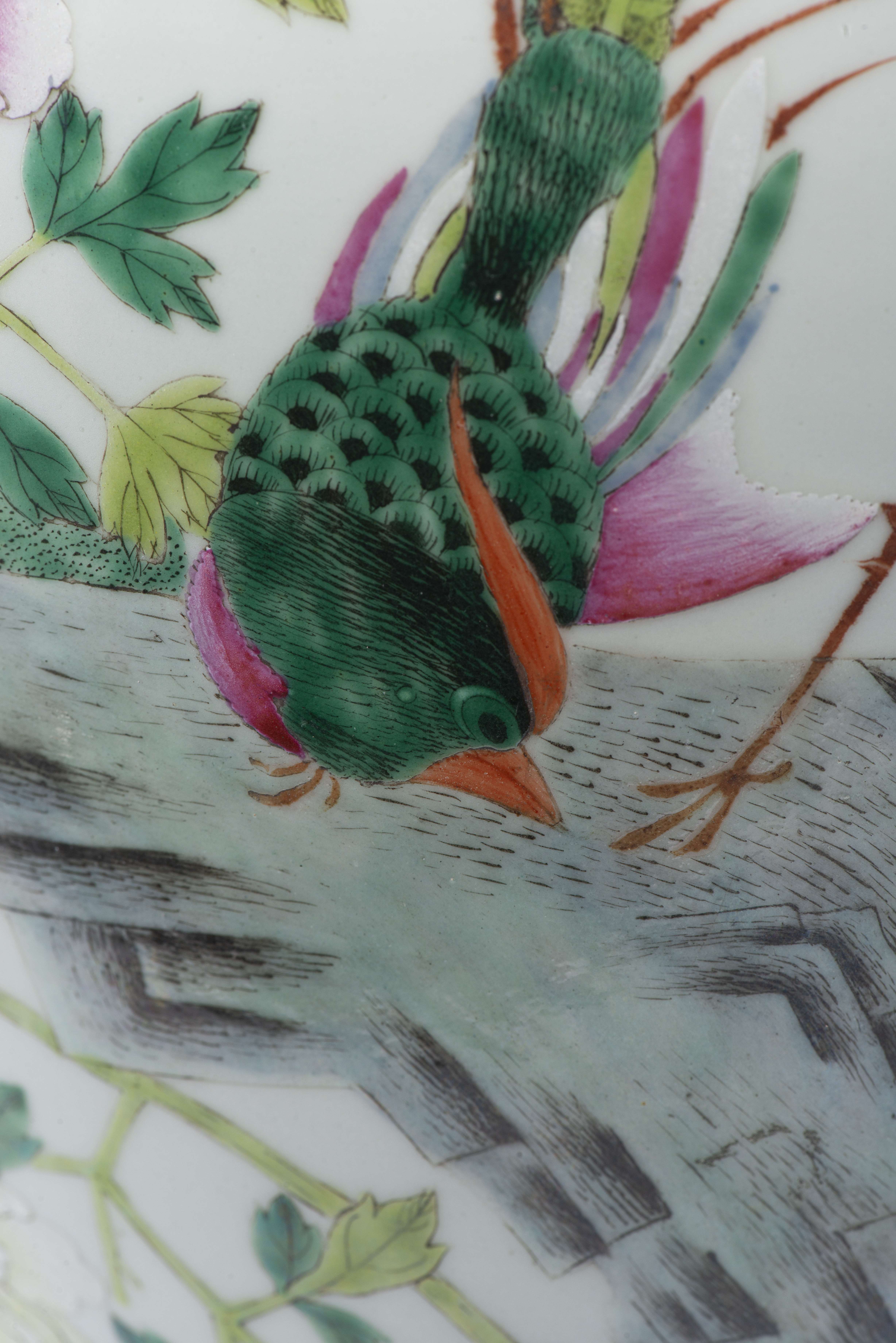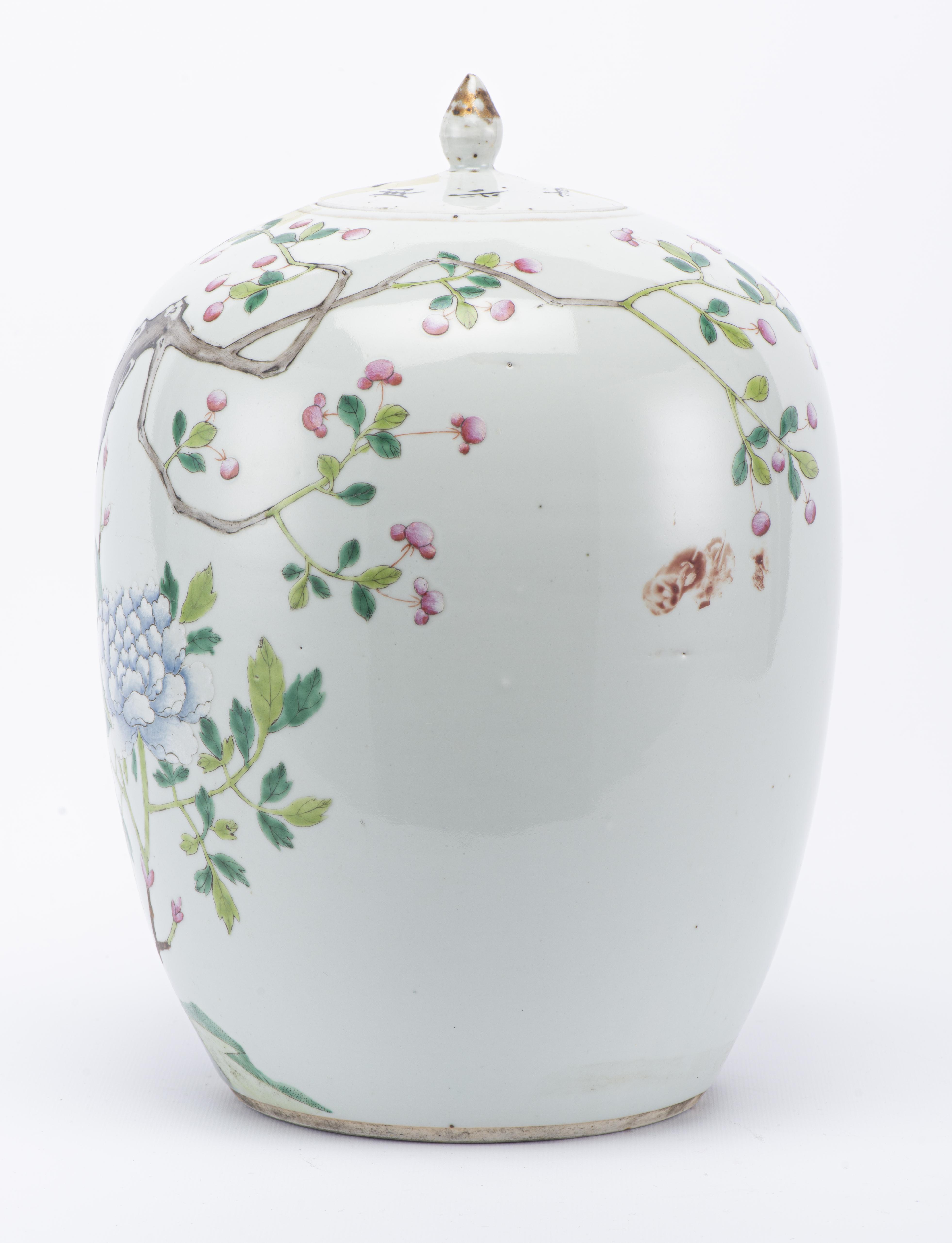 Pot à Gingembre en porcelaine de Chine à décor en famille rose de fleurs et oiseaux, fin des Qing.