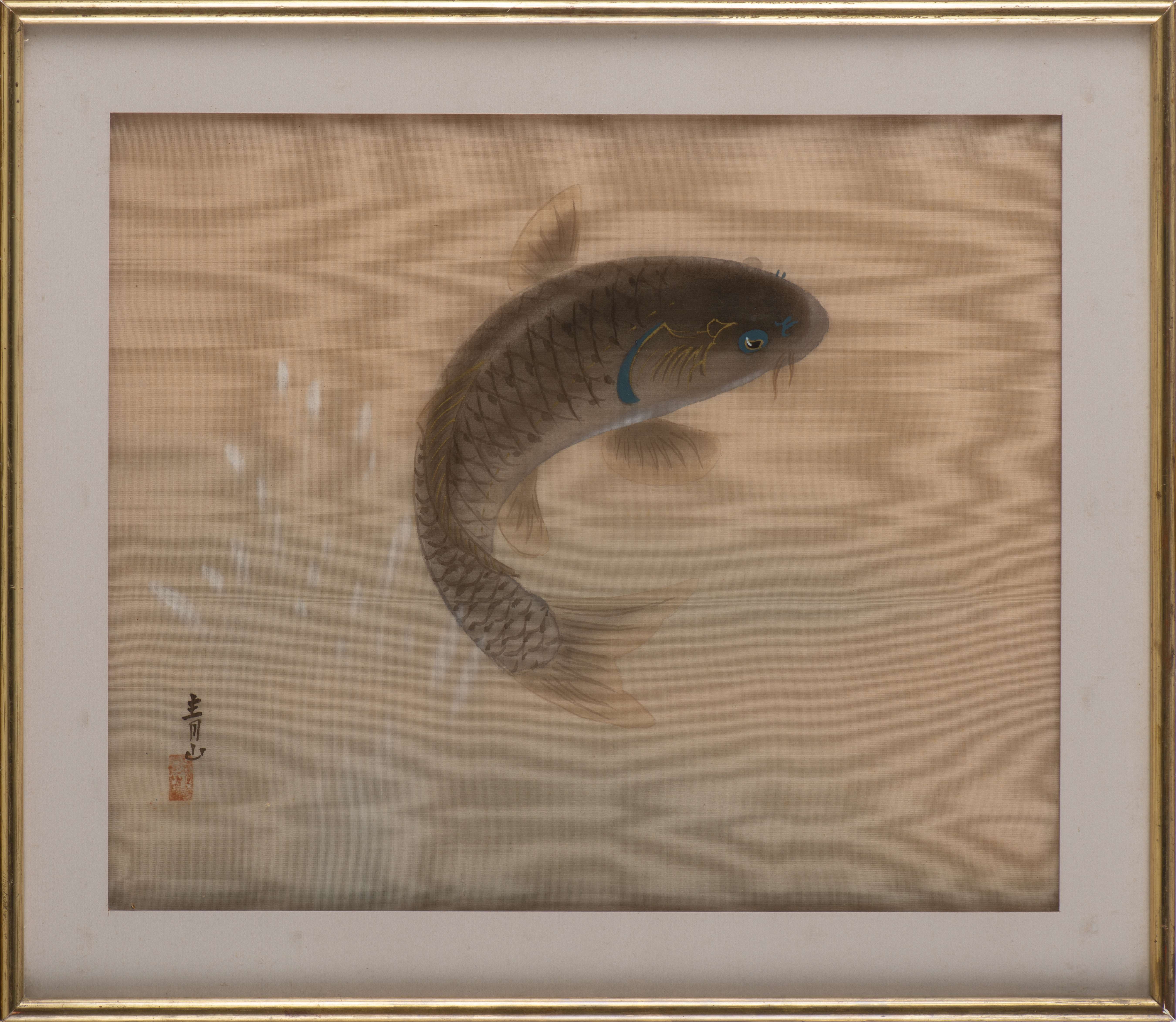 Japon, "Carpe", peinture sur soie, signée en bas à gauche.