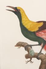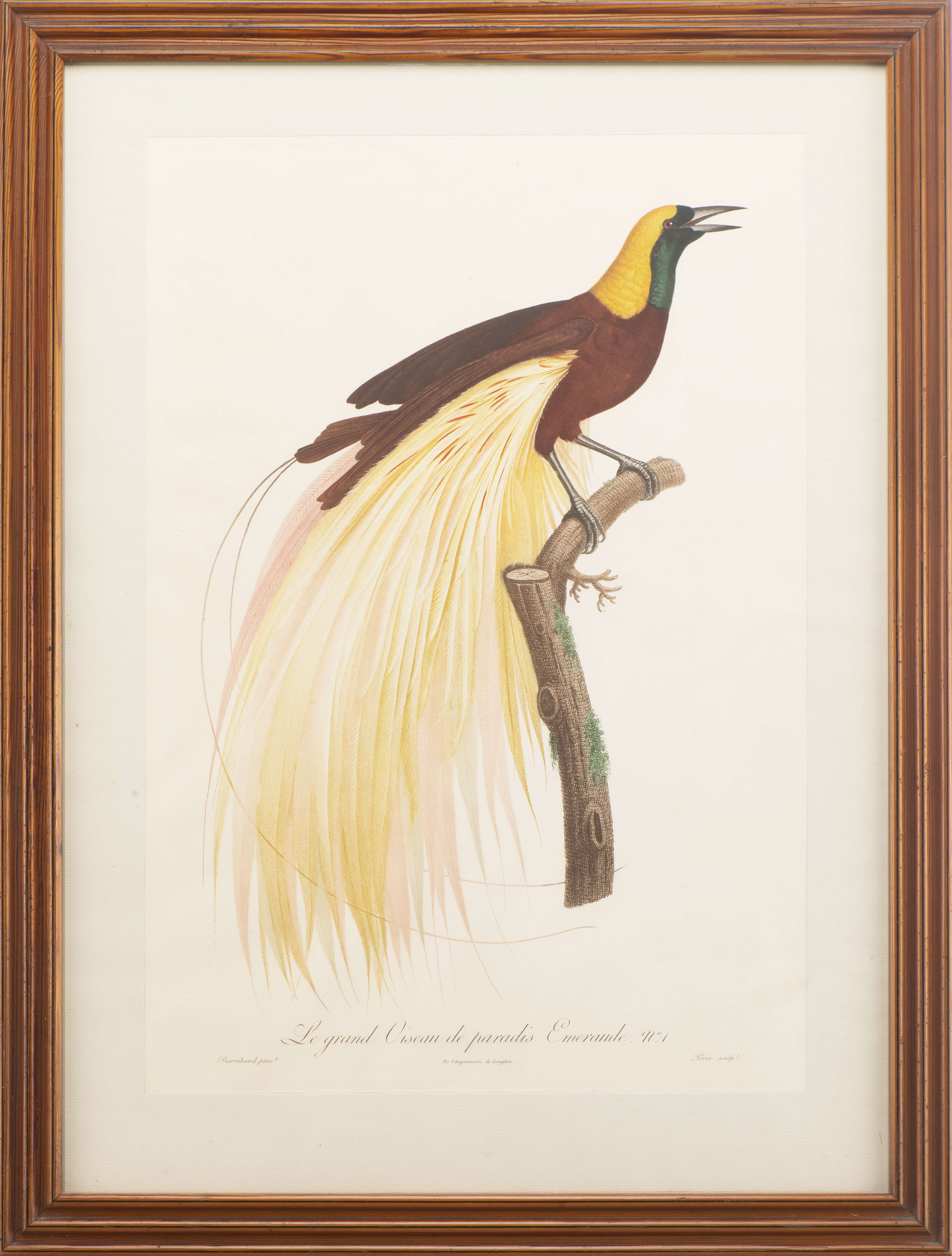 Jacques BARRABAND (1768-1809) "Le grand oiseau de paradis Emeraude n°1" & "Le petit oiseau de paradis Emeraude n°4", gravures en couleurs.