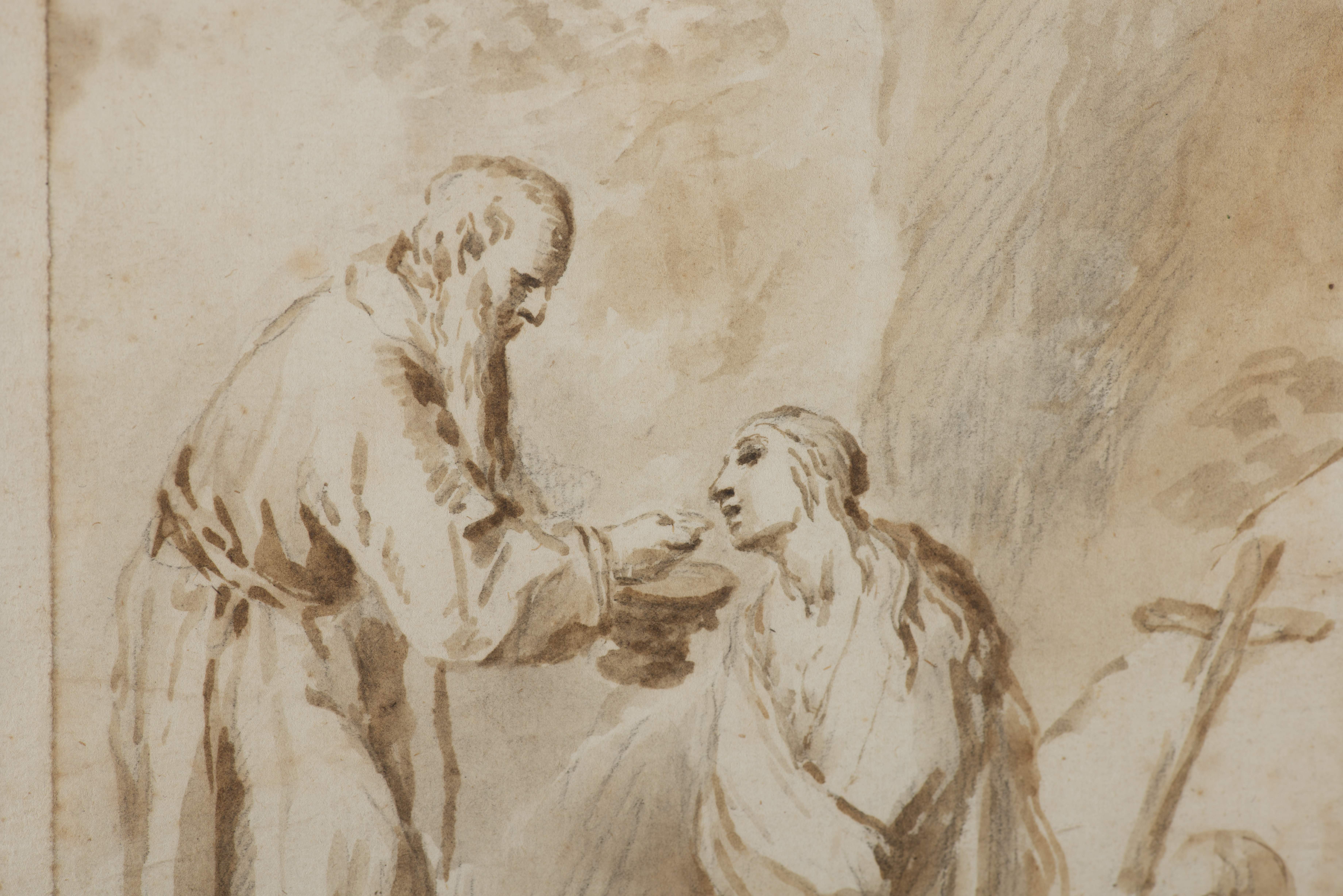 José Camarón BORONAT (1731-1803), d'après, "Le Bon Samaritain", plume, lavis brun et fusain, signé en bas à droite : "M. Camaron".