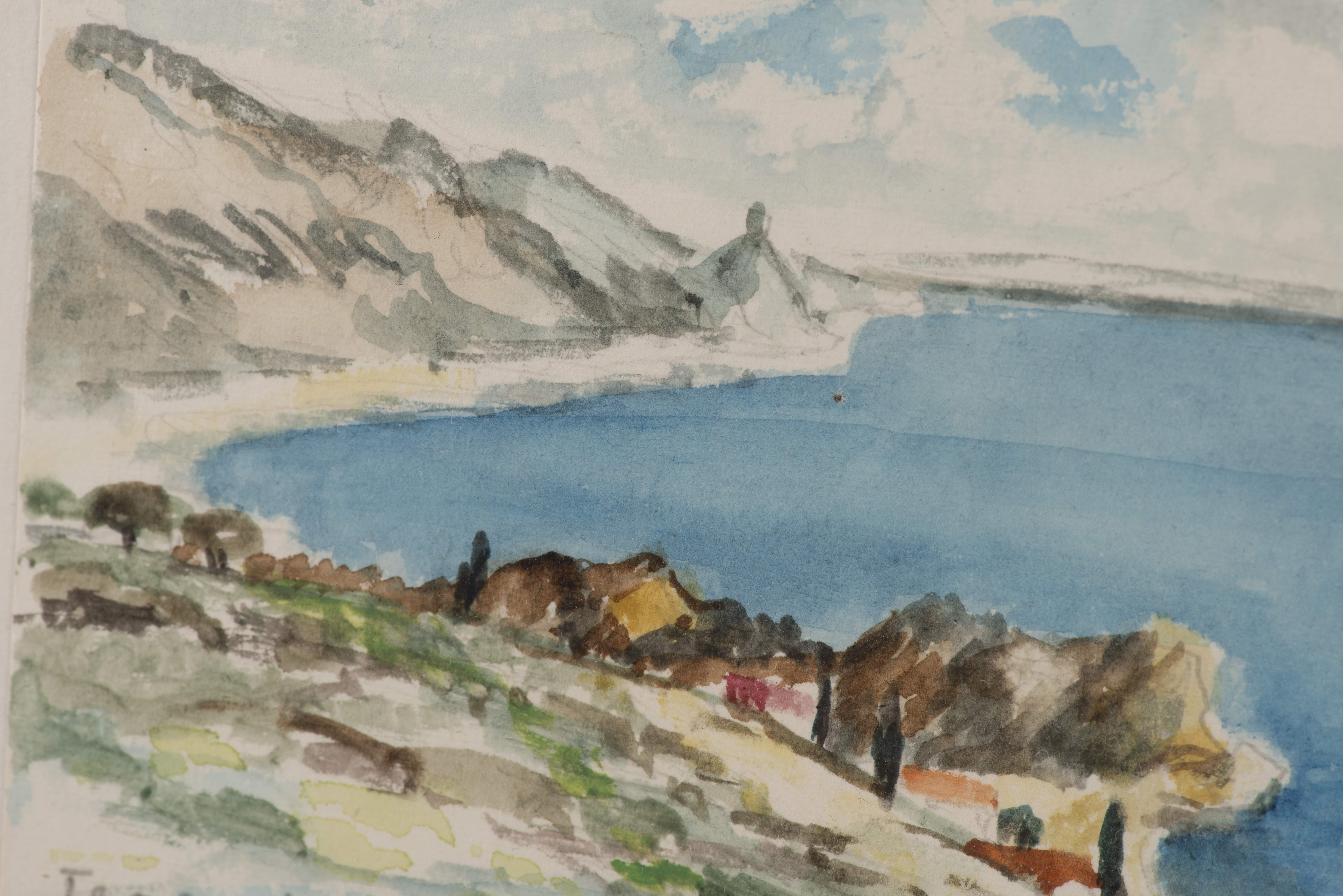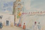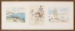 - quatre dessins faits au Maroc : "Baie de St. Taormina", "Course en voiture", "Marrakech 1951, La Médina", "Le Port" aquarelle et crayon de couleur sur papier, 2x signé en bas à droite 1x signé en bas à gauche et 1x non signé.