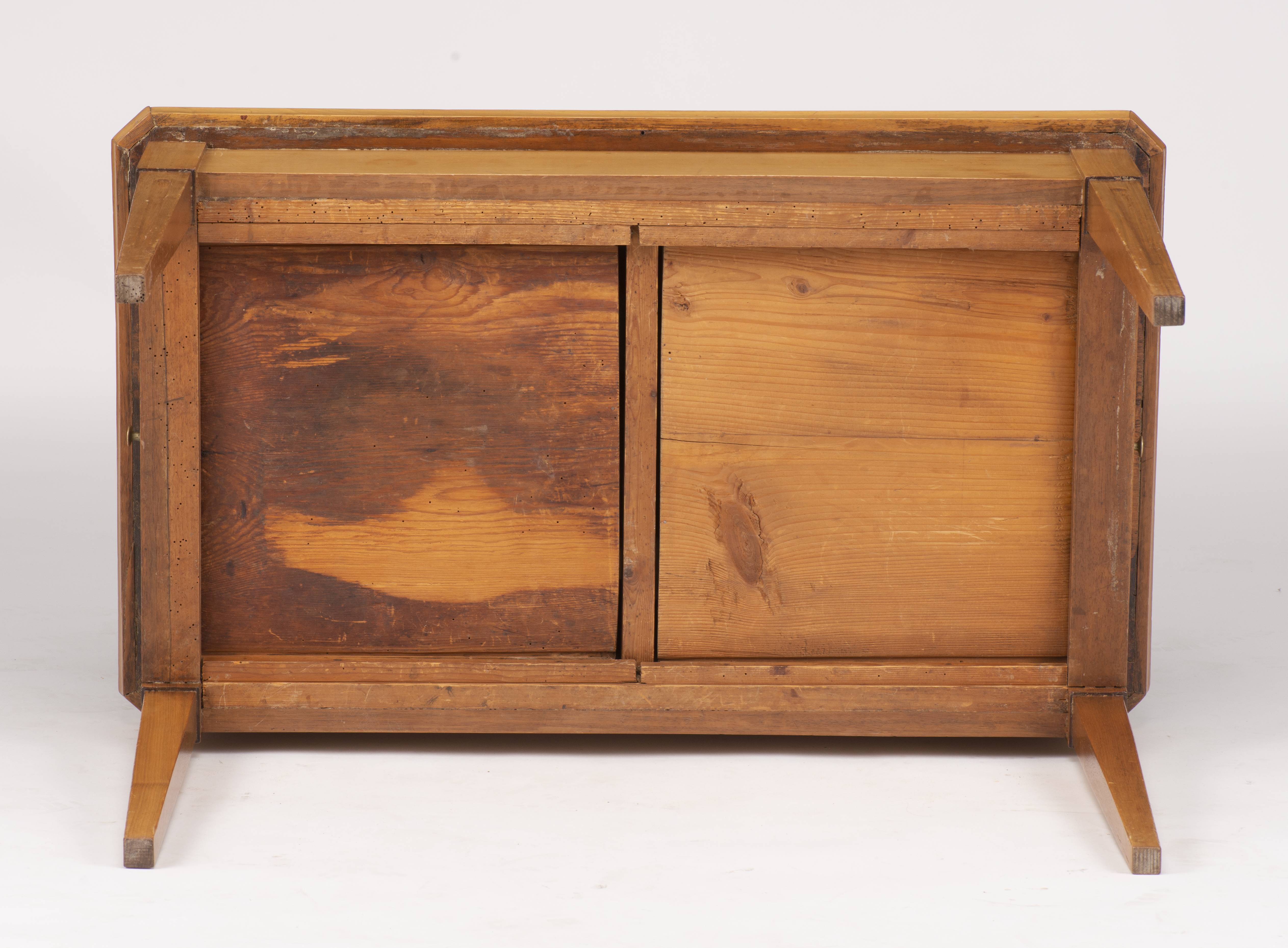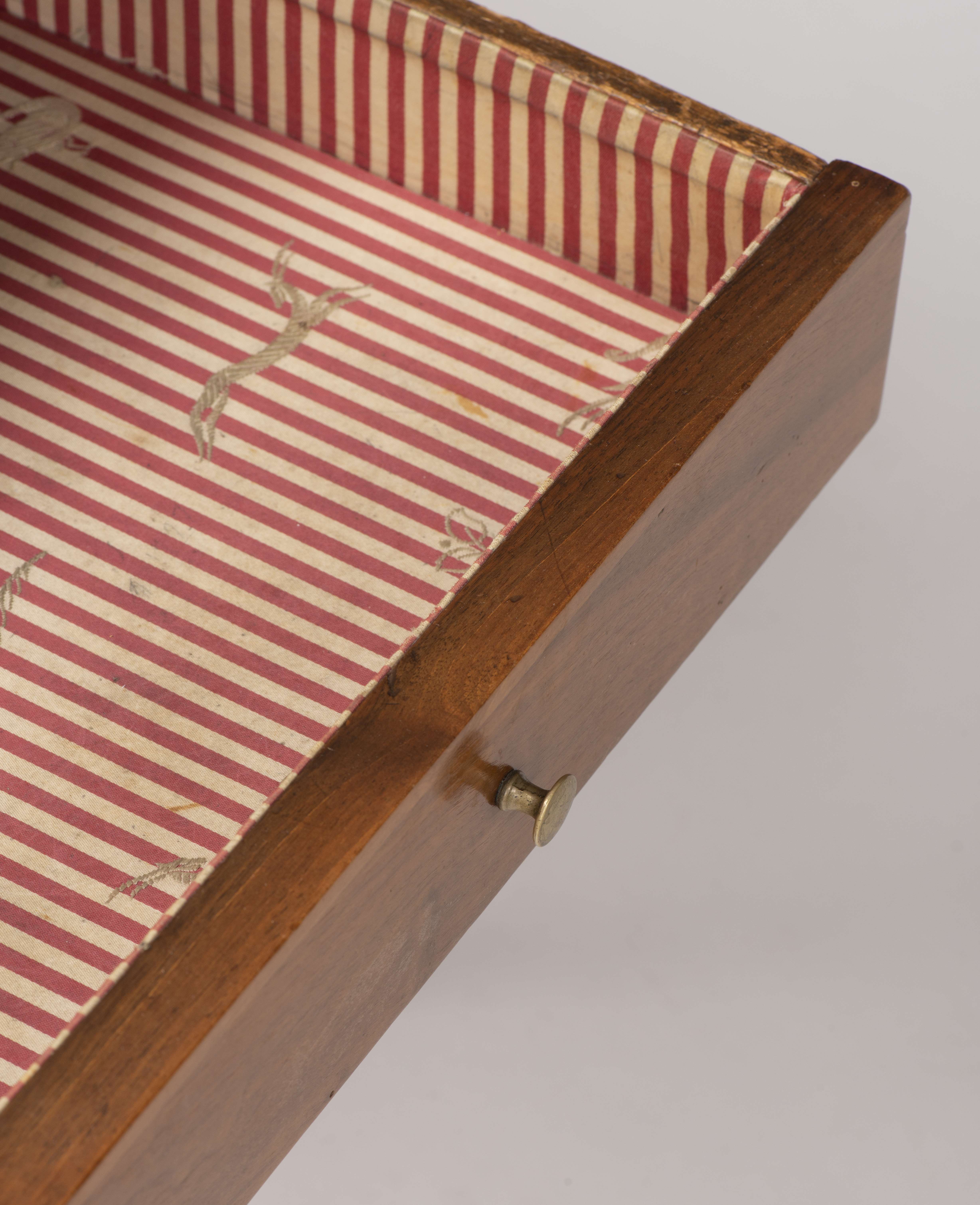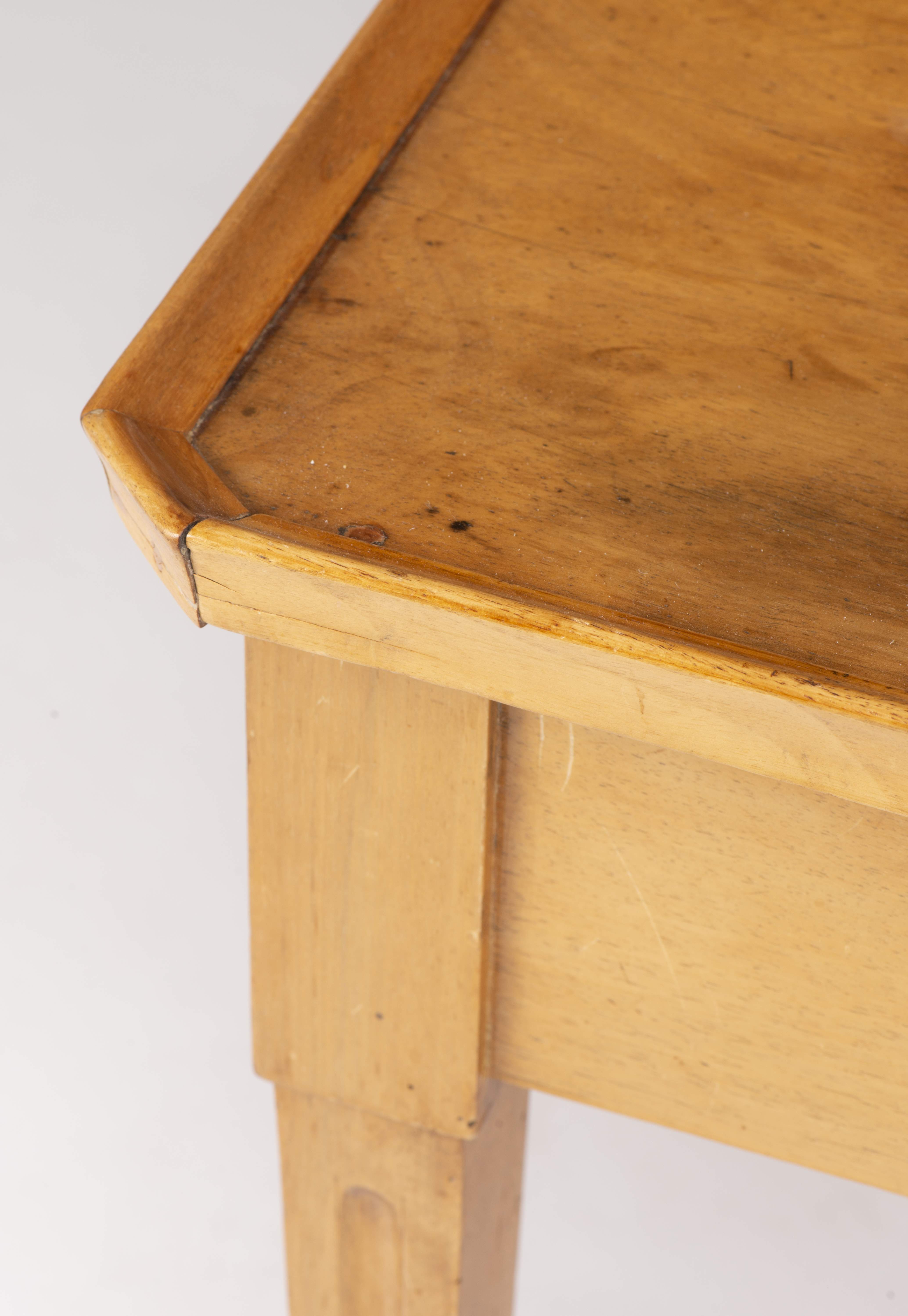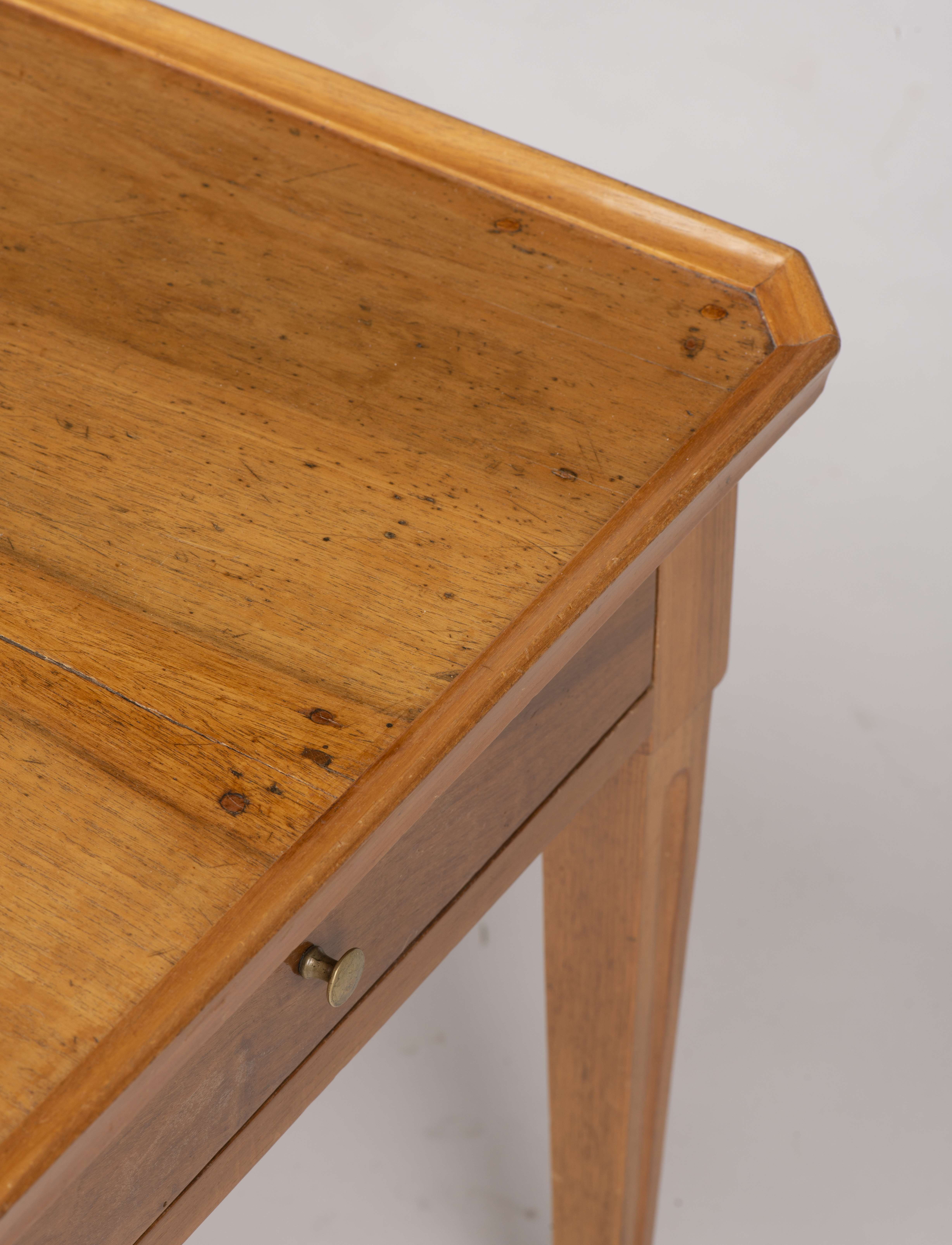 Table basse de style Directoire à 4 pieds fuseaux et 2 tiroirs sur les côtés, plateau à cuvette rapportée.
