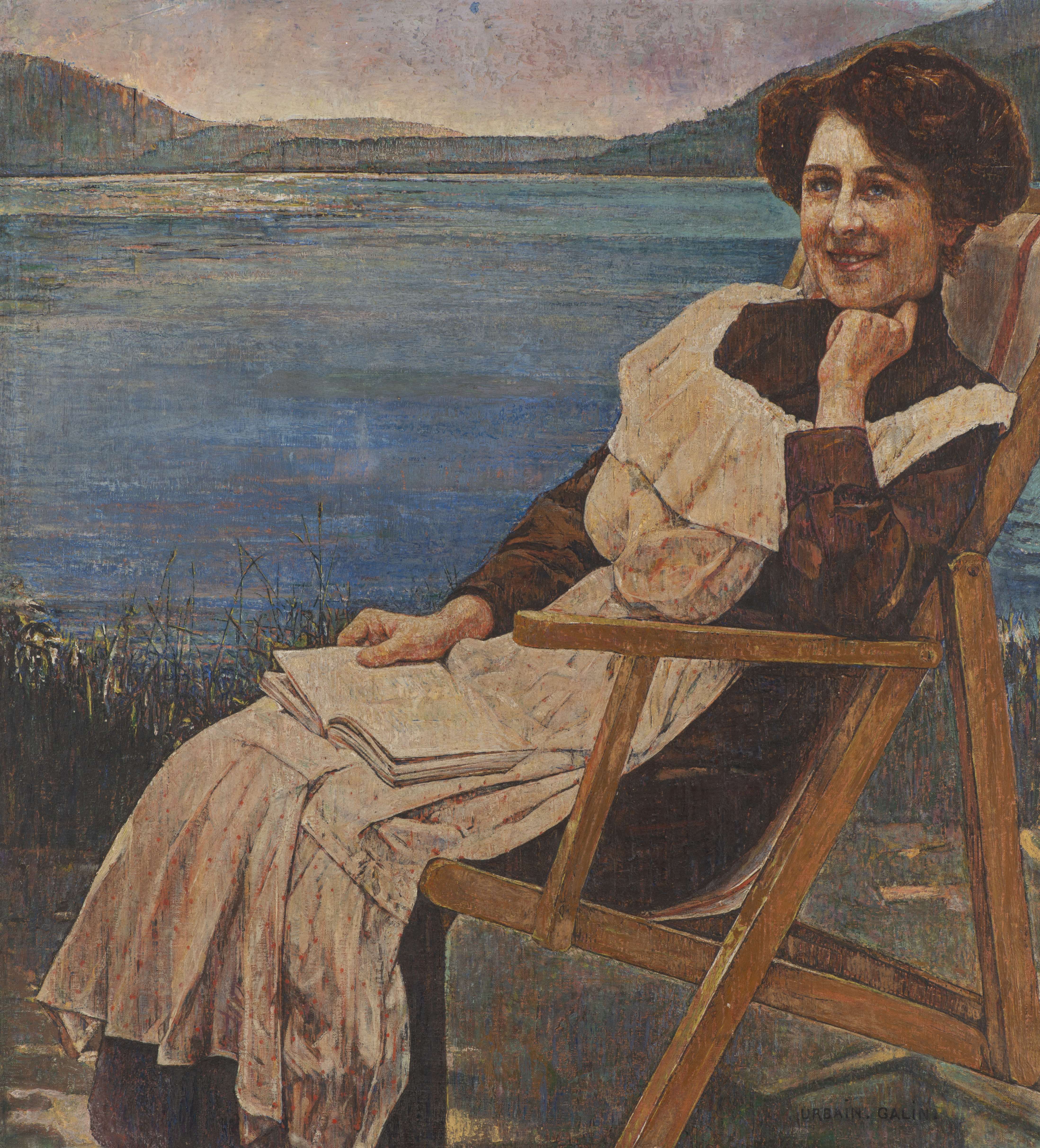 Urbain GALIN (XXe) "La lecture au bord d'un lac"