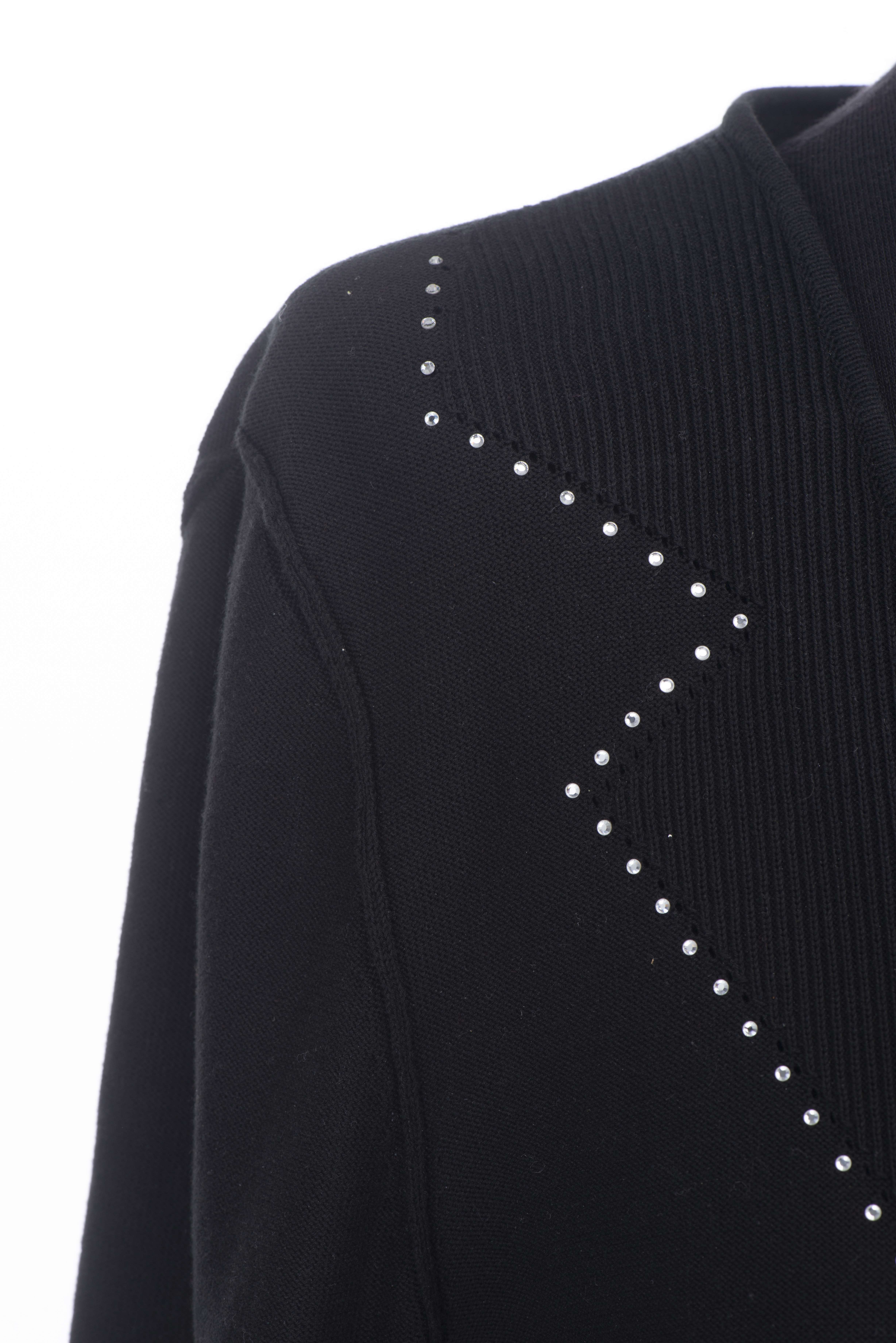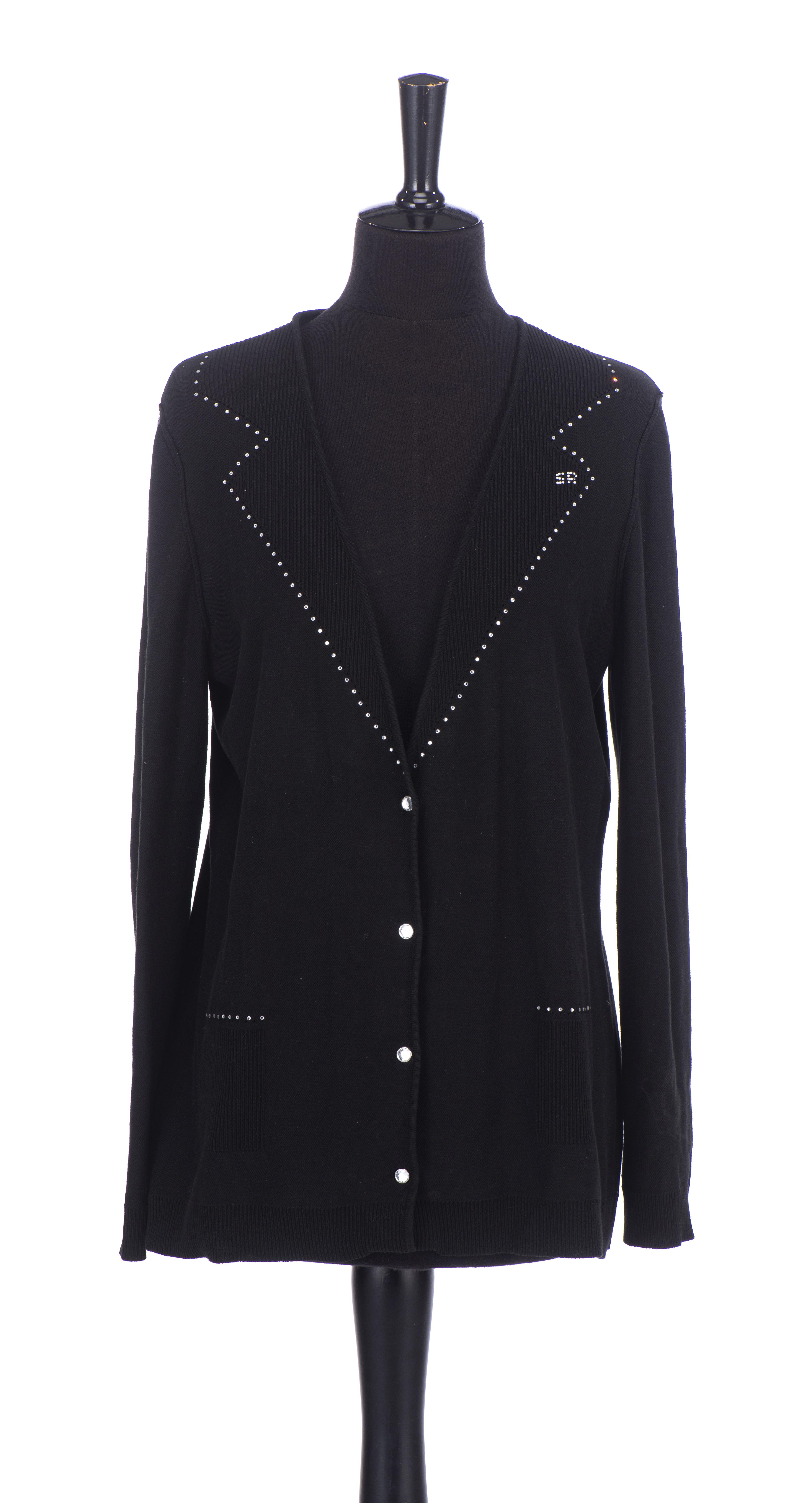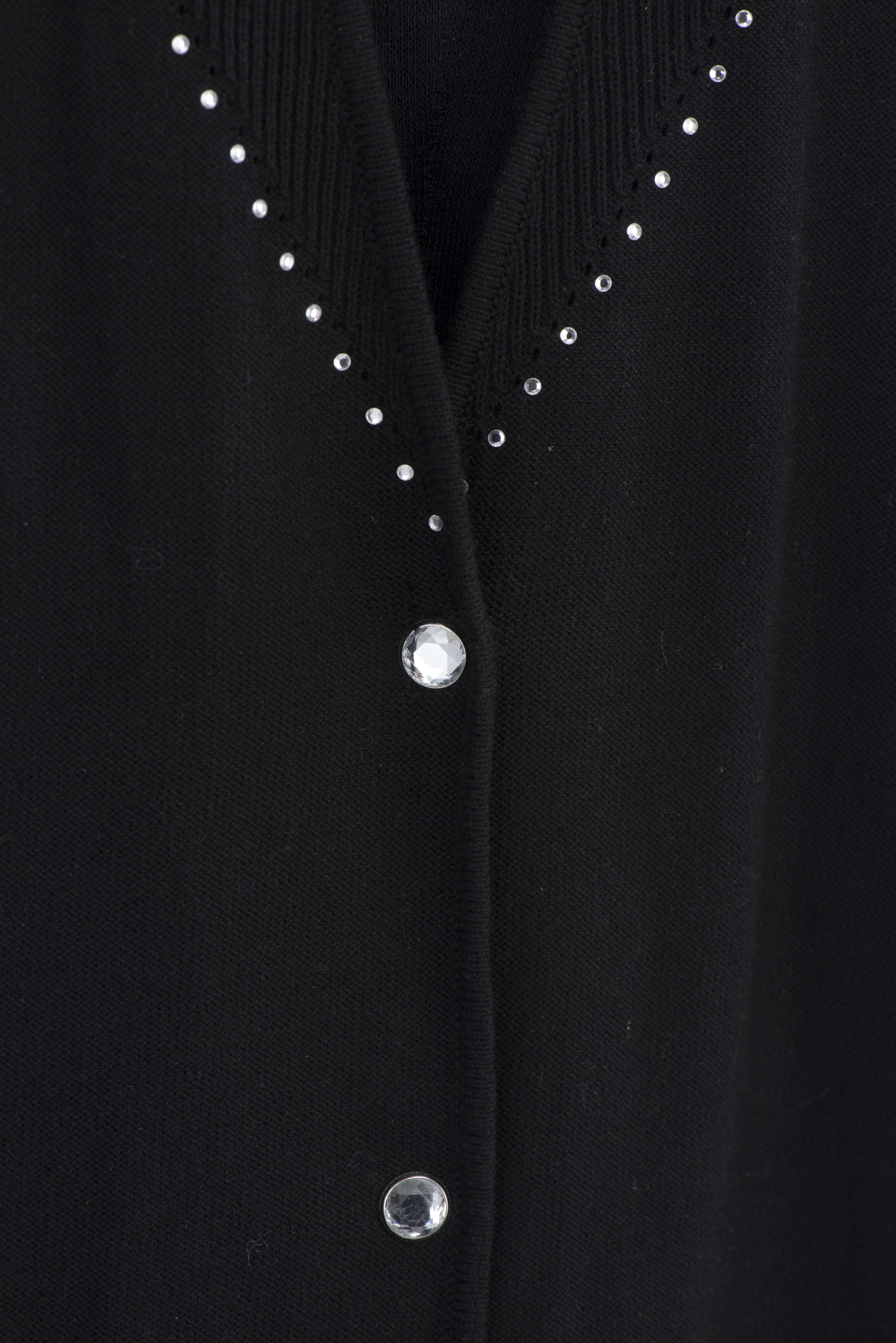 - veste courte maille noire à décor de strass et boutons