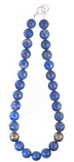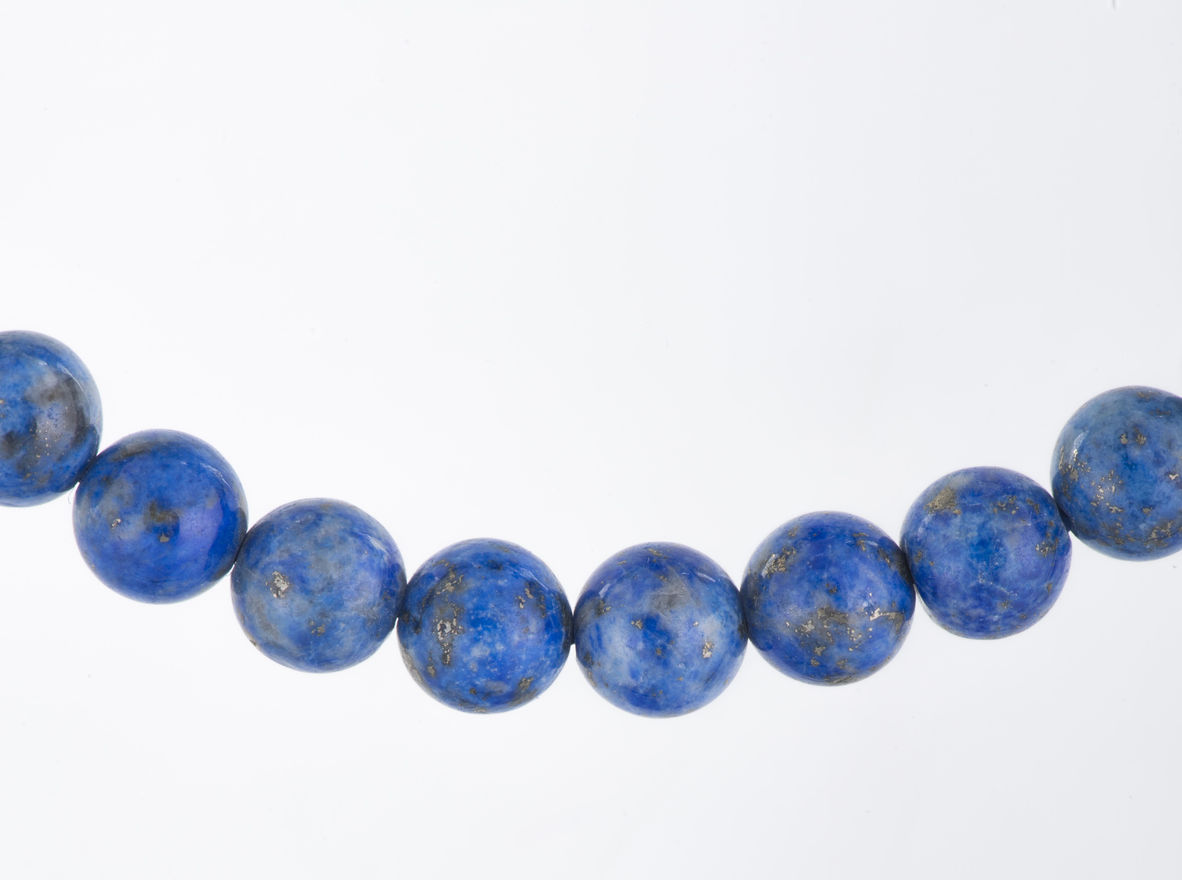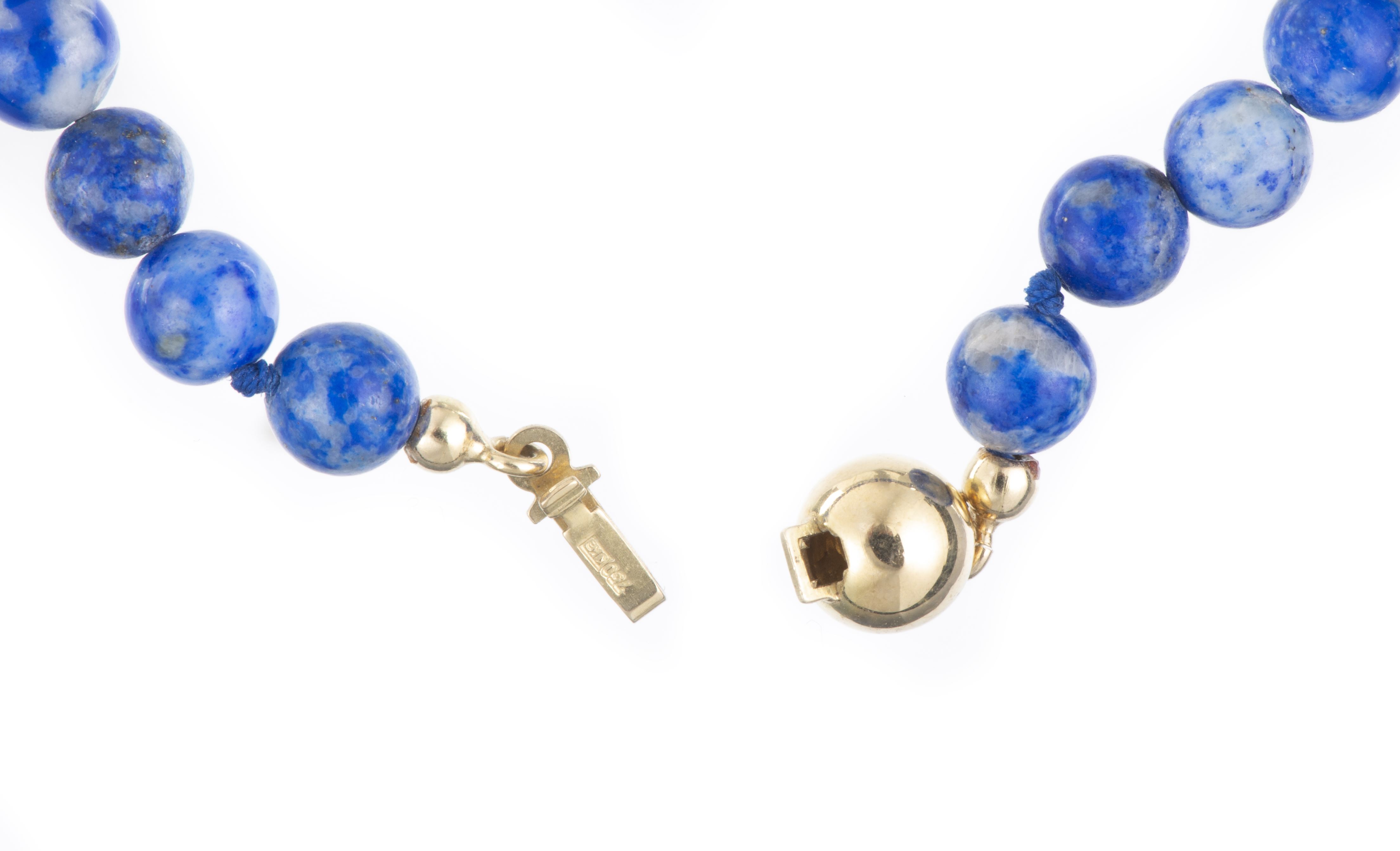 Deux colliers et un bracelet à boules de lapis-lazuli.