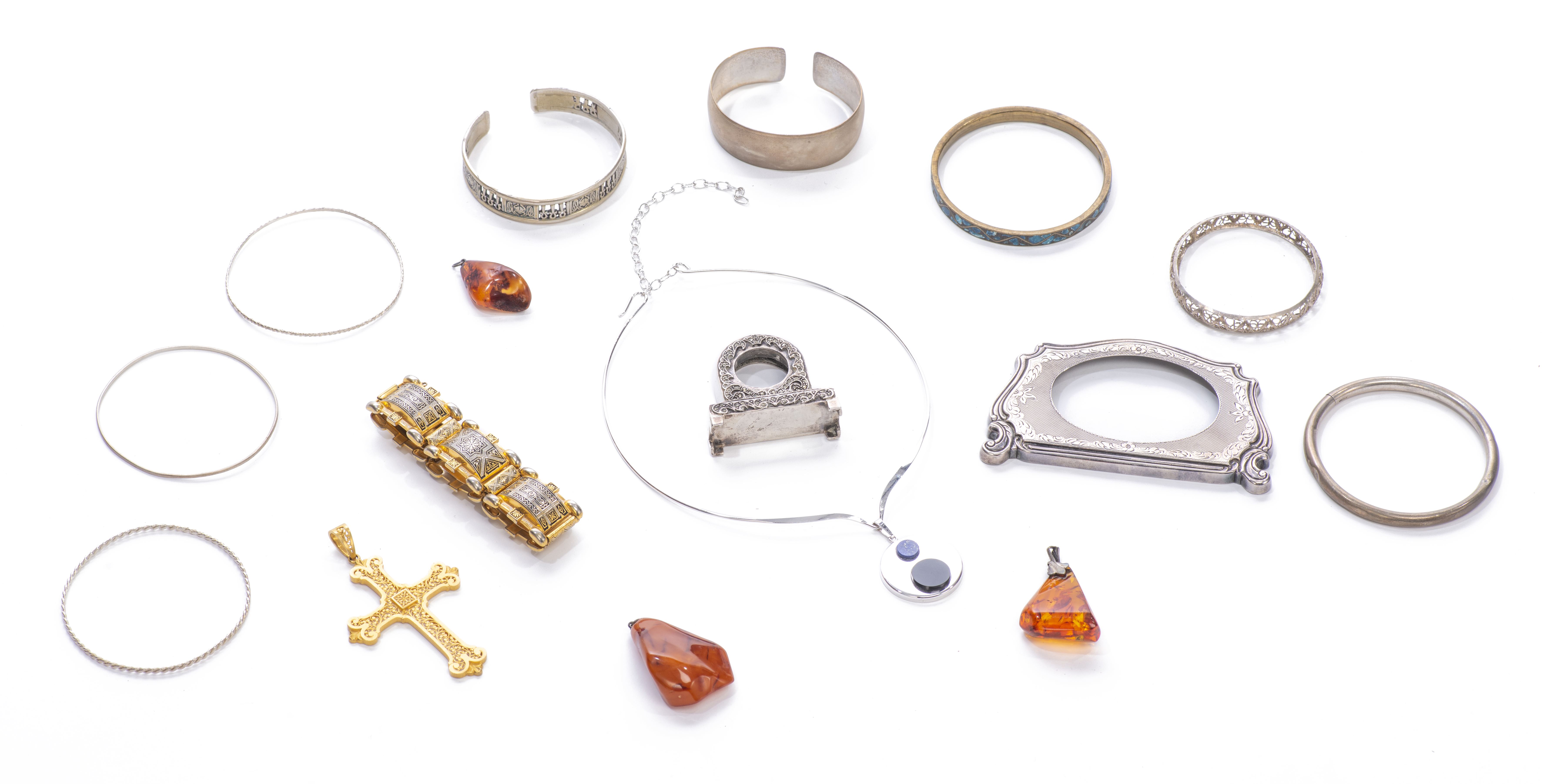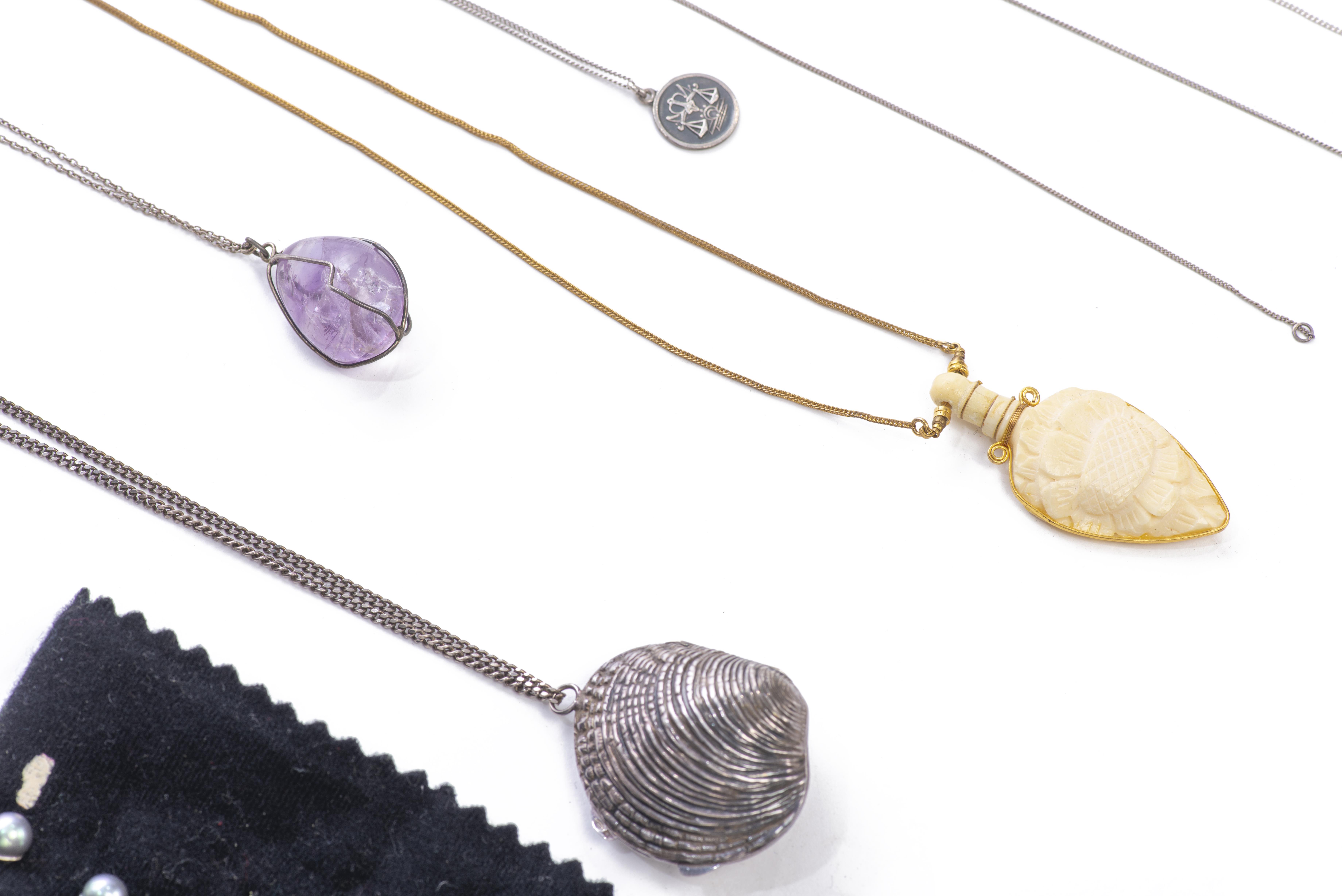 - une broche en forme de fer à cheval et un pendentif en argent et opales ou imitations d'opales serties clos