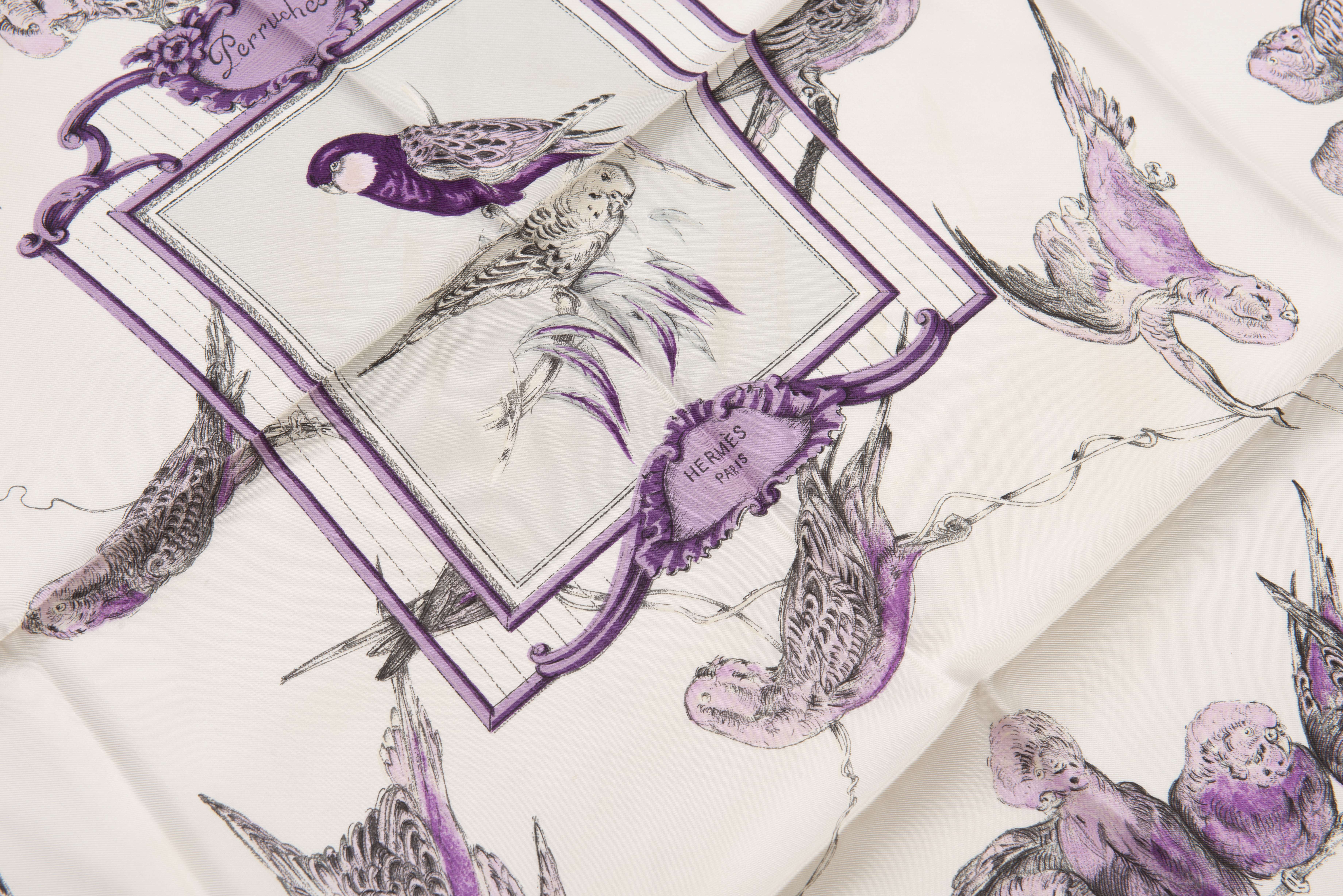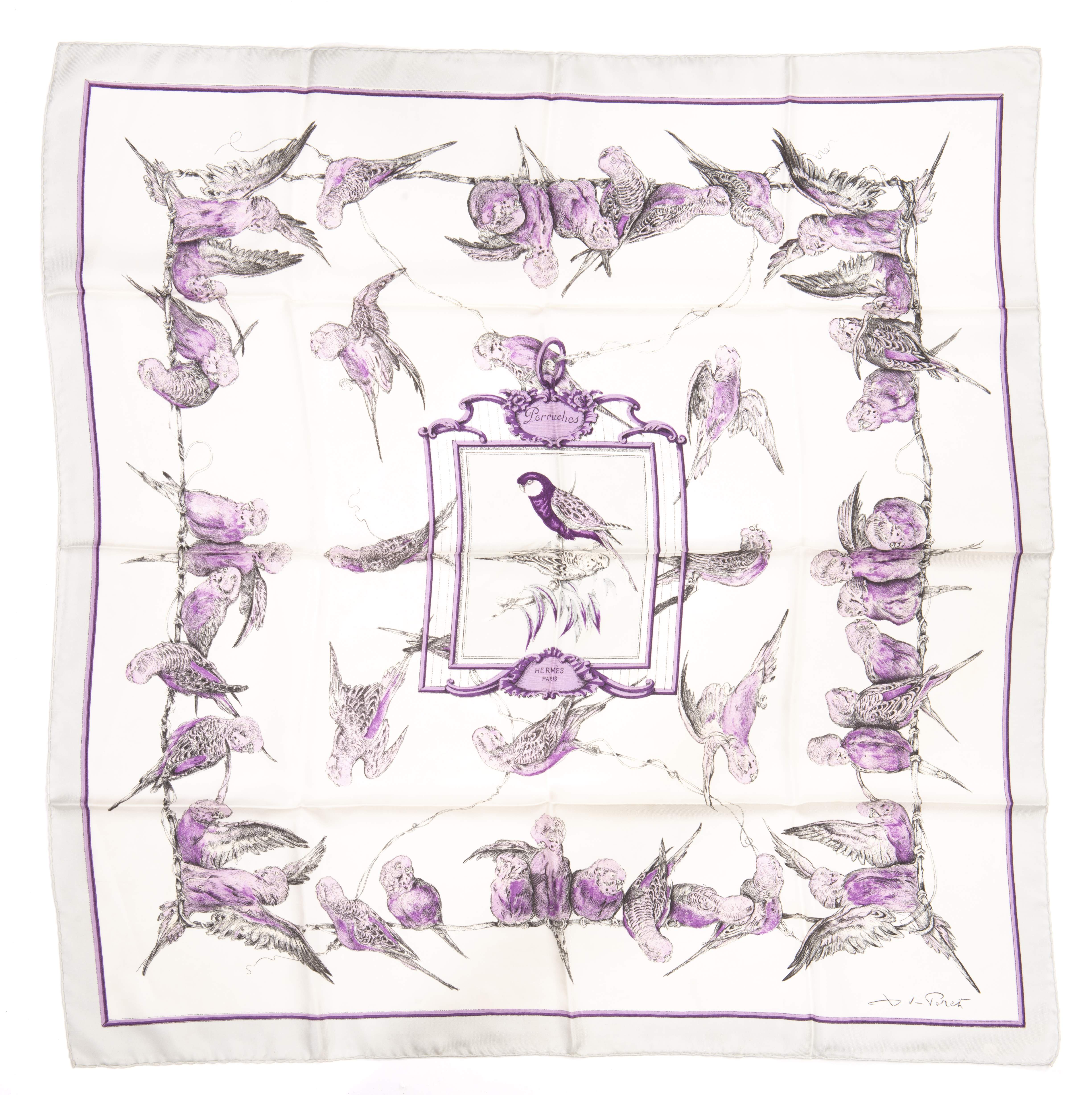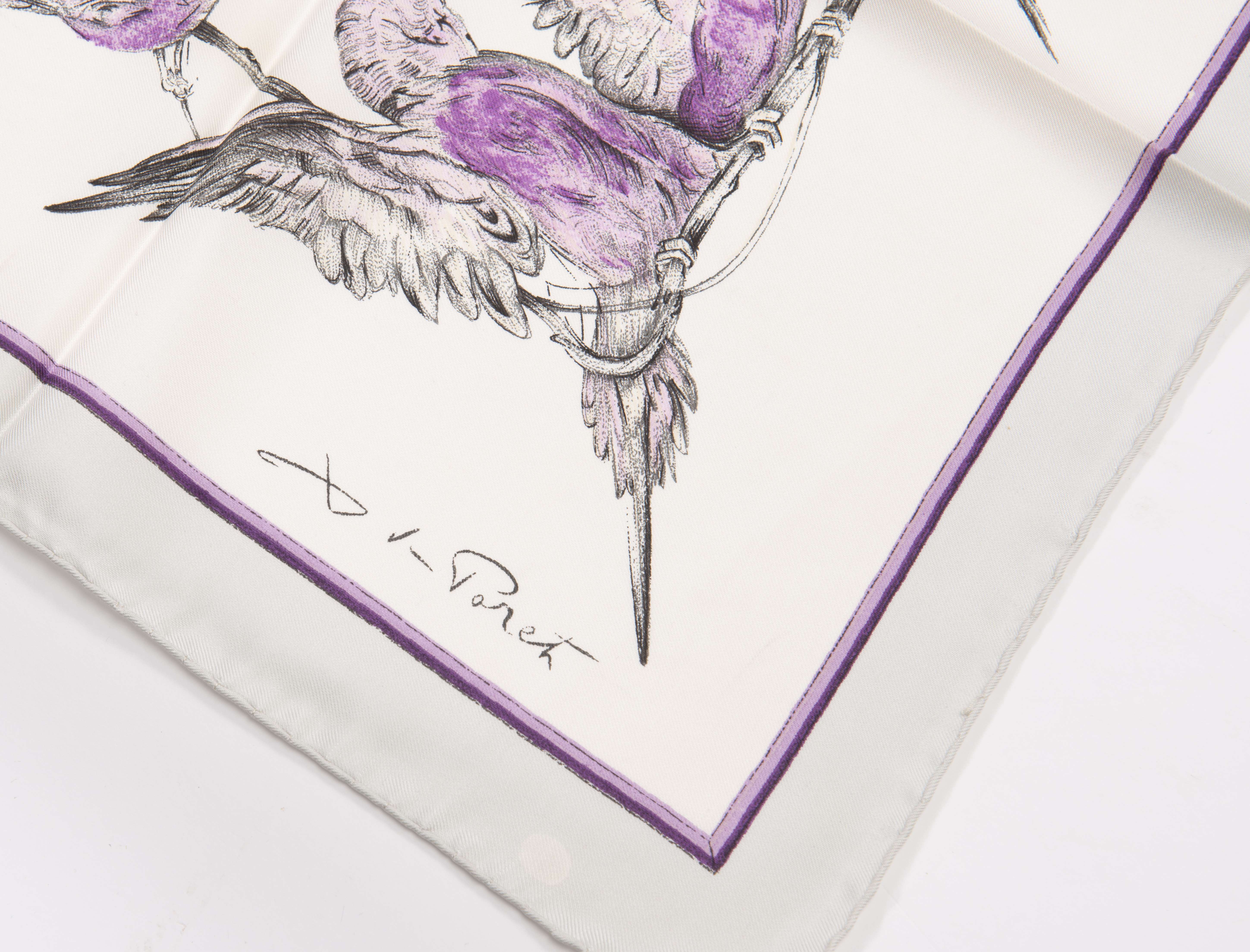 Hermès Paris, carré en soie "Les Perruches" par Xavier de Poret, première édition datant de 1956.