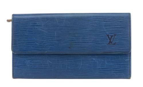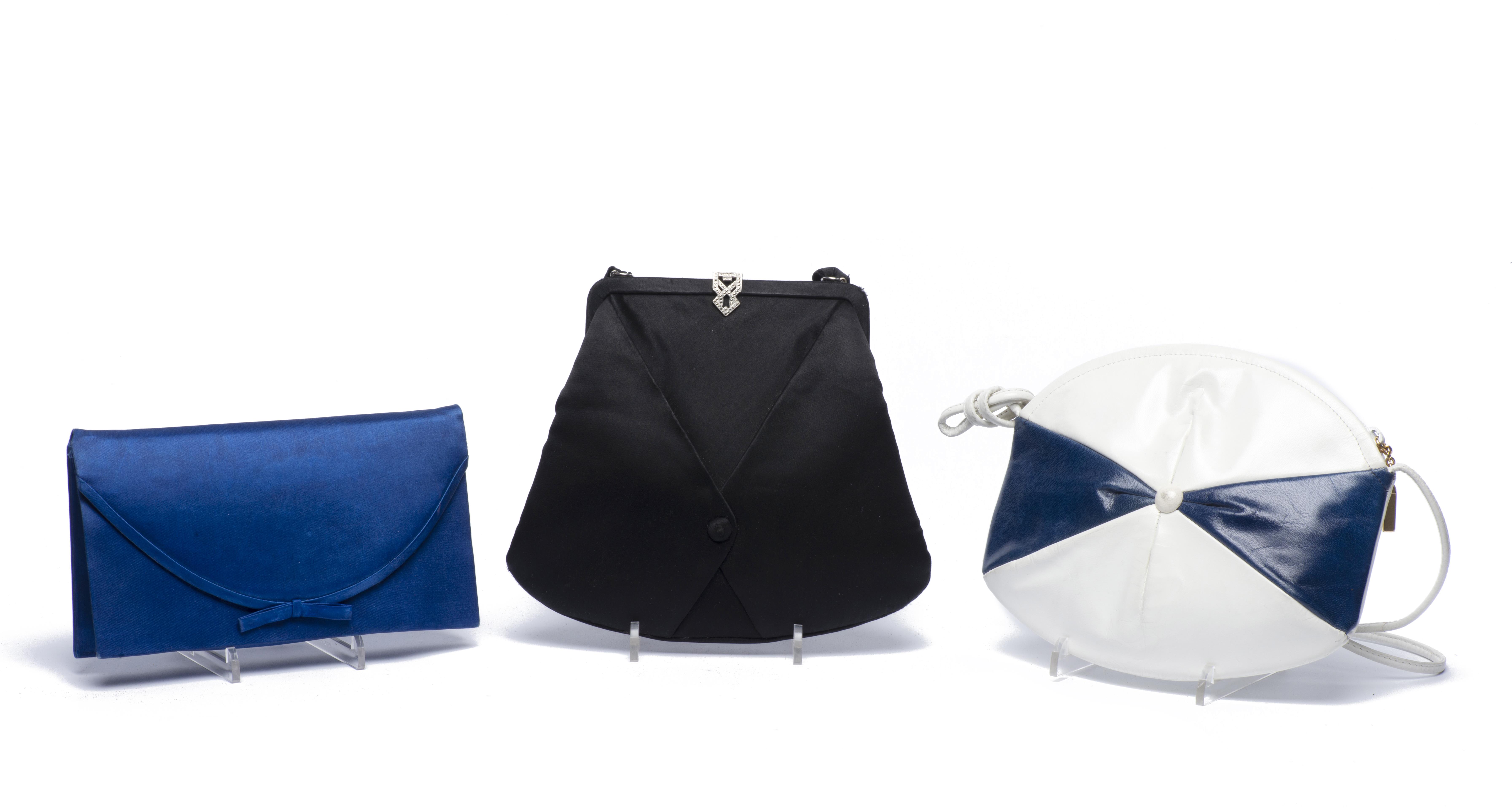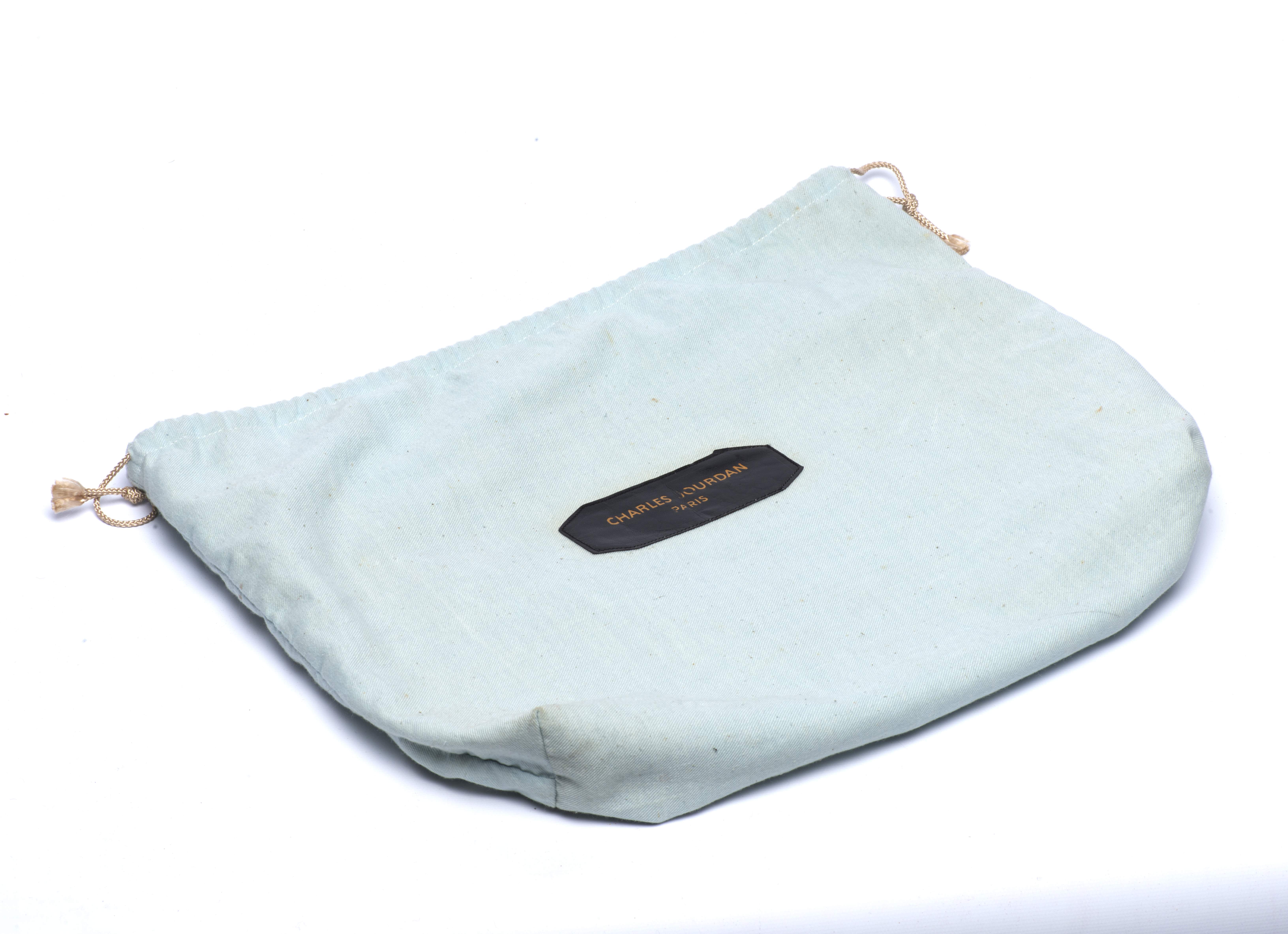 - pochette en satin bleu sans marque, H. 12.5x23x4.5 cm