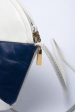 - Rodo Italy, sac à bandoulière en cuir blanc et bleu marine, H. 19x22.5x5 cm
