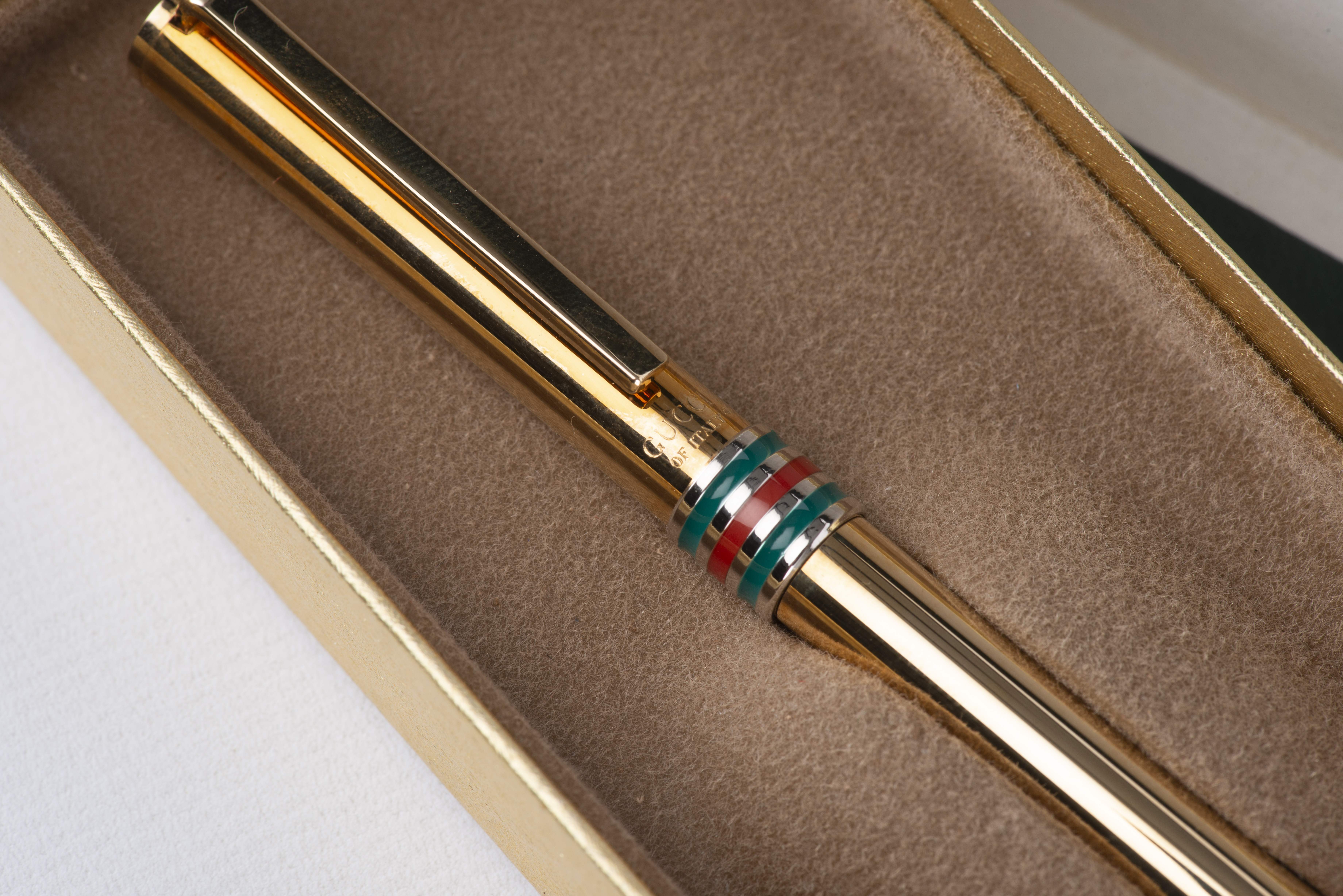 Gucci stylo-bille en métal doré, dans son écrin d'origine.