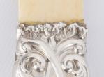 Ouvre-lettre en ivoire et manche en argent sterling .925 fourré de Londres de 1822 par AB, décor en repoussé de feuillage en arabesques de style baroque.