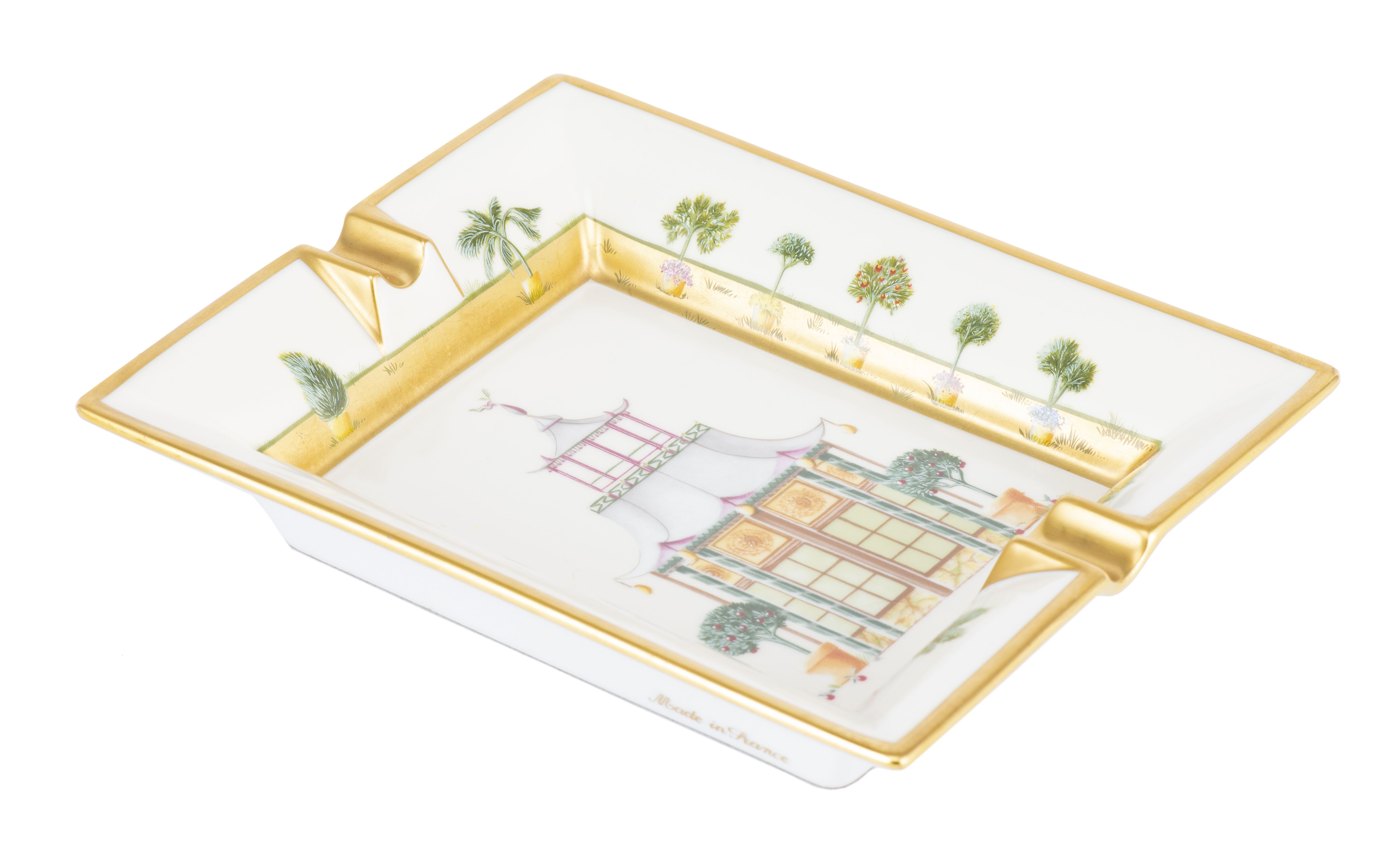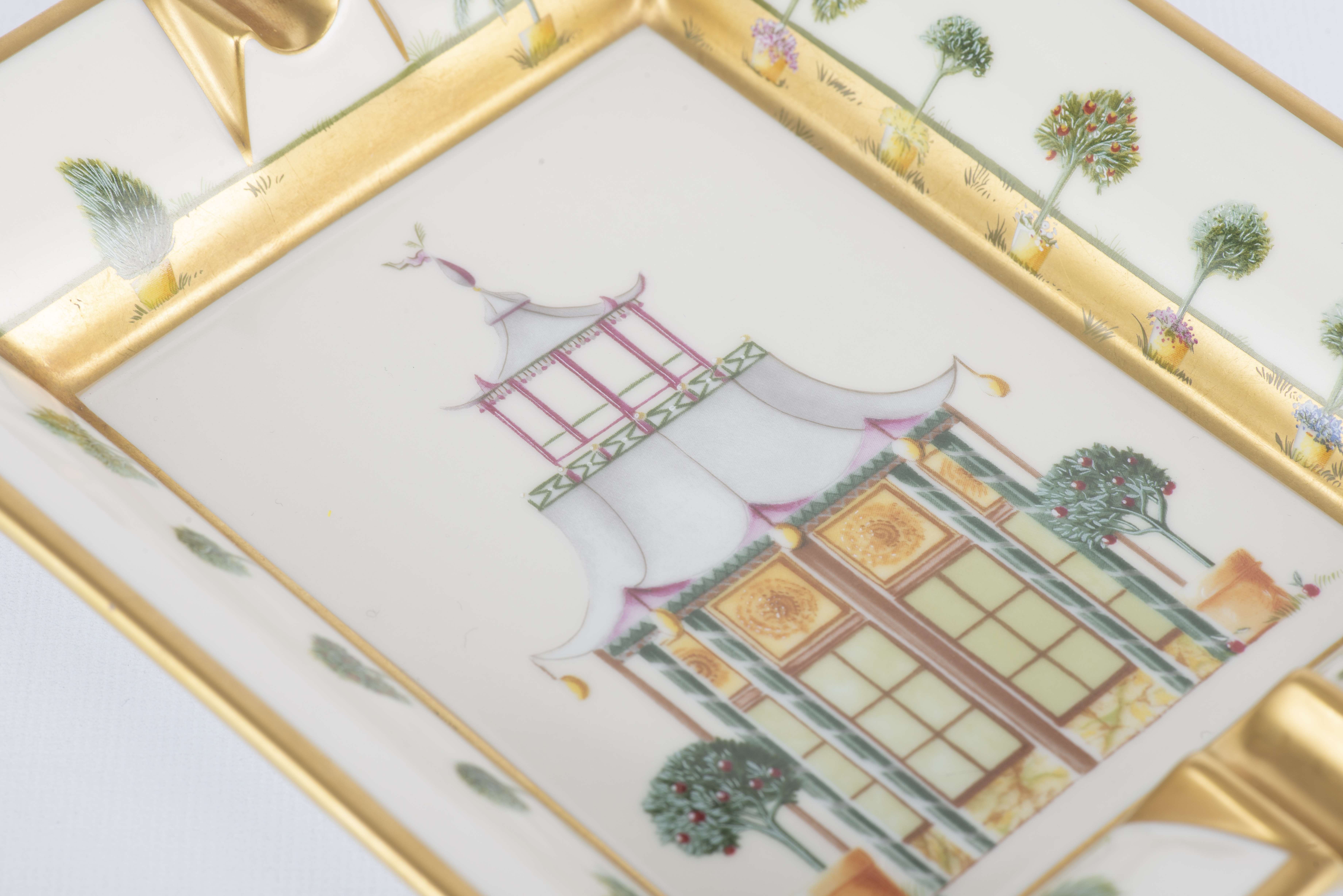 Hermès, cendrier rectangulaire à décor d'un pavillon.