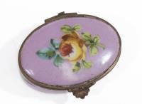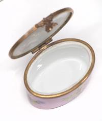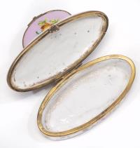On y joint une petite boîte à pilules en porcelaine de Sèvres à décor floral sur champ rose.