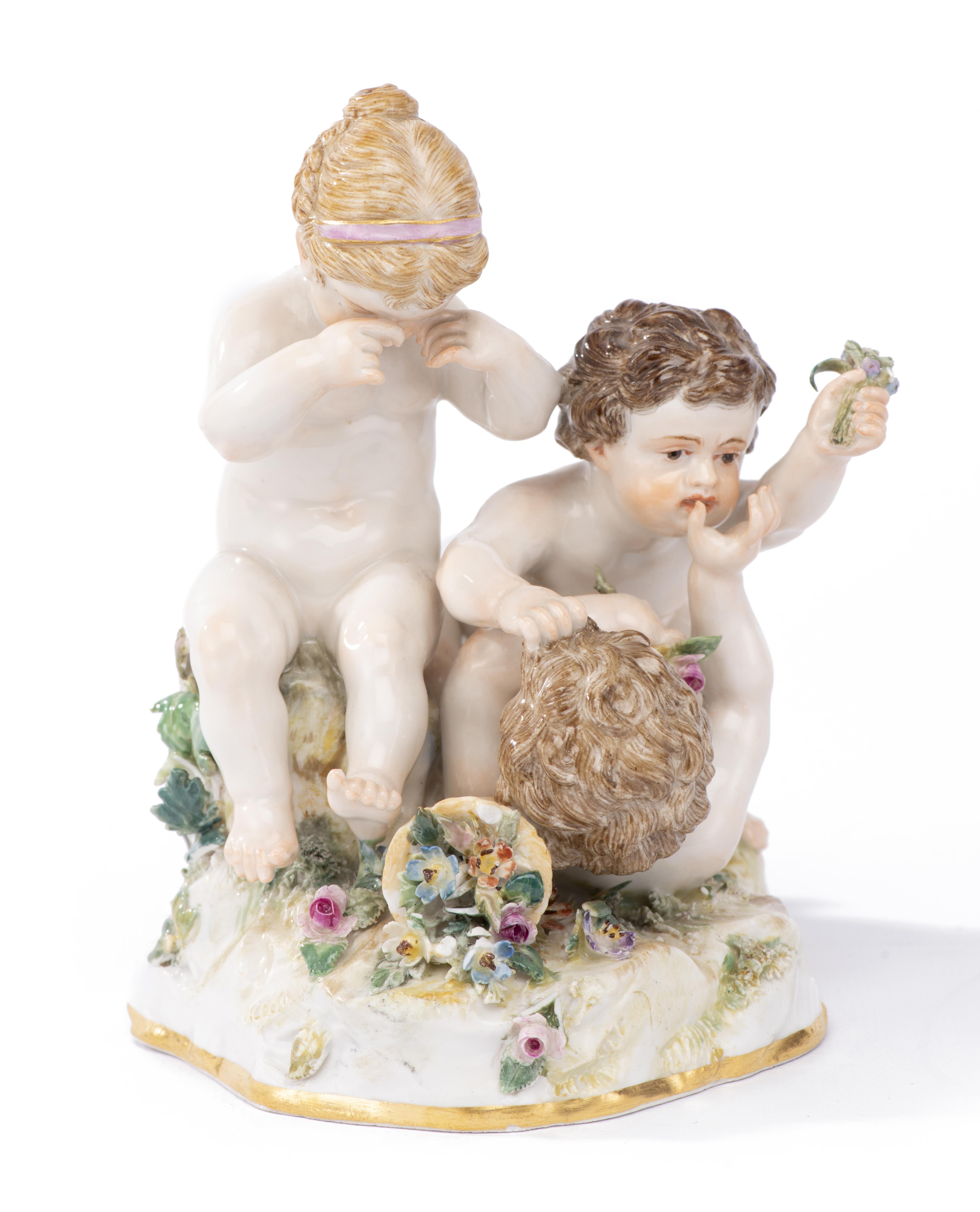Meissen, sujet de deux bambins se disputant une beauté