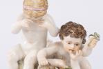 2 bambins en porcelaine de Meissen se disputant une beauté.