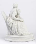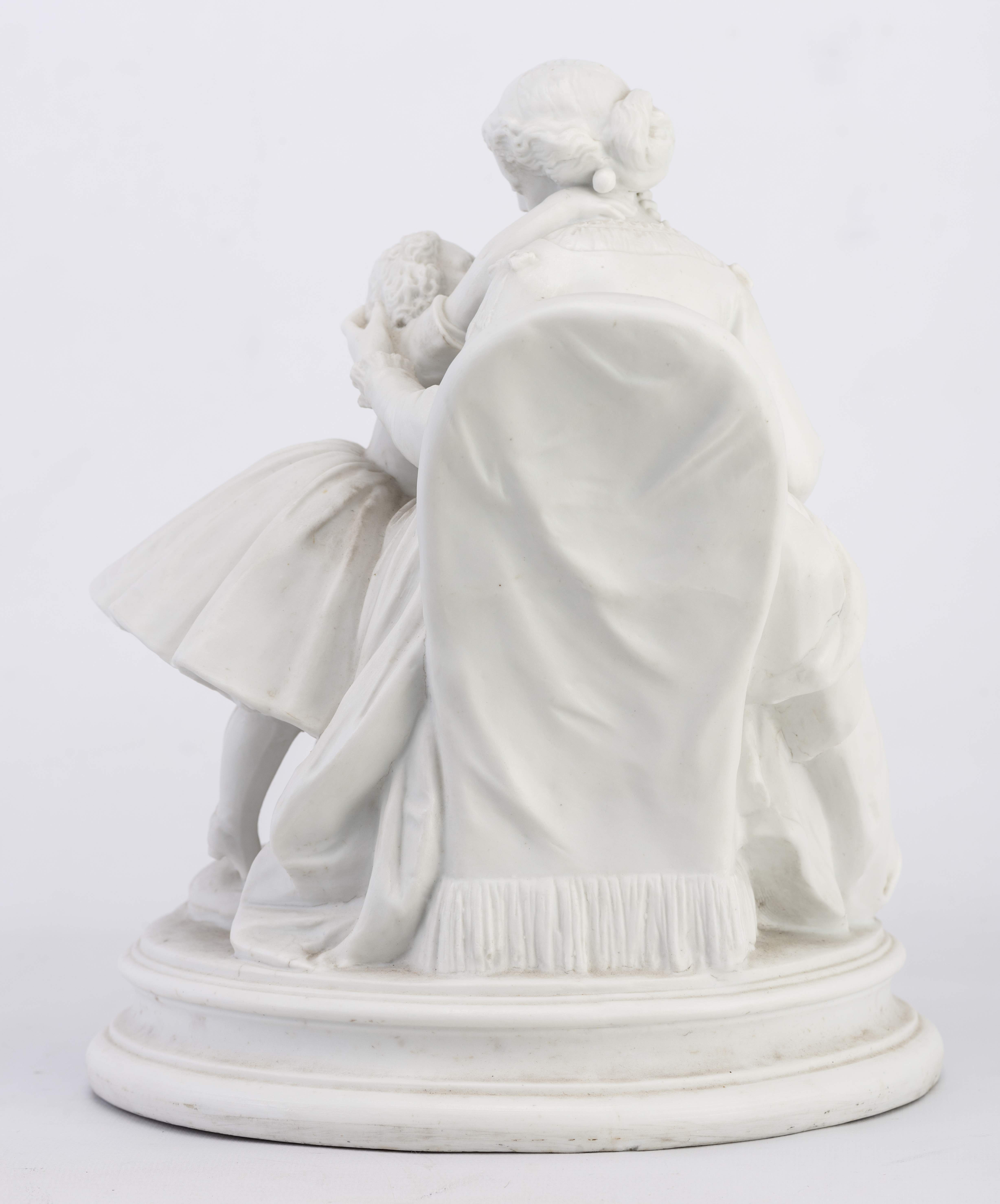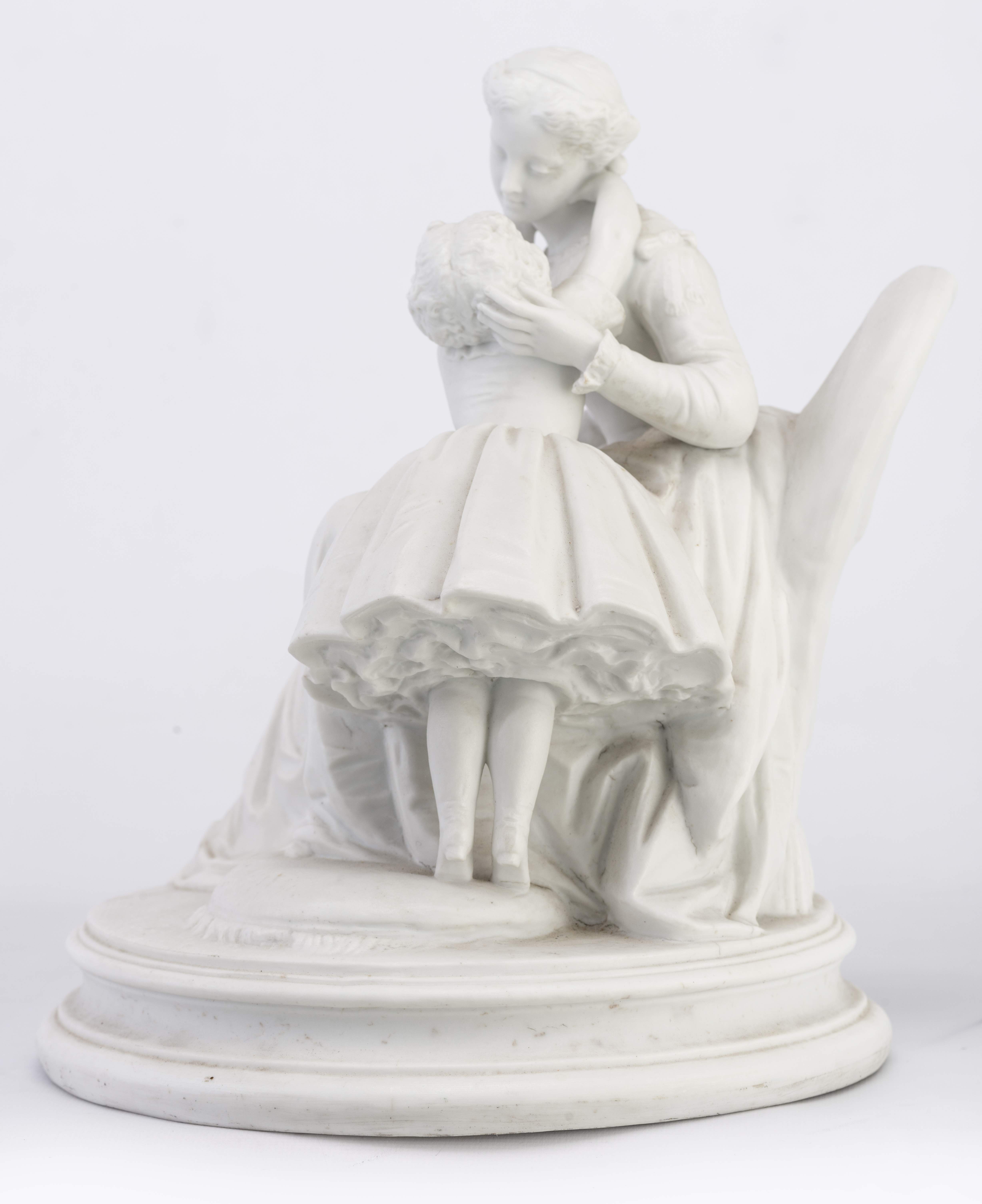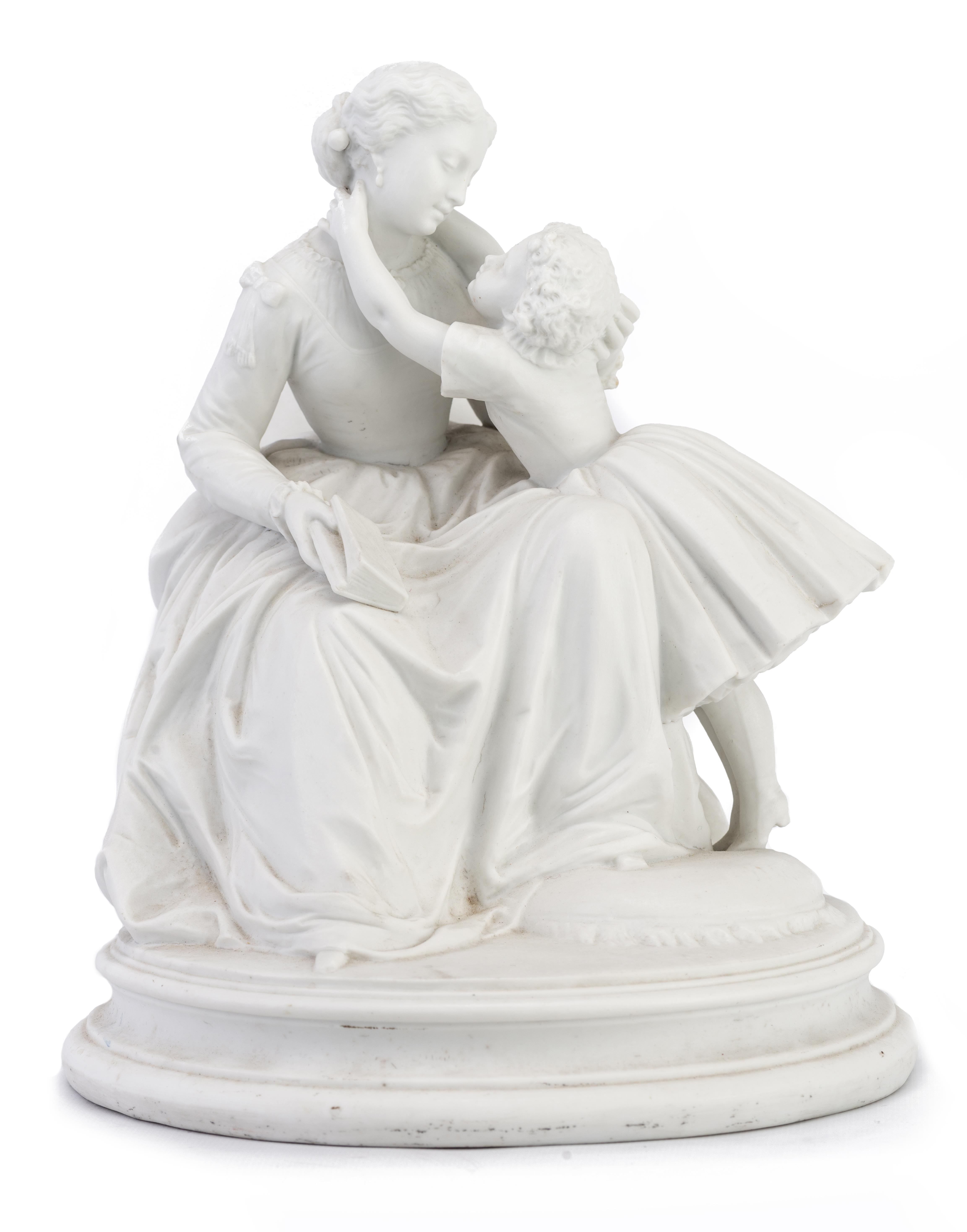 JG biscuit représentant une mère et son enfant lui faisant la lecture vers 1900.