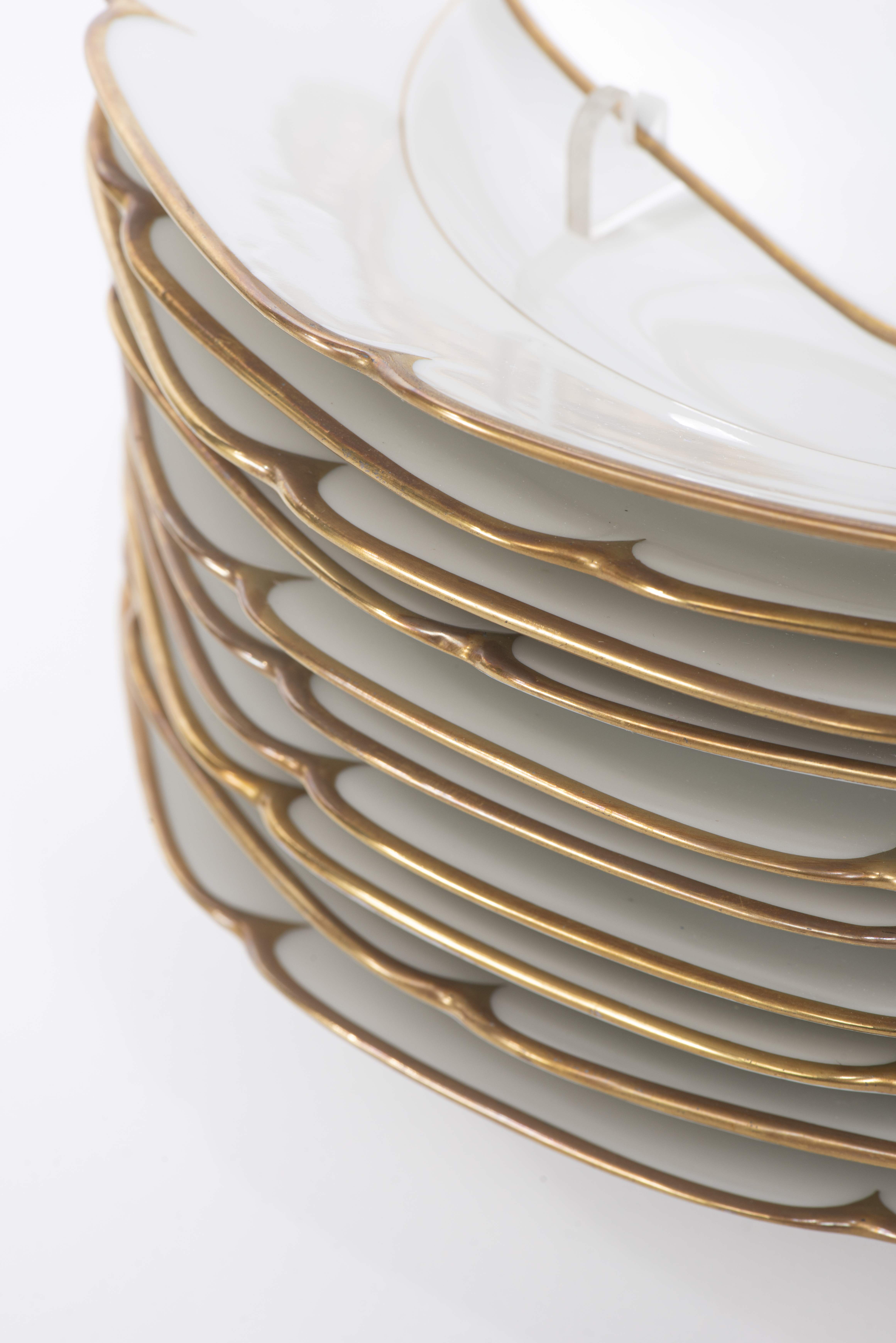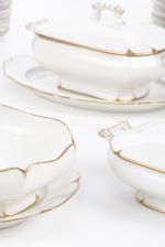 Beau service en porcelaine de Limoges Comte D'Artois de forme florale à bordure or comprenant :