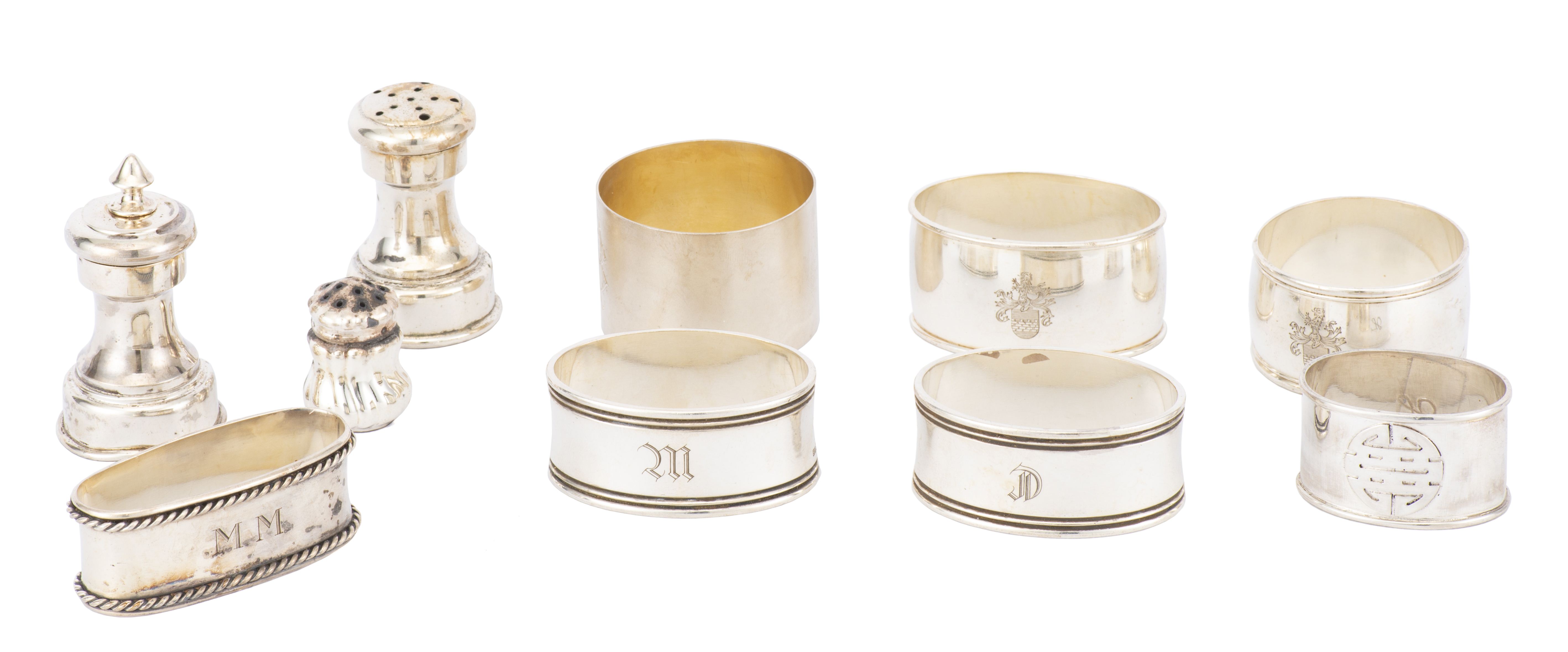 - sept liens de serviette en argent .800, argent .800 Jezler et argent .900 chinois