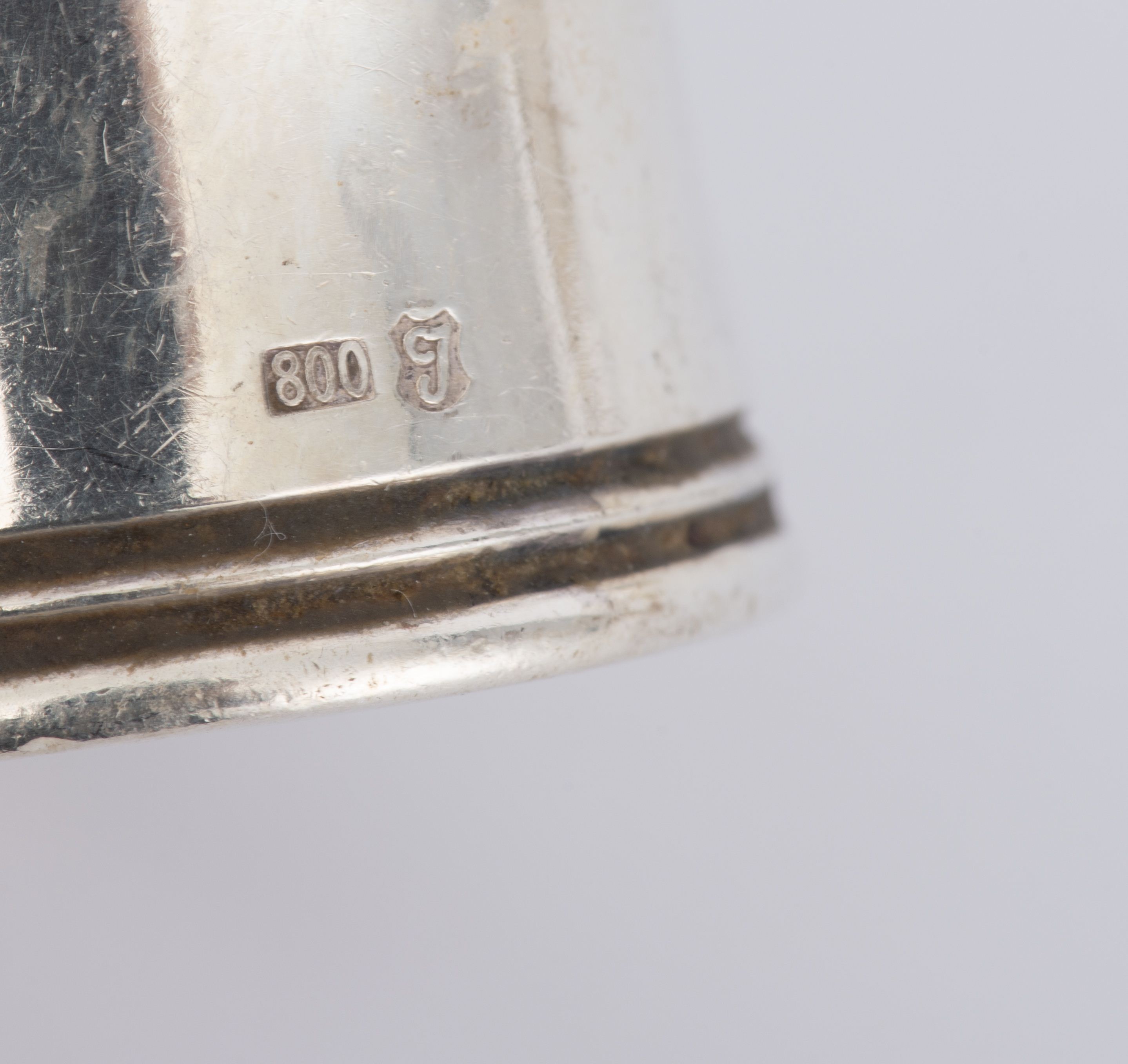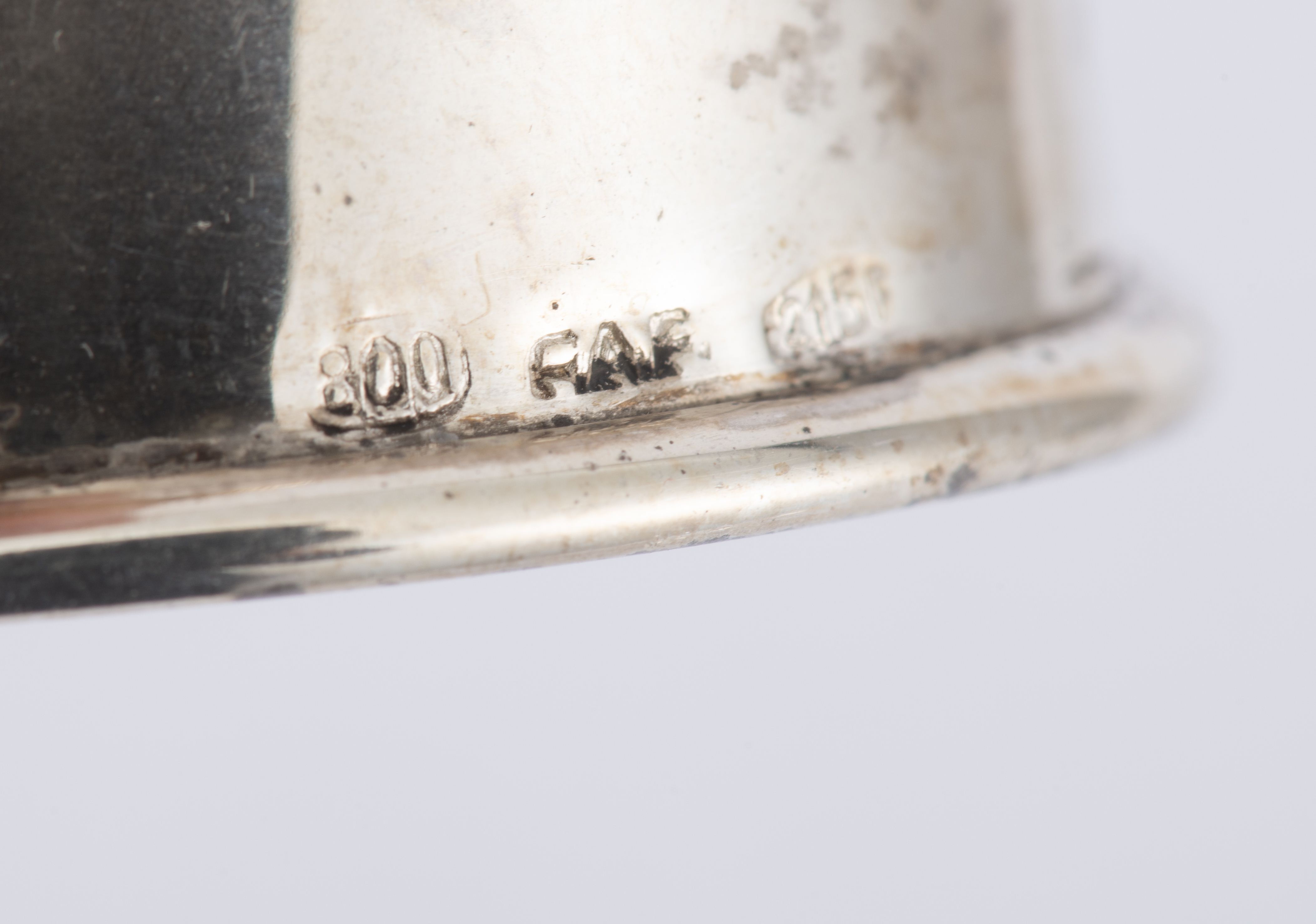 On y joint un moulin à café et une salière en argent .800 ainsi qu'une seconde salière en argent .925.