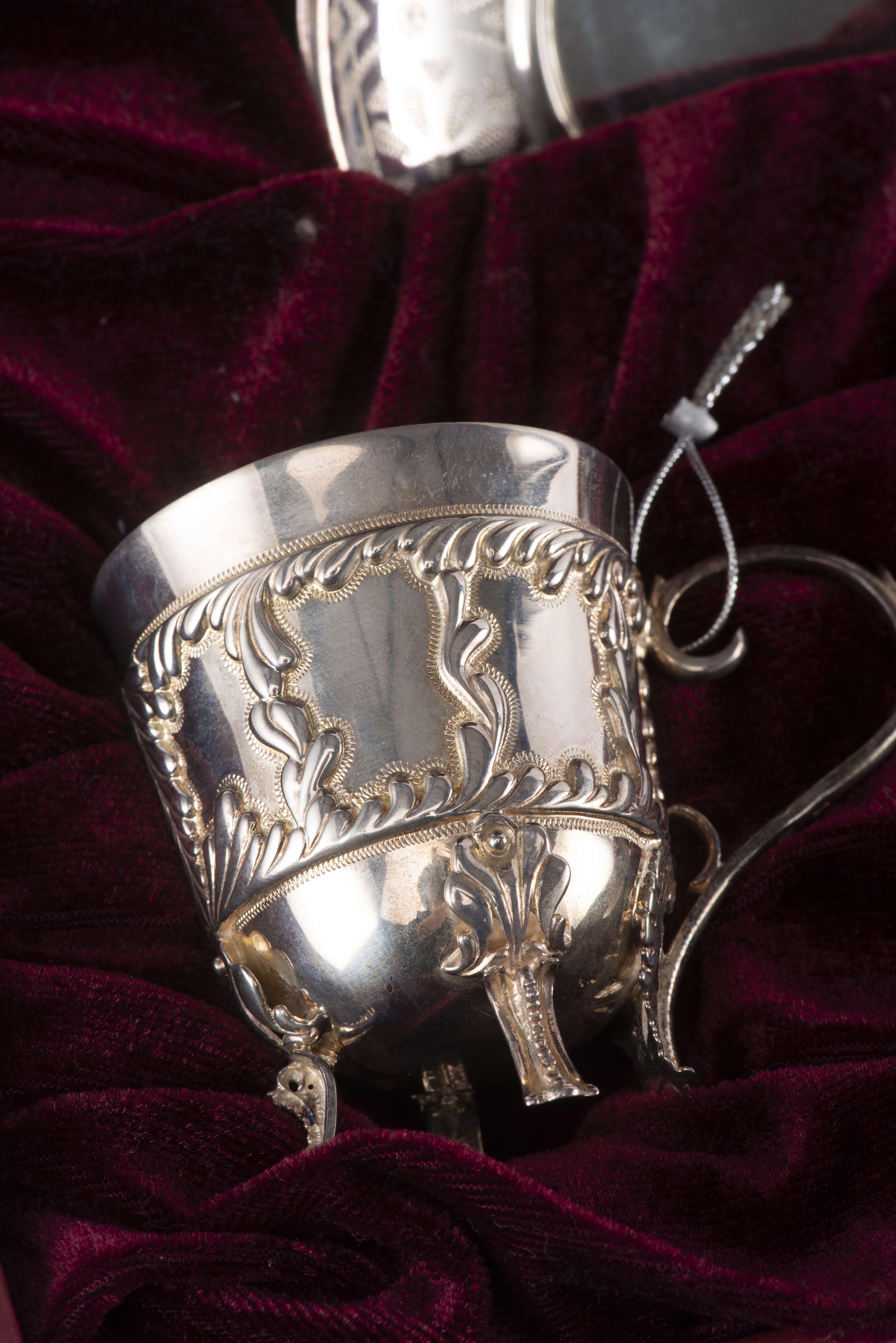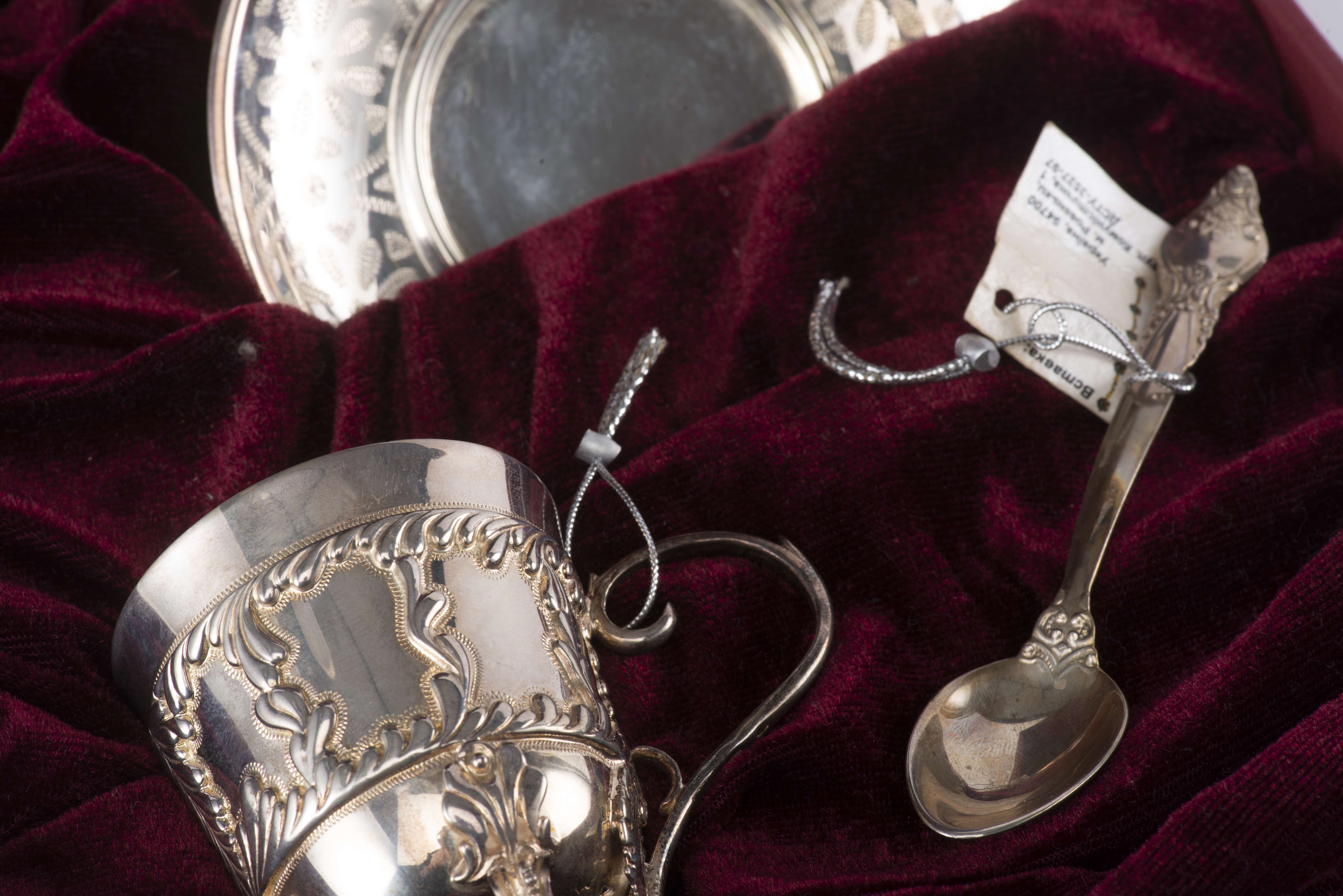 Tasse et sous-tasse avec sa cuillère en argent .925 d'Ukraine par AGAT.